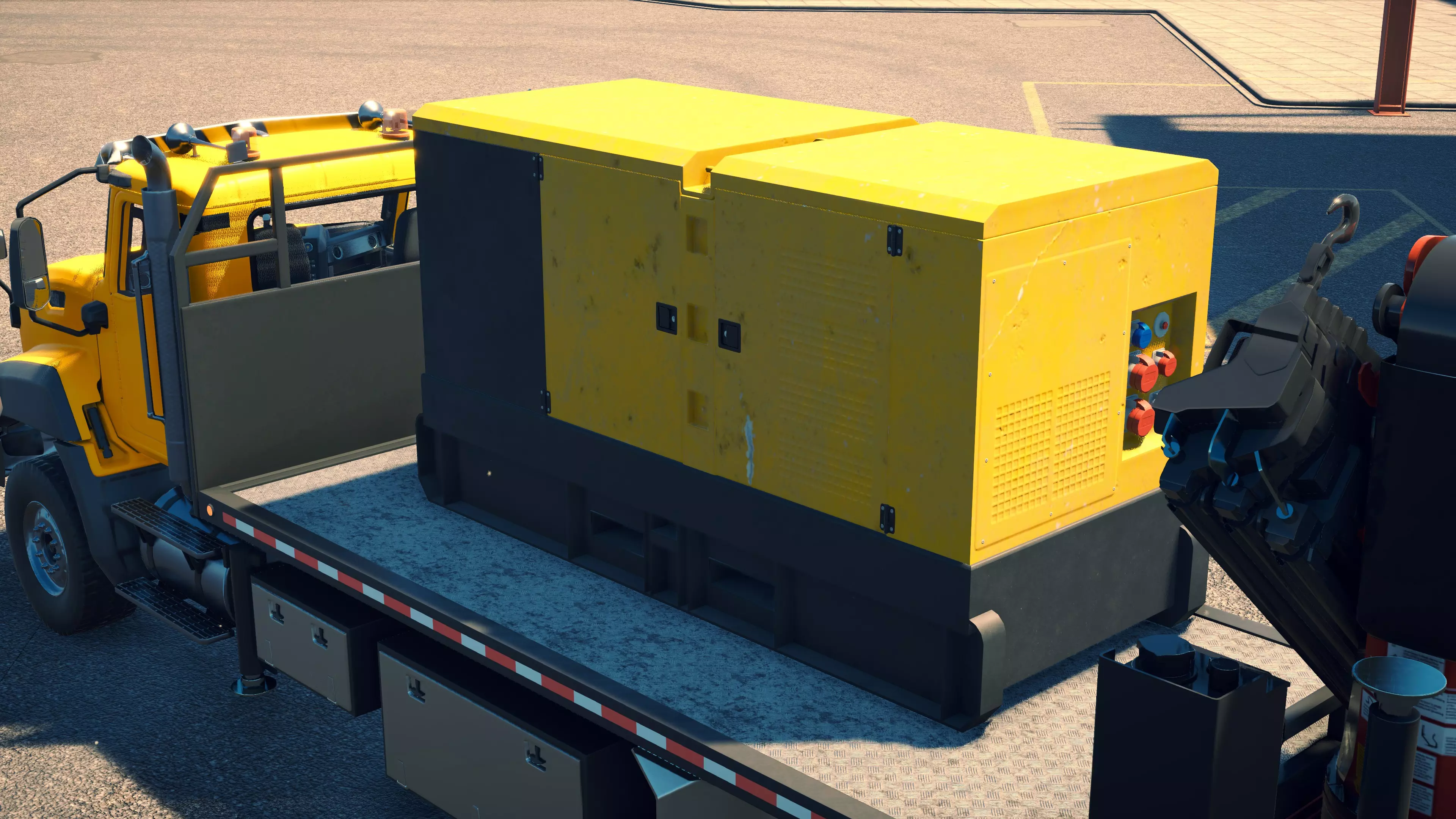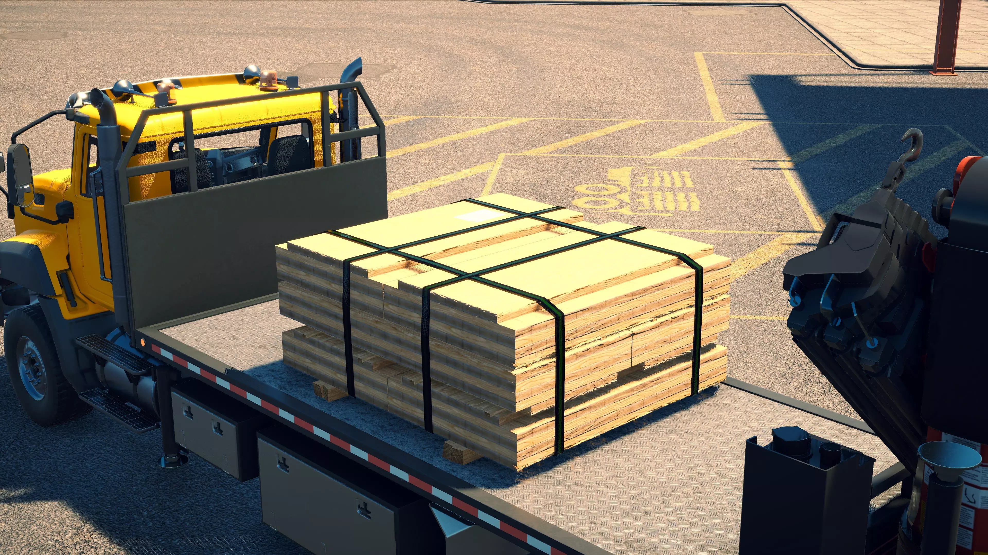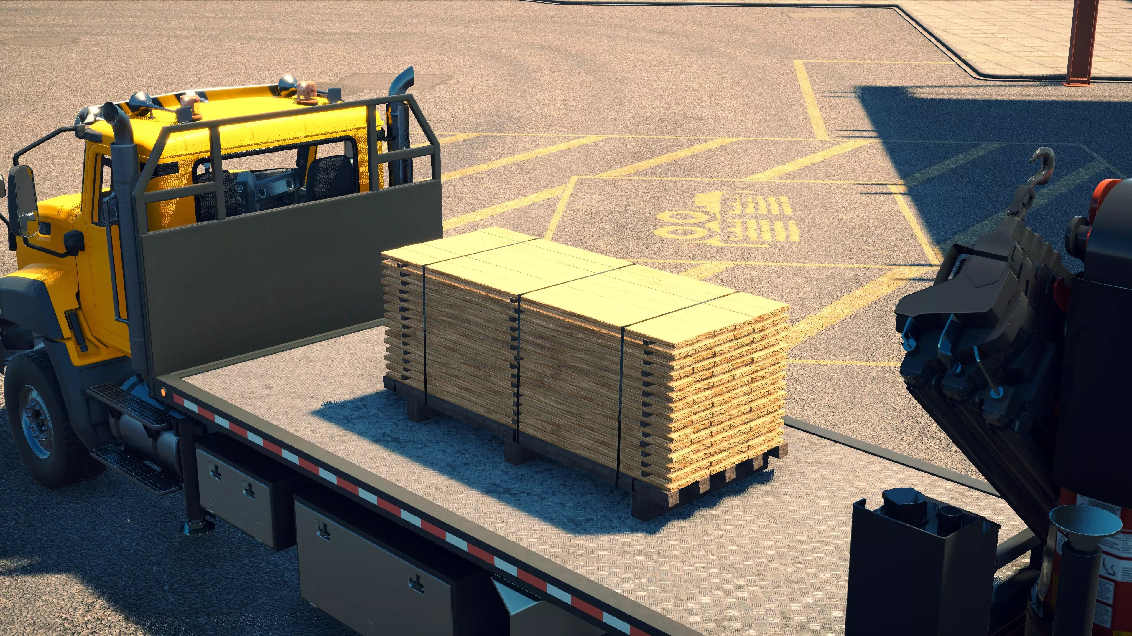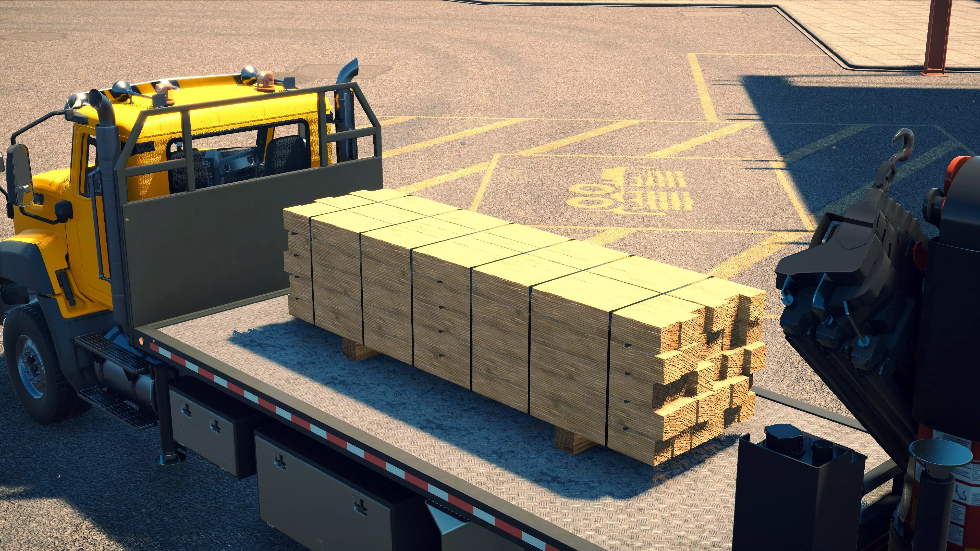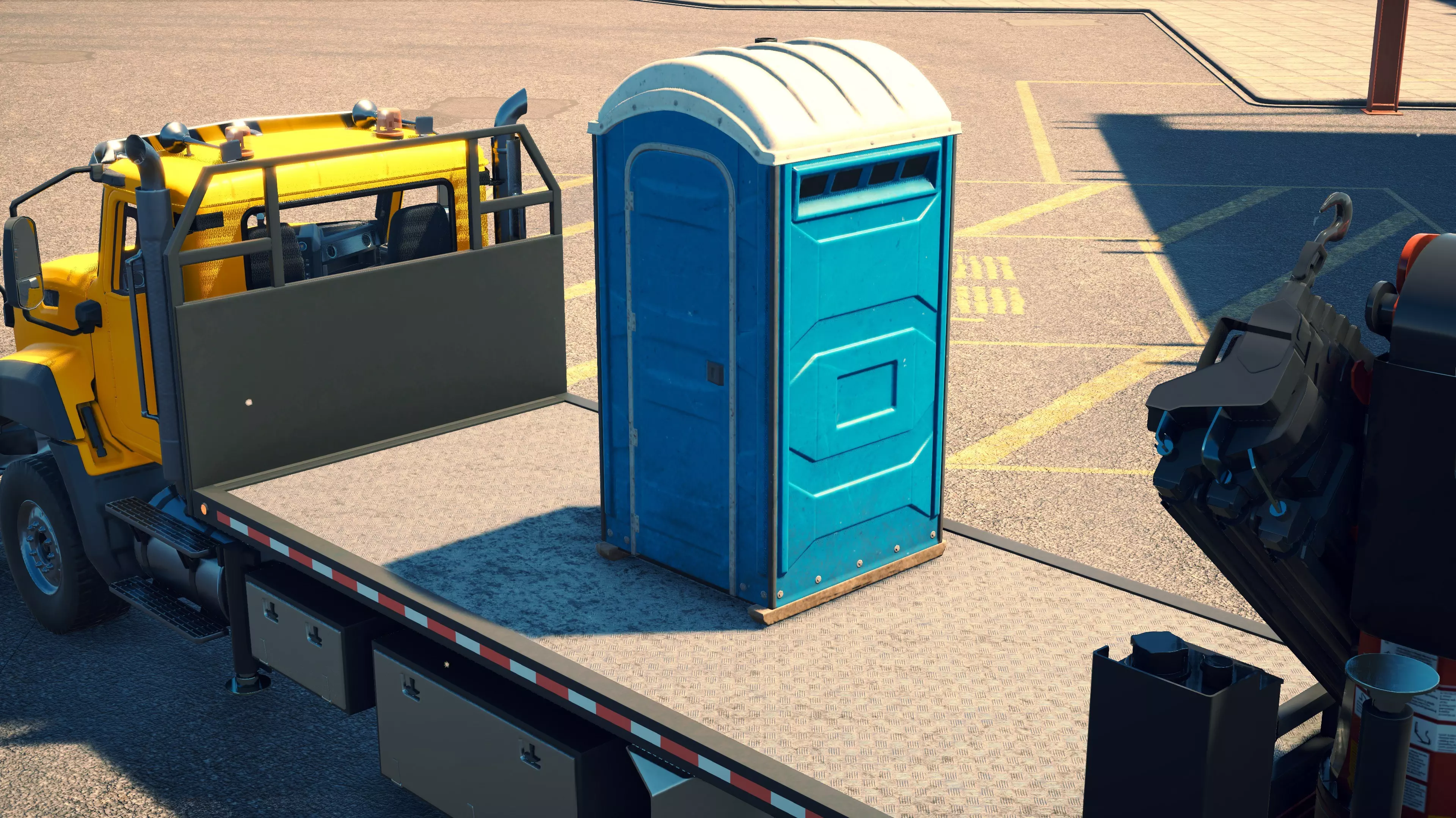 MAN TGS/帕尔芬格 PK 27002/迈勒 D316 购买/租赁 - 100,000美元/2000美元 长度 - 8.26米 宽度/带支架宽度 - 2.92米/5.36米 高度/带支架高度 - 3.66米/3.7米 转弯直径 - 17米 最高速度 - 93公里/小时/14公里/小时 加速度 - 10秒内达到60公里/小时 货舱(单位) - 21长/10宽/10高(4.2米/2米/2米) 散装物料容量 - 8.22立方米 压力测试 - 2分00秒 起重机最大作业半径 - 16米 最大吊钩高度 - 19.5米 360度旋转时间 - 13.5秒 起重机展开/折叠时间 - 10.5秒 起重机伸出/缩回时间 - 13秒 起重等级 - A 可以说,这是两款平板起重机中更出色的一款。其最高速度和加速度几乎相同,上坡时能更好地保持速度,不过更容易失去牵引力。正如你对平头驾驶室车型的预期,它体型更小,转弯直径也更紧凑。它也配备了相同型号的起重机,但这辆卡车真正的优势在于其运输散装物料的能力,这足以弥补货厢面积较小的不足。其装载量超过肯沃斯T880自卸卡车的40%,这一优势不容小觑。当然,一旦拥有了专用的自卸卡车,你就不会再想用它了。但在初期,当你需要充分利用现有资源时,它的多功能性非常突出。 带起重机的拖拉机