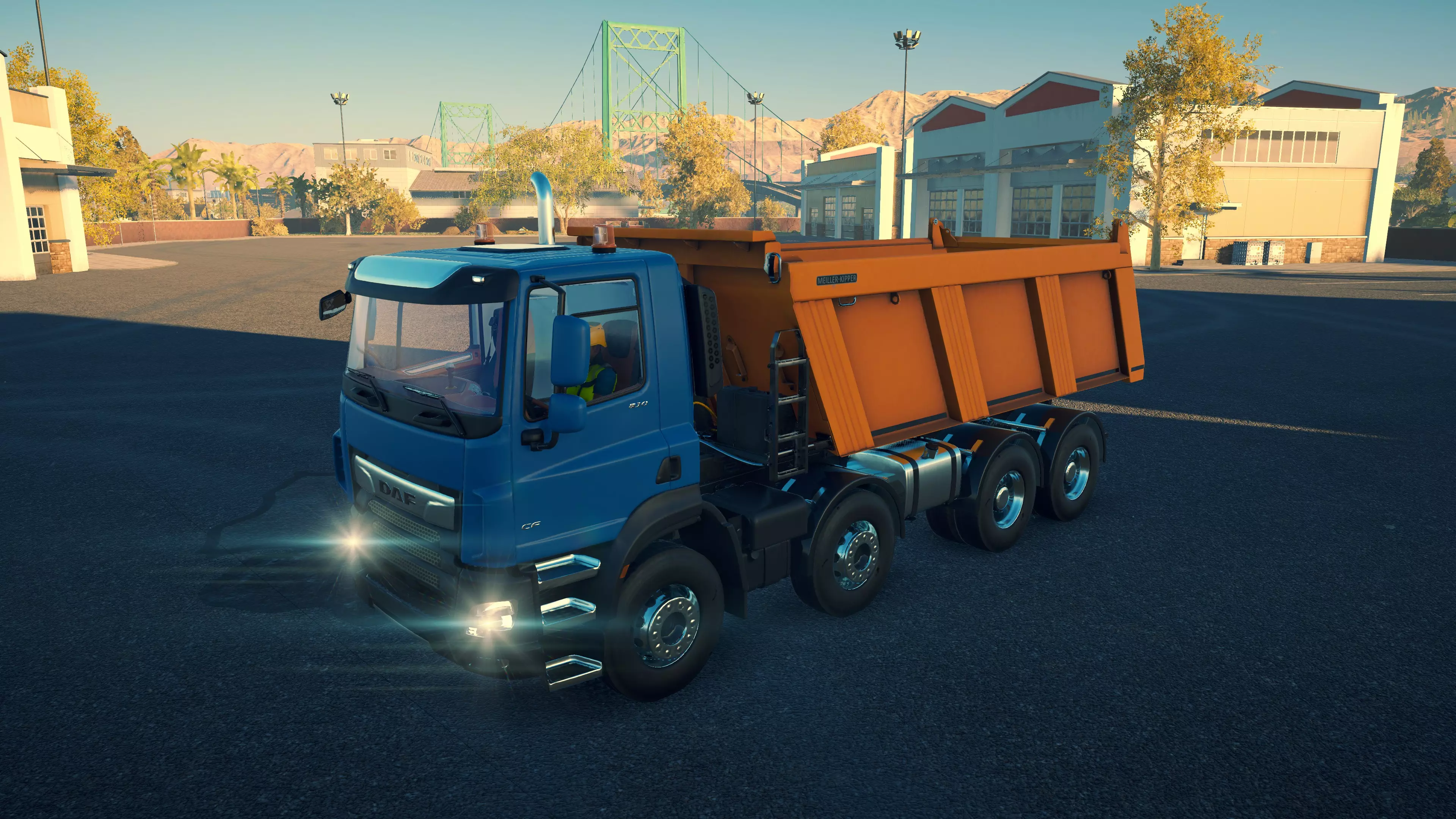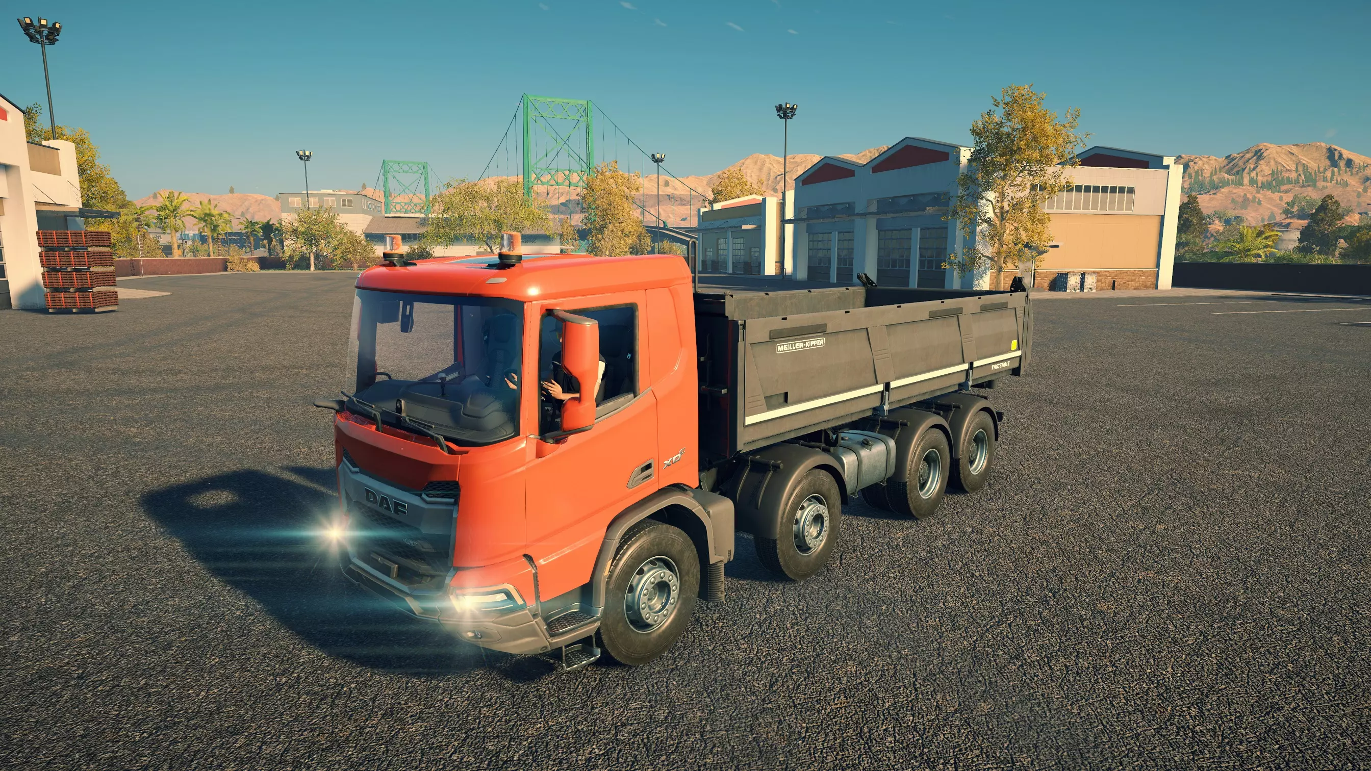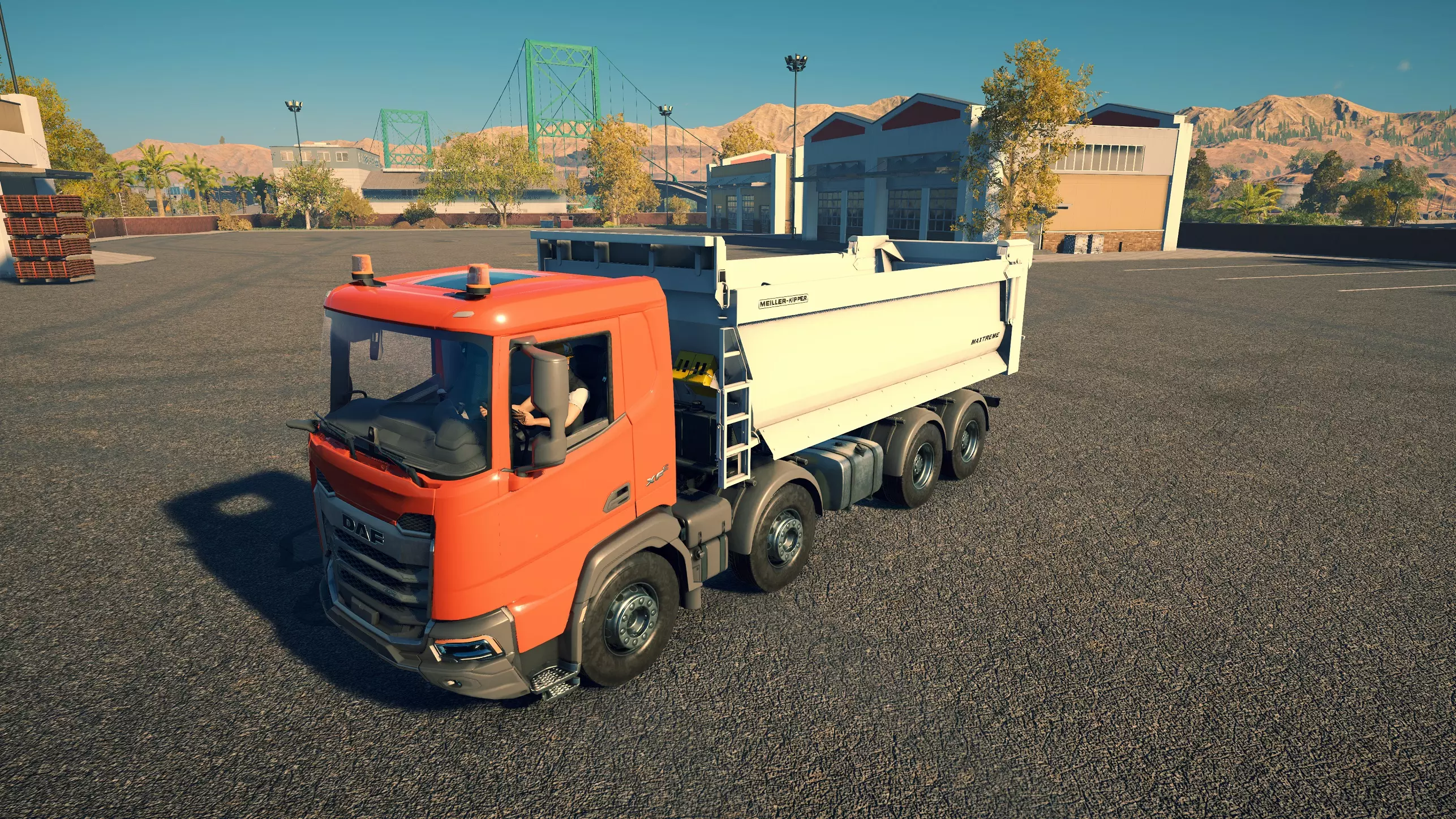 DAF XDC FAD/Meiller Trigenius D428 购买/租赁 - 100,000美元/2000美元 长度 - 9.18米 宽度 - 3.04米 高度 - 3.26米 转弯直径 - 20米 最高速度 - 92公里/小时/14公里/小时 加速度 - 8秒内加速至60公里/小时 散装物料容量 - 15.14立方米 货舱(单位) - 27长/10宽/10高(5.4米/2米/2米) 压力测试 - 1分55秒 与MAN TGS平板卡车一样,这是两款可同时运输散装物料和货物托盘的卡车之一。当然,它没有用于自行装载的起重机,但确实是一个多功能选择,而且价格相当便宜。不过容量处于较低水平。此外,存在一个bug:如果仅将车斗部分抬起,虽然会卸载物料,但几乎没有物料会落到地面上。这意味着你必须将车斗完全抬起,然后用平地机将物料堆摊开。