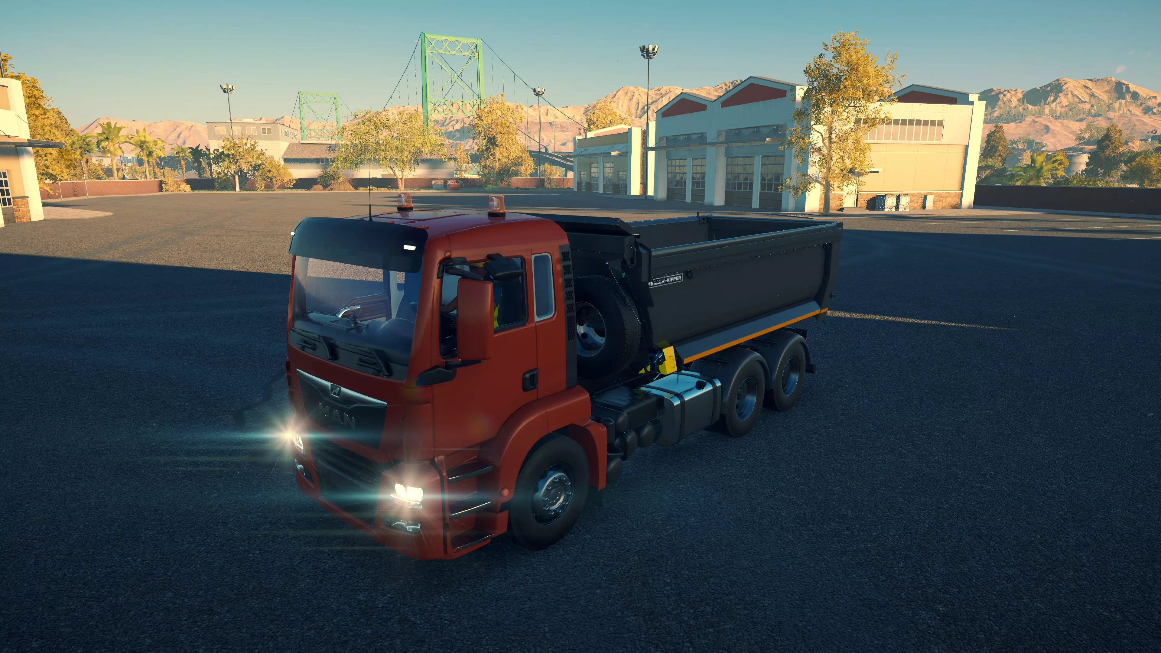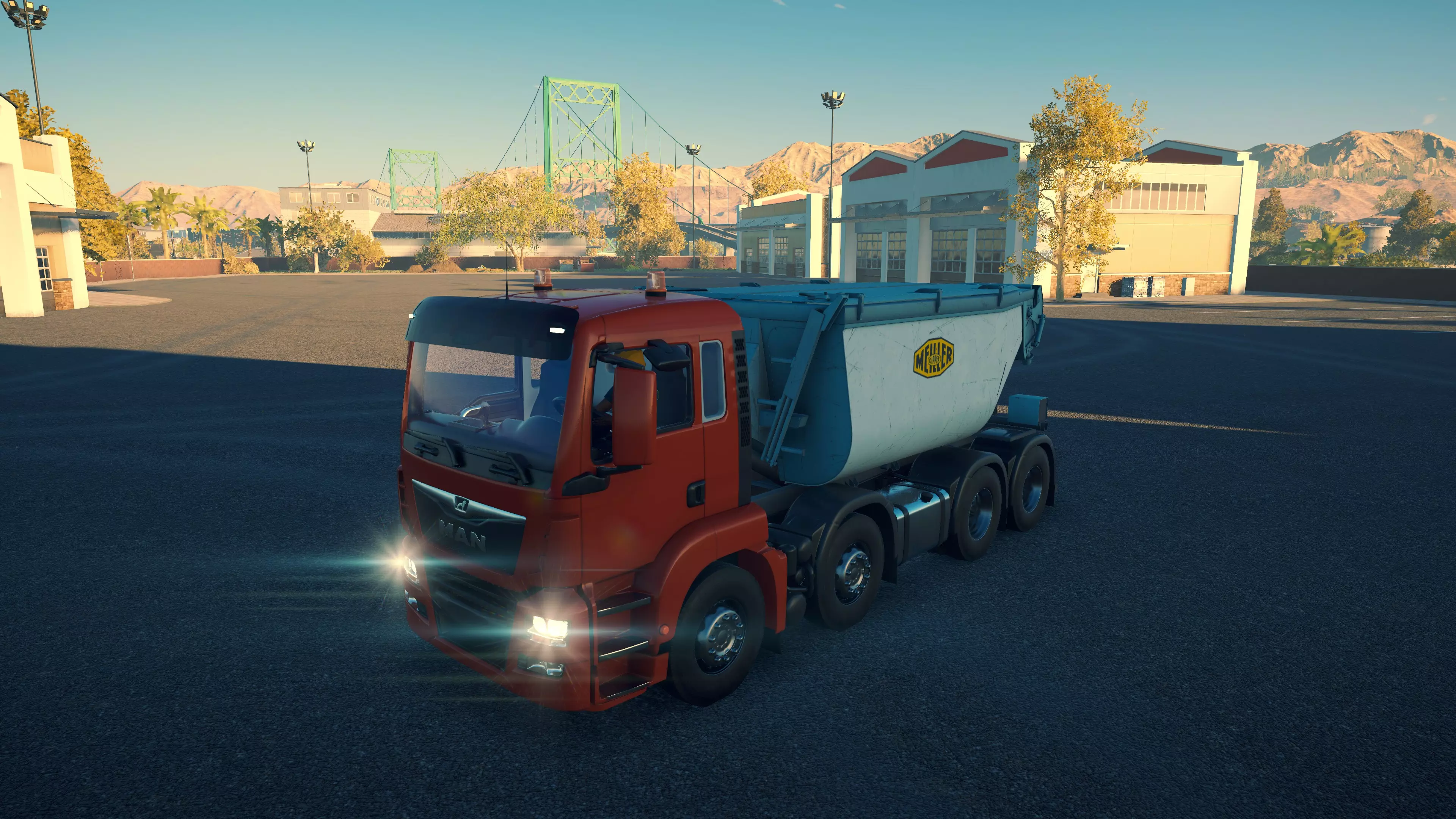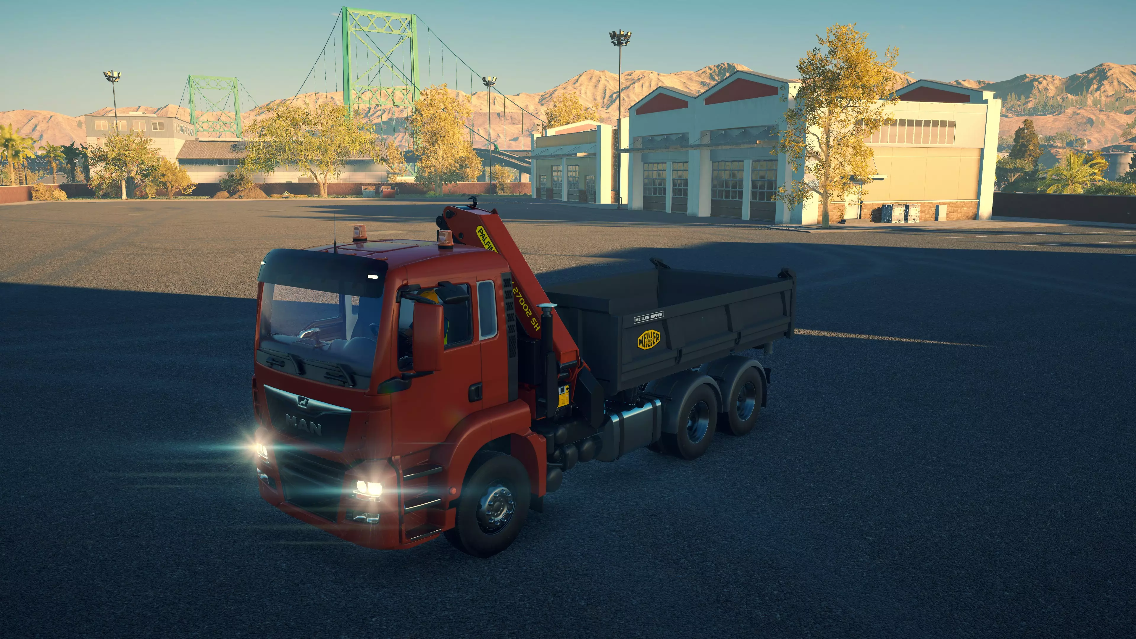 DAF XDC FAD/Meiller Trigenius D428 购买/租赁 - 100,000美元/2000美元 长度 - 9.18米 宽度 - 3.04米 高度 - 3.26米 转弯直径 - 20米 最高速度 - 92公里/小时/14公里/小时 加速度 - 8秒内加速至60公里/小时 散装物料容量 - 15.14立方米 货舱(单位) - 27长/10宽/10高(5.4米/2米/2米) 压力测试 - 1分55秒 与MAN TGS平板卡车一样,这是两款可同时运输散装物料和货物托盘的卡车之一。当然,它没有用于自行装载的起重机,但确实是一个多功能选择,而且价格相当便宜。不过容量处于较低水平。此外,存在一个bug:如果仅将车斗部分抬起,虽然会卸载物料,但几乎没有物料会落到地面上。这意味着你必须将车斗完全抬起,然后用平地机将物料堆摊开。