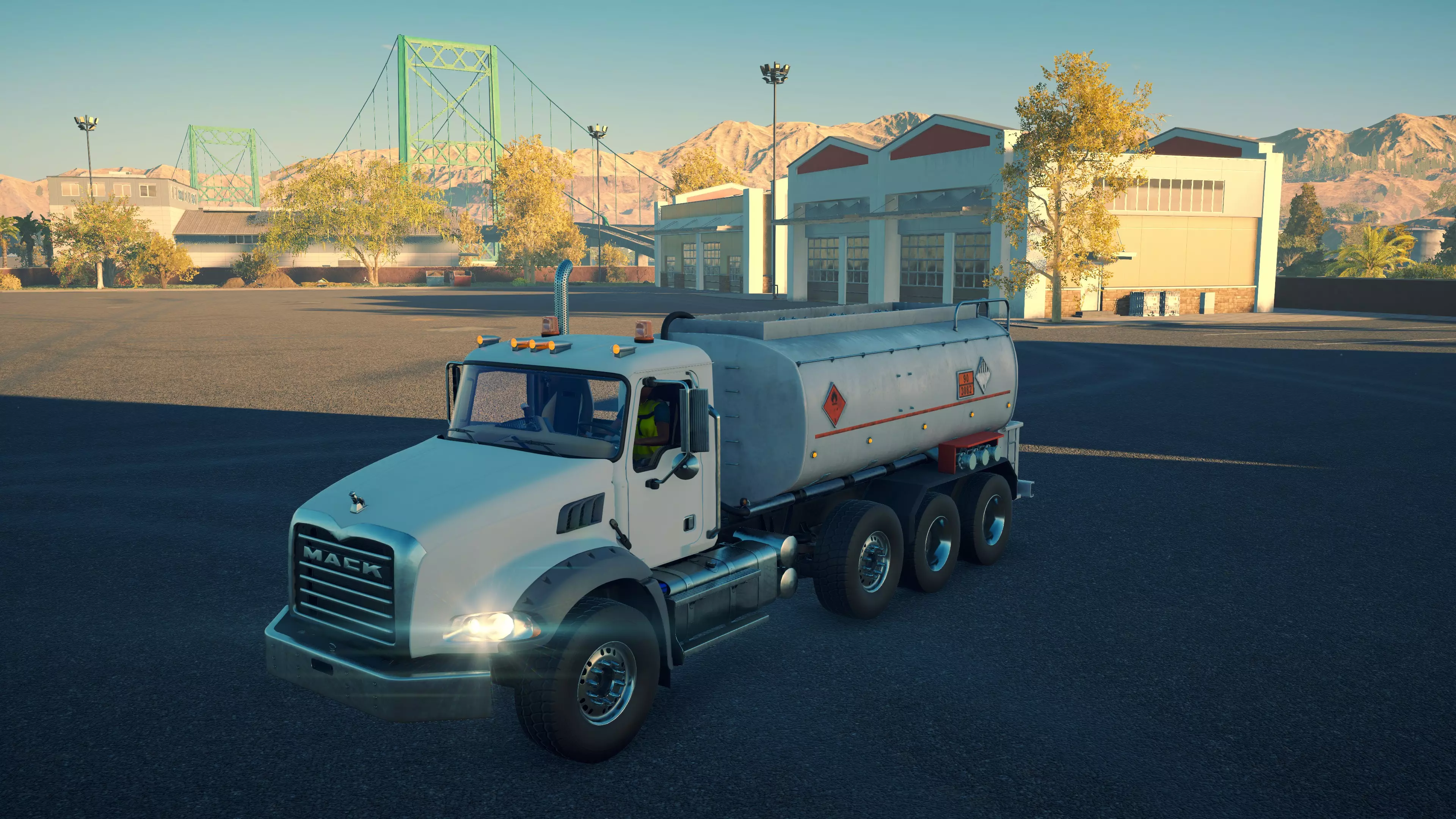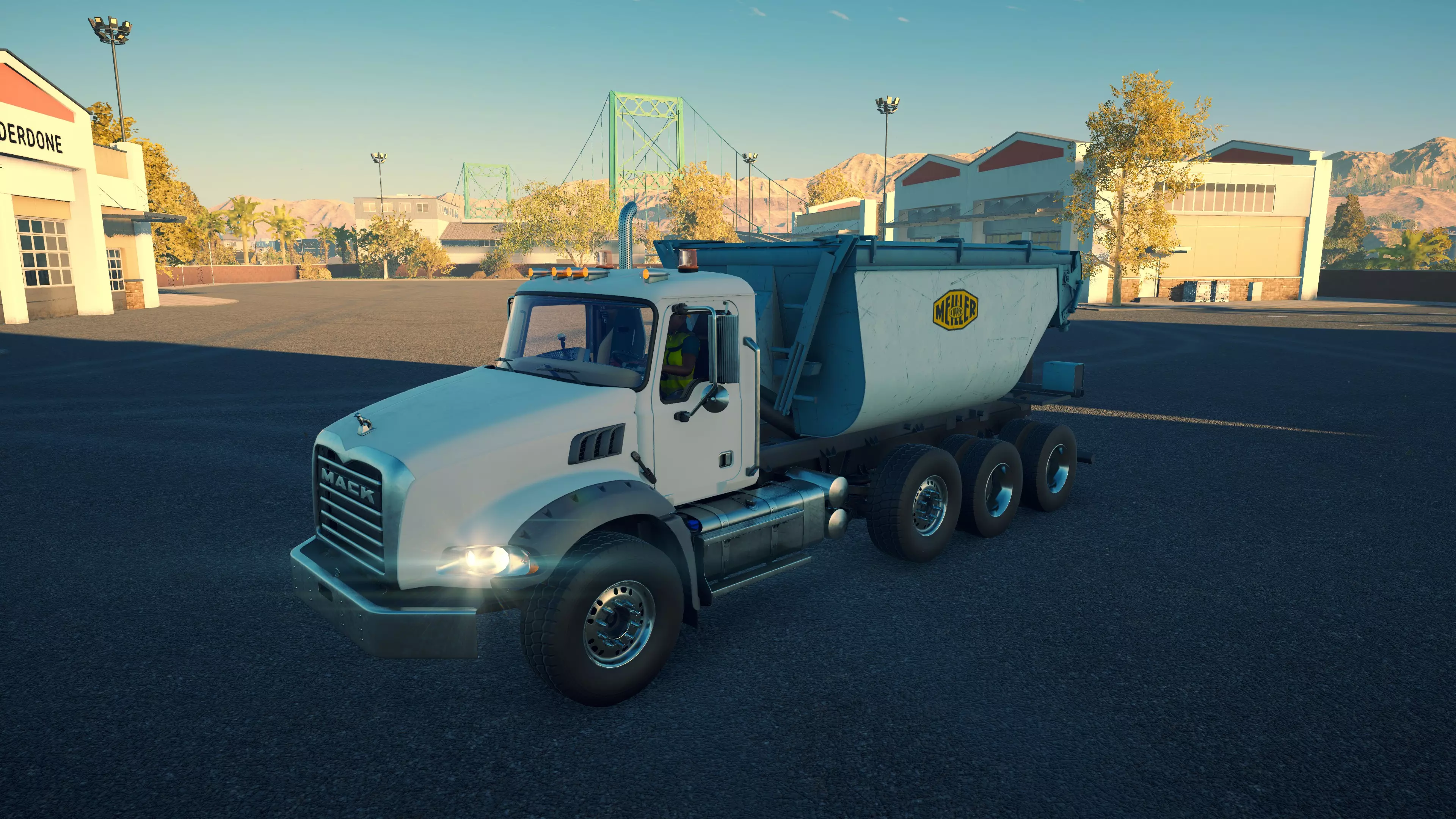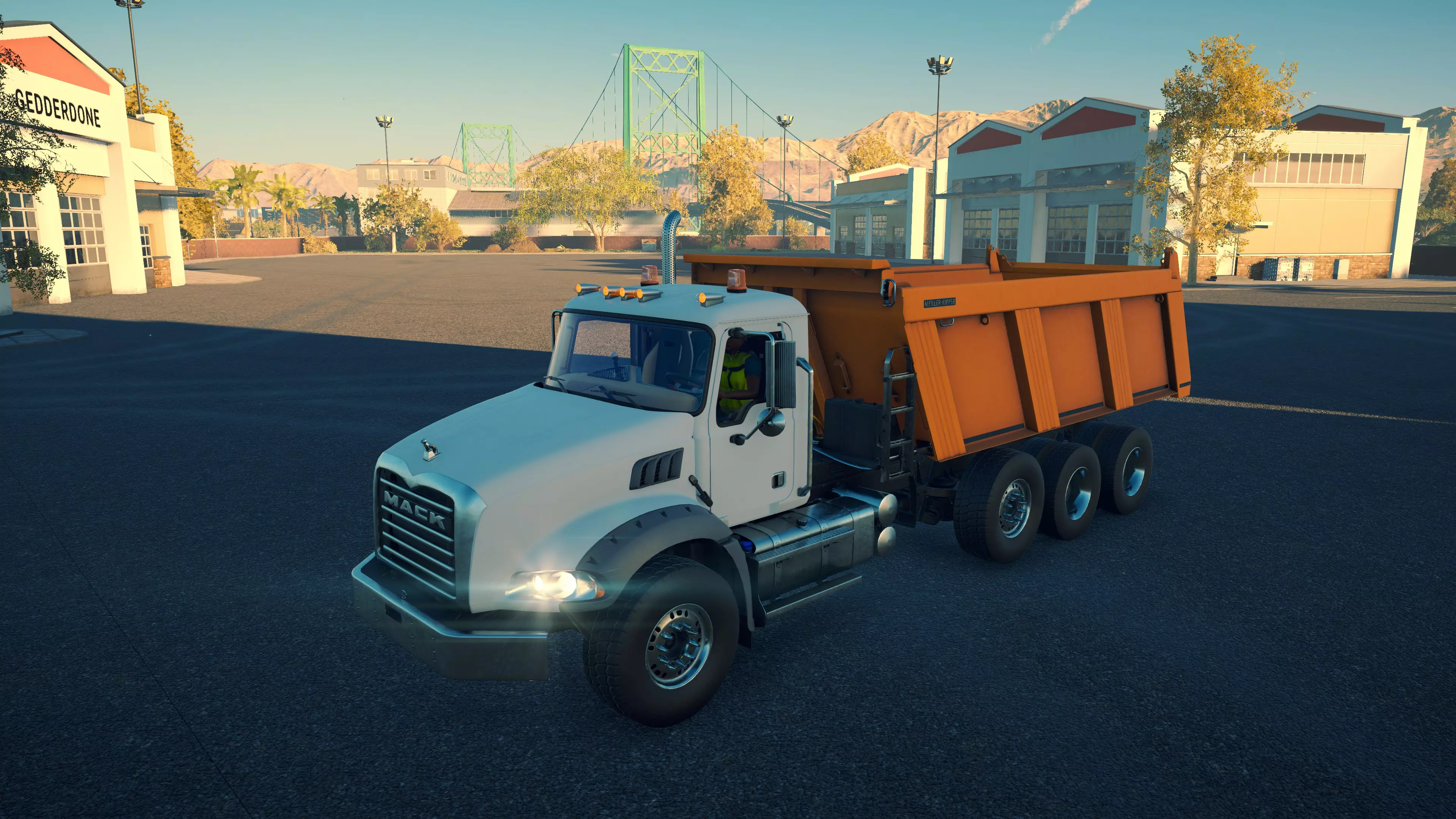 马克卡车安森 购买/租赁 - 83,000美元/1660美元 长度 - 7.16米 宽度 - 3.02米 高度 - 3.6米 转弯直径 - 16米 最高速度 - 88公里/小时/13公里/小时 加速度 - 6秒内达到60公里/小时 压力测试/带拖车 - 1分36秒/2分06秒 尽管是所有牵引车中速度最慢的,无论哪个方向都仅慢1公里/小时,但实际上这是一辆性能可靠的卡车。它拥有T880所缺乏的各种扭矩,无论是否拖挂 trailer,都能轻松爬坡,仅被少数几辆卡车略微超越,且差距不大。它的加速度也非常出色。 沥青自卸车 这3辆卡车之间没有太多区别,因为它们的沥青承载能力相同。MAN卡车速度明显更快,在坡道上表现也更出色;而马克卡车的加速和转向性能更优,考虑到MAN是平头驾驶室且轴距更短,这种情况有些奇怪。达夫卡车与马克卡车几乎完全相同,因此显然不值得多花20,000美元购买。