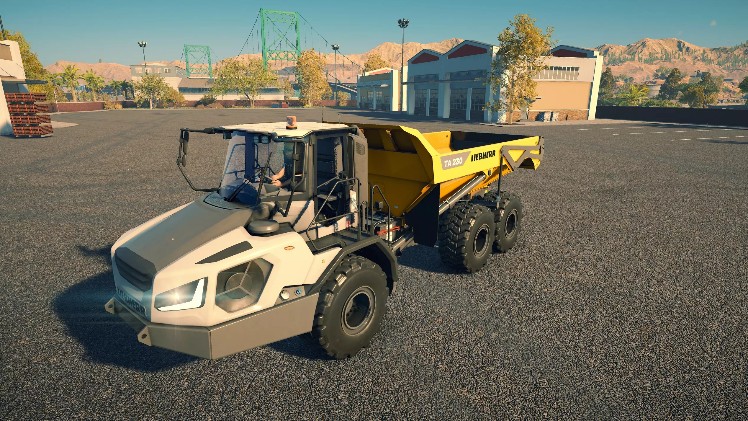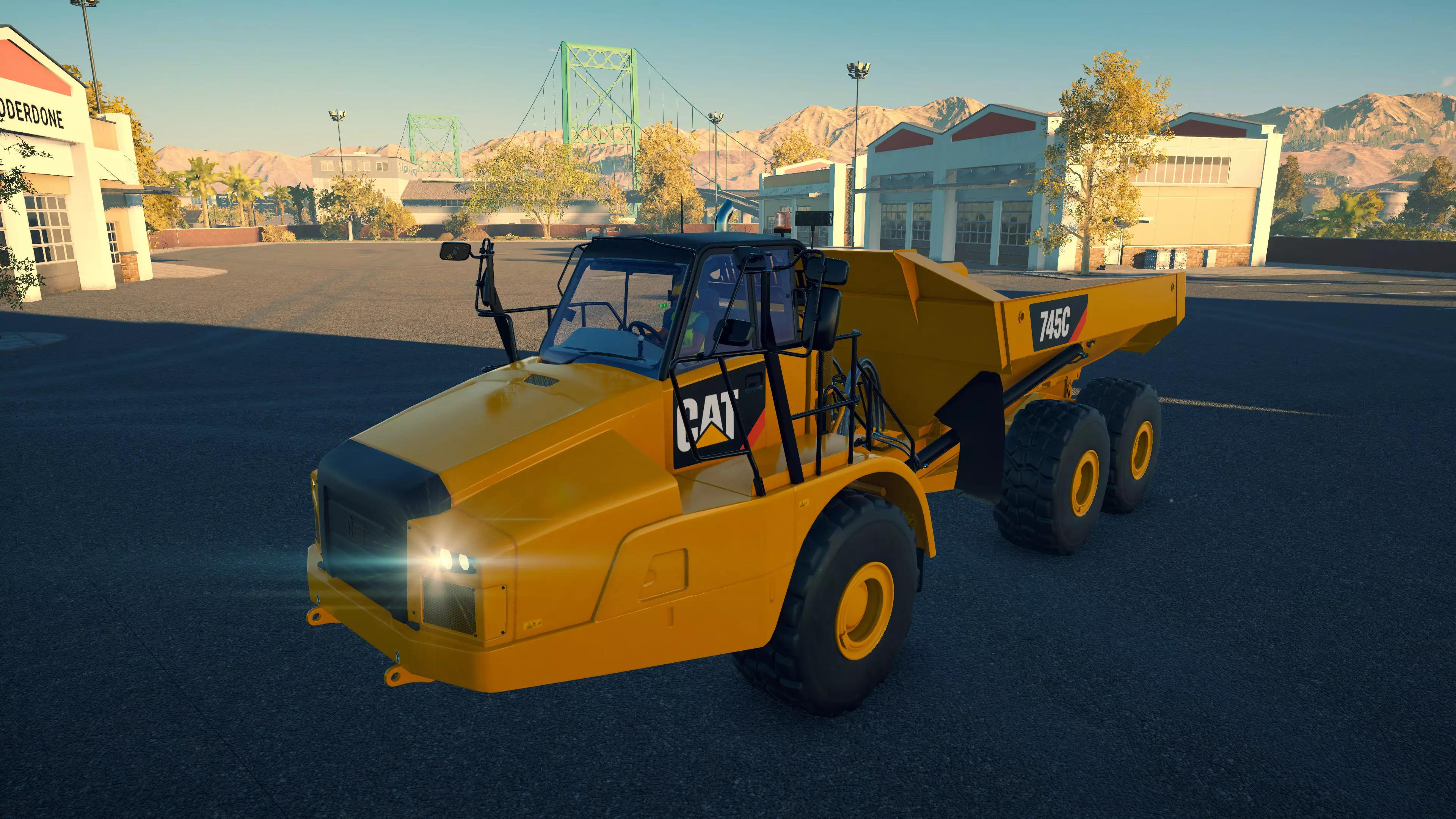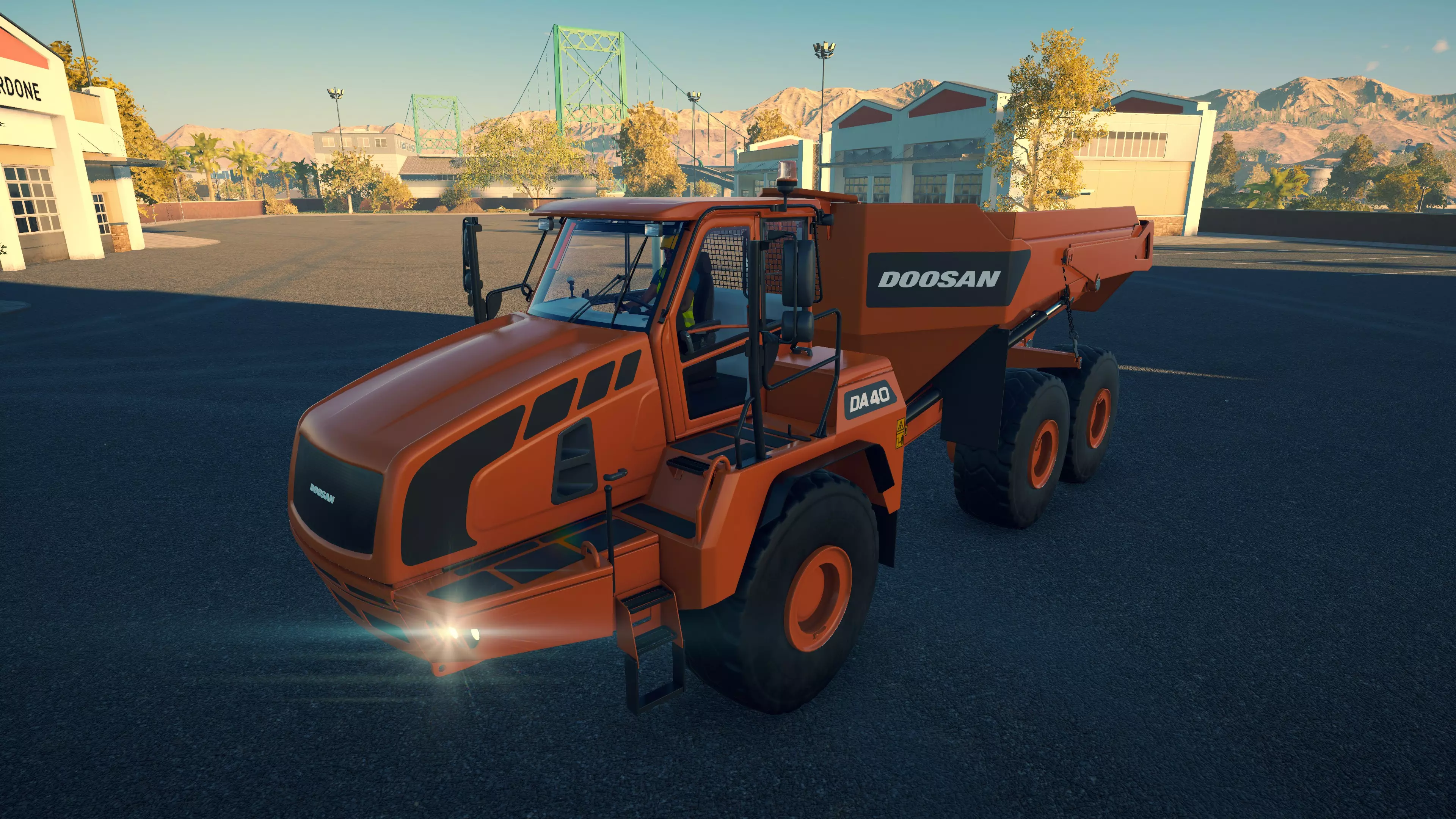斗山 DA40 购买/租赁 - 196,000美元/3,920美元 长度 - 10.74米 宽度 - 3.98米 高度 - 4.08米 转弯直径 - 16米 最高速度 - 51公里/小时/13公里/小时 加速性能 - 40/51公里/小时加速时间为7.8/13.5秒 散装物料容量 - 21.18立方米 压力测试 - 2分25秒 总体而言,它是游戏中最出色的铰接式自卸卡车。其容量最大,在爬坡或穿越不平地面/散装物料堆时表现相当出色。在铰接式自卸卡车中,它的转弯半径最大,但仍与所有常规自卸卡车(斯堪尼亚除外)相当或更优。不过,与其他铰接式自卸卡车一样,它在高速公路上行驶时速度相当慢。