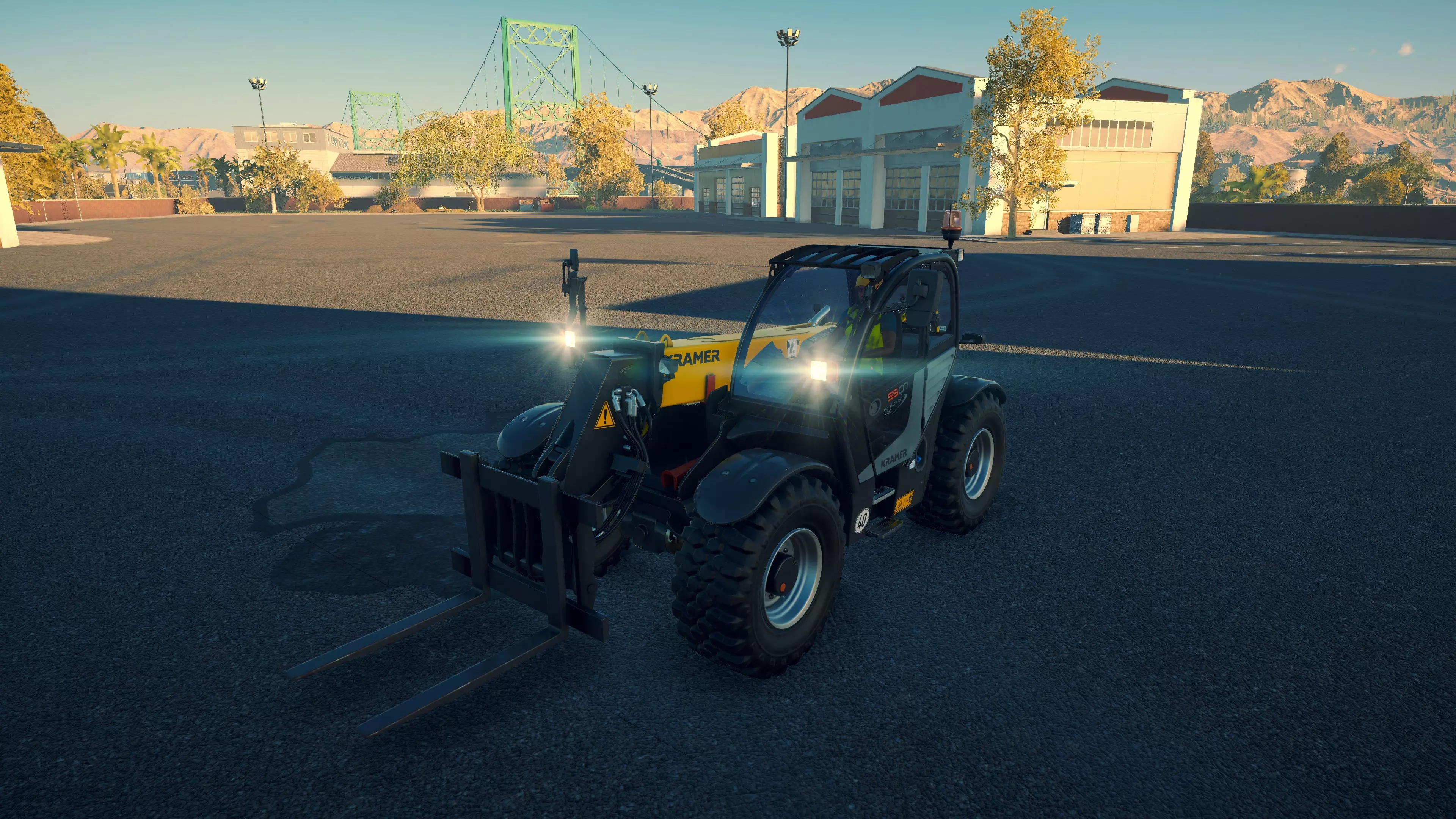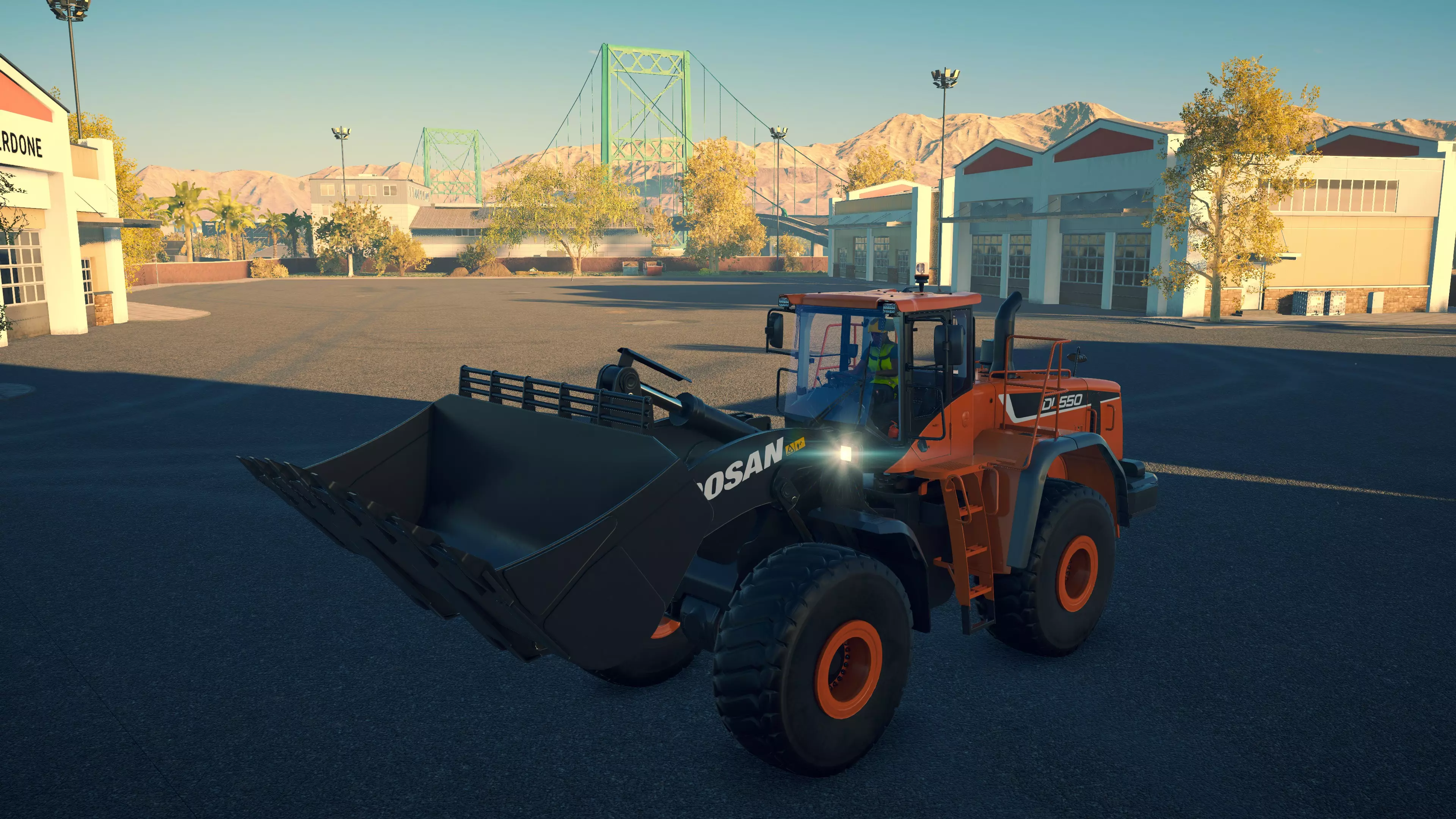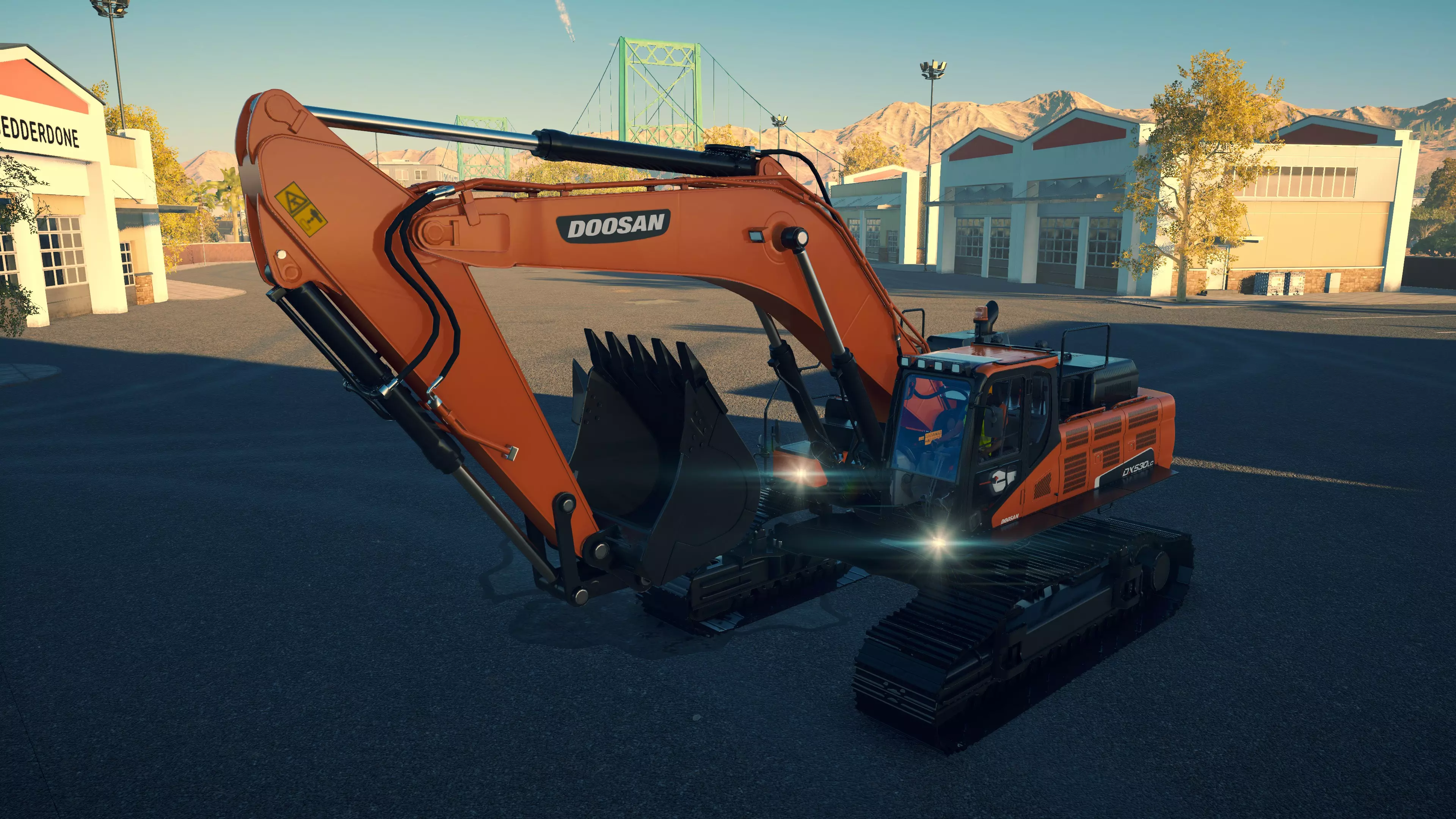斗山 DA40 购买/租赁 - 196,000美元/3,920美元 长度 - 10.74米 宽度 - 3.98米 高度 - 4.08米 转弯直径 - 16米 最高速度 - 51公里/小时/13公里/小时 加速性能 - 40/51公里/小时加速时间为7.8/13.5秒 散装物料容量 - 21.18立方米 压力测试 - 2分25秒 总体而言,它是游戏中最出色的铰接式自卸卡车。其容量最大,在爬坡或穿越不平地面/散装物料堆时表现相当出色。在铰接式自卸卡车中,它的转弯半径最大,但仍与所有常规自卸卡车(斯堪尼亚除外)相当或更优。不过,与其他铰接式自卸卡车一样,它在高速公路上行驶时速度相当慢。