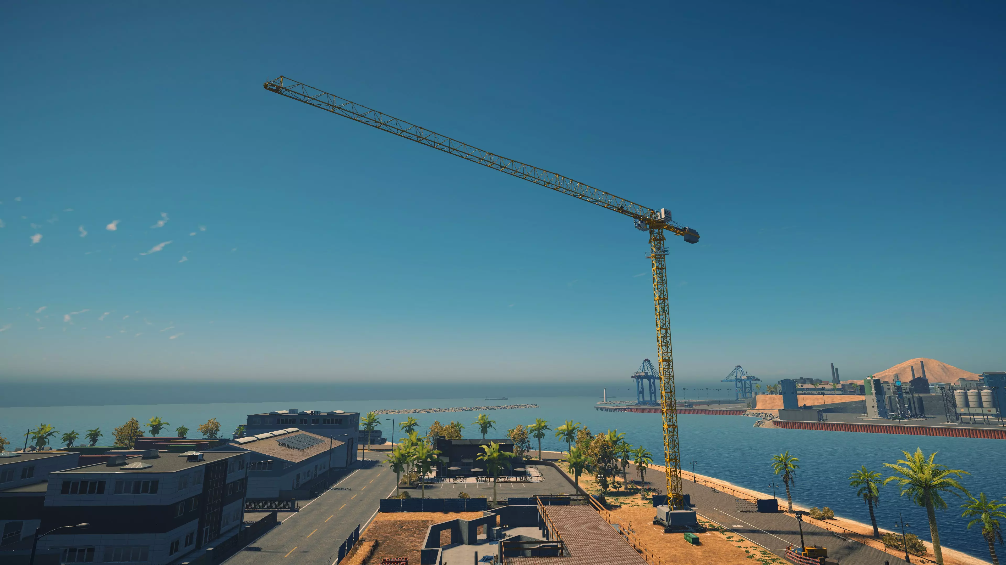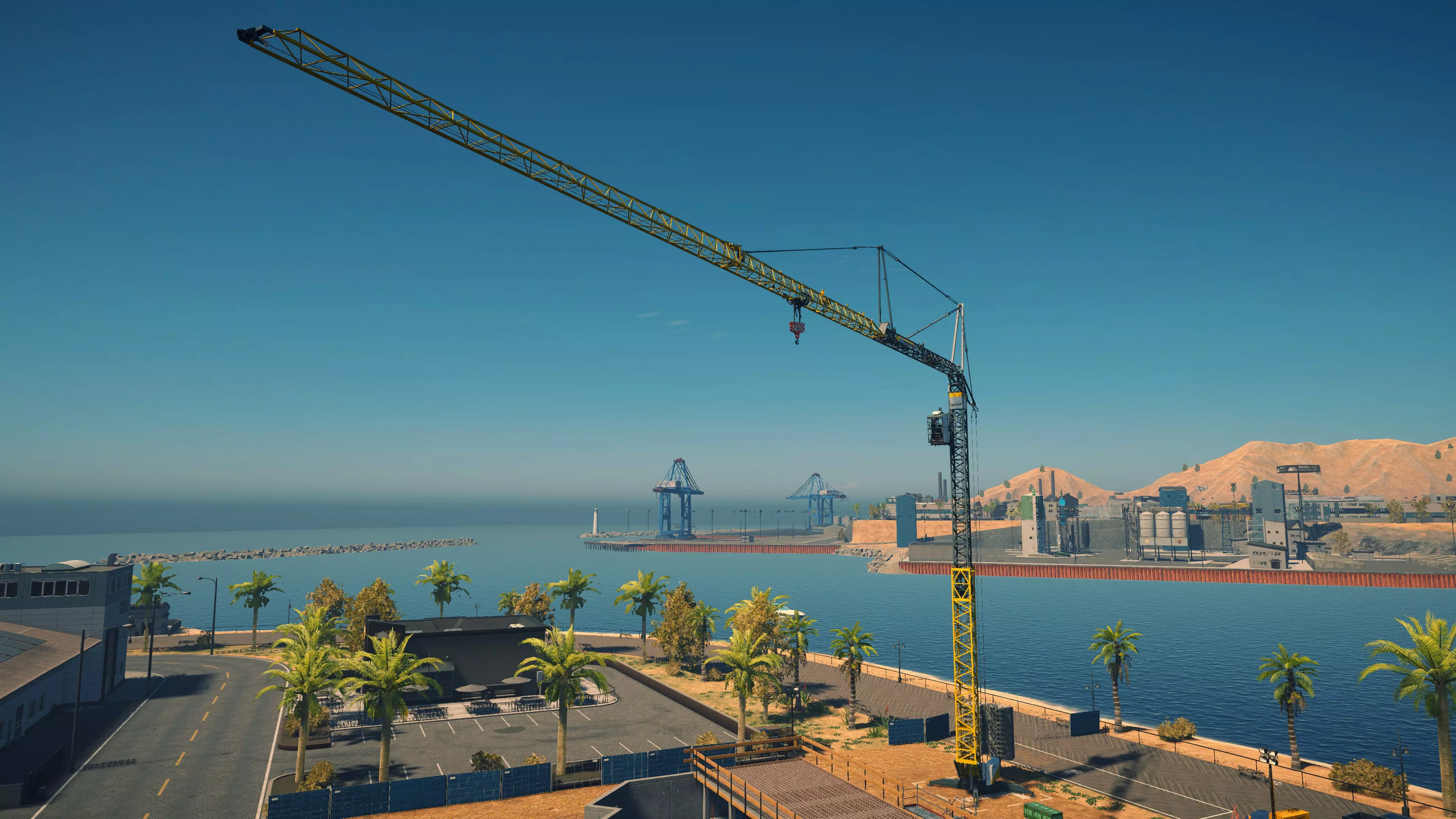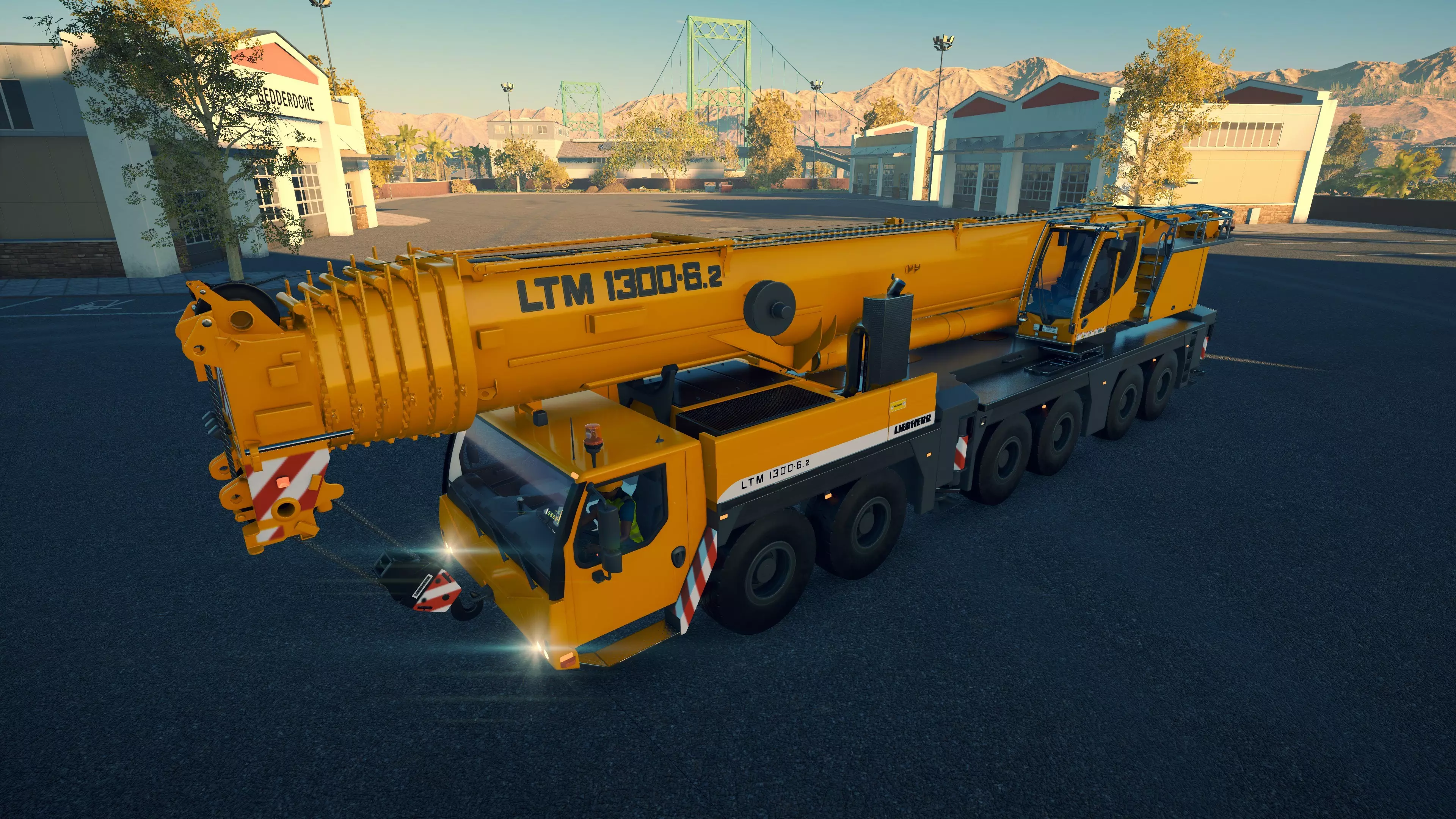 三一重工 SAC1300T2 购买/租赁 - 375,000美元/7,500美元 长度/带支架 - 15.6米/16.3米 宽度/带支架 - 3.24米/9米 高度/带支架 - 4.4米/4.4米 转弯直径 - 14米 最高速度 - 87公里/小时/9公里/小时 加速性能 - 14.5秒内加速至50公里/小时 最大吊臂长度 - 64米 最大吊钩高度 - 66米 360度旋转时间 - 25.5秒 吊钩升降时间 - 14.5秒 吊臂升降时间 - 15.5秒 吊臂伸缩时间 - 24秒 起重等级 - D级 相比LTM1060仅多花费58,000美元,这台起重机堪称一笔相当划算的交易,因为你能获得约20%的额外作业半径,并且可以吊起游戏中的任何物品。它体型稍大,灵活性略低,加速也稍慢一些,但额外的成本和这些小缺点都被其增强的性能所弥补。三一重工起重机的一大优点是,当你抬高吊臂时,起重机的操作室会随之倾斜,这意味着在内部视角下,你可以抬头足够高来追踪吊钩。此外,它的两侧还配备了一组不错的泛光灯,方便夜间作业。