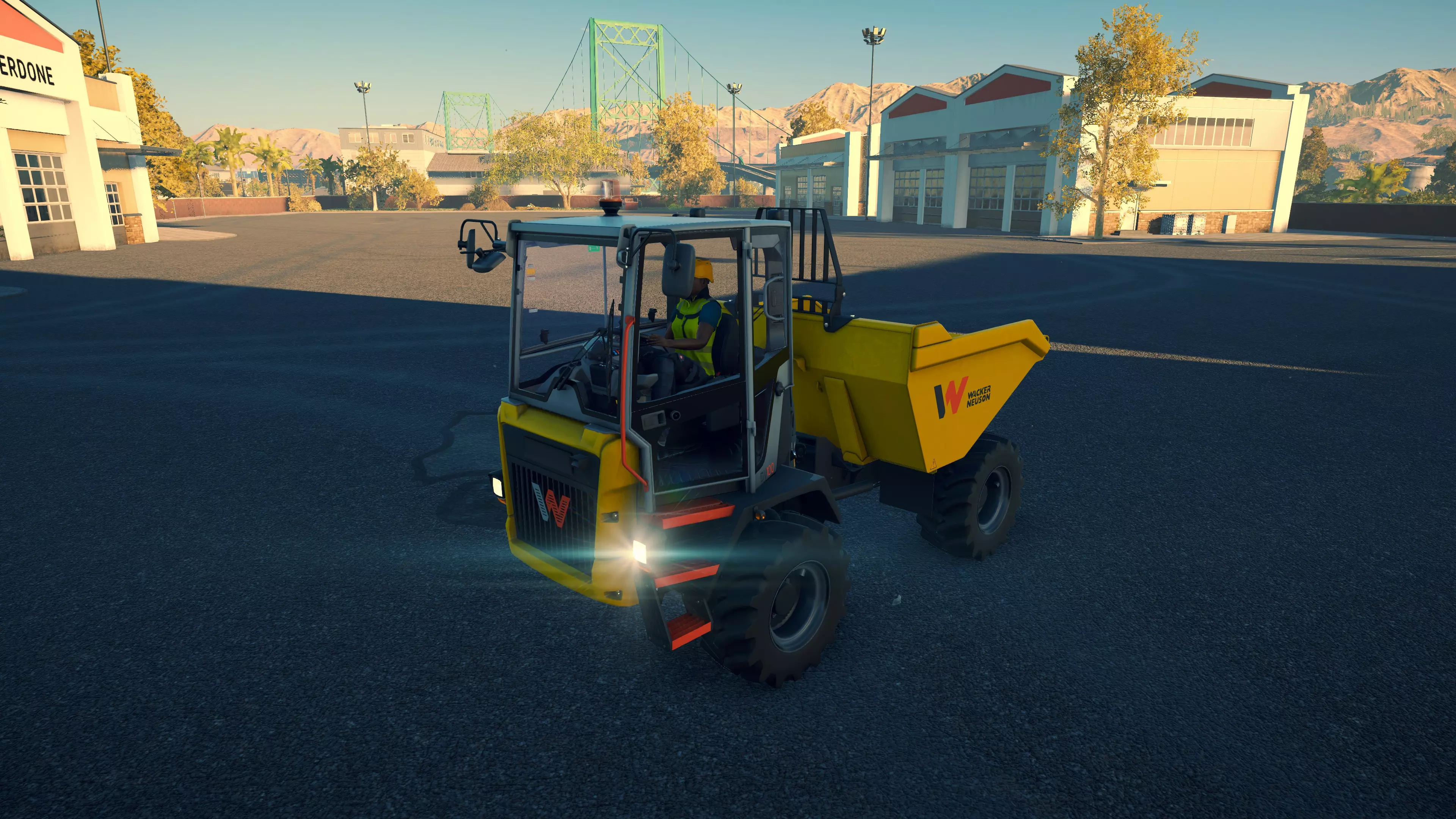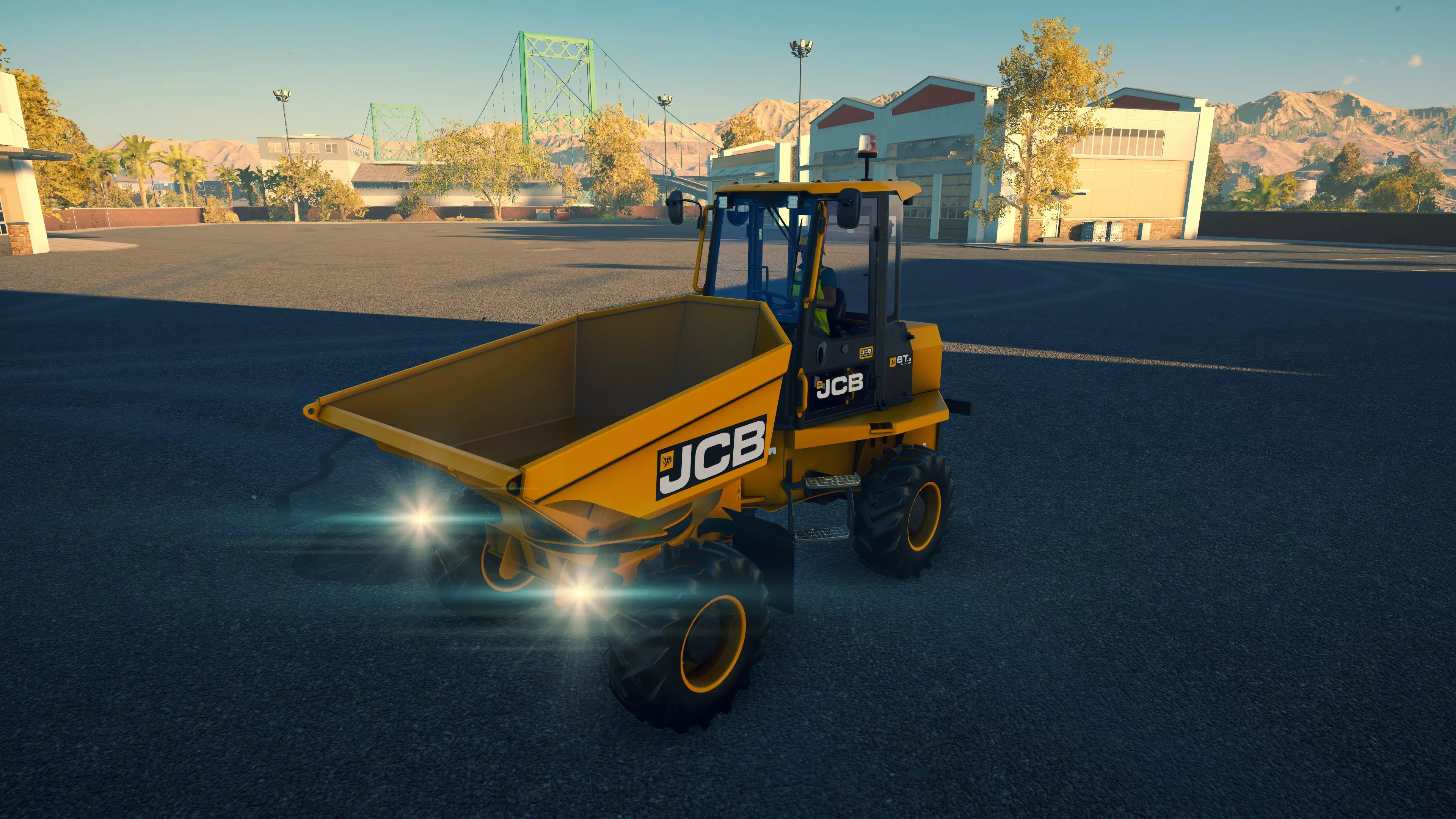 JCB 6T-2 购买/租赁 - 56,000美元/1120美元 长度 - 5.12米 宽度 - 2.24米 高度 - 3.34米 转弯直径 - 8米 最高速度 - 16公里/小时/7公里/小时 加速性能 - 4.5秒内加速至16公里/小时 散装物料容量 - 2.79立方米 压力测试 - 6分32秒 毫无疑问,这是游戏里最糟糕的自卸卡车。简直就是垃圾。在我看来,它绝对是游戏中整体最差的载具之一,三一重工SY35U也不相上下。即便是没有任何体能升级,玩家角色跑步的速度也比这台卡车行驶的速度快不少。除此之外,它的容量在所有自卸卡车中也是第二小的。如果你是那种喜欢亲自往返 gravel plant(砂石厂)的玩家,无论是为了沉浸感还是节省成本,使用这台卡车都会是一种折磨。唯一的独特功能——与其说是特色,不如说是噱头——是翻斗车厢可以朝着卡车前方进行180度旋转。你可以向前、向左、向右倾倒,或者在这些方向之间的任意角度倾倒。这个功能确实独特,但并不值得为此忍受该卡车的诸多严重缺点。
