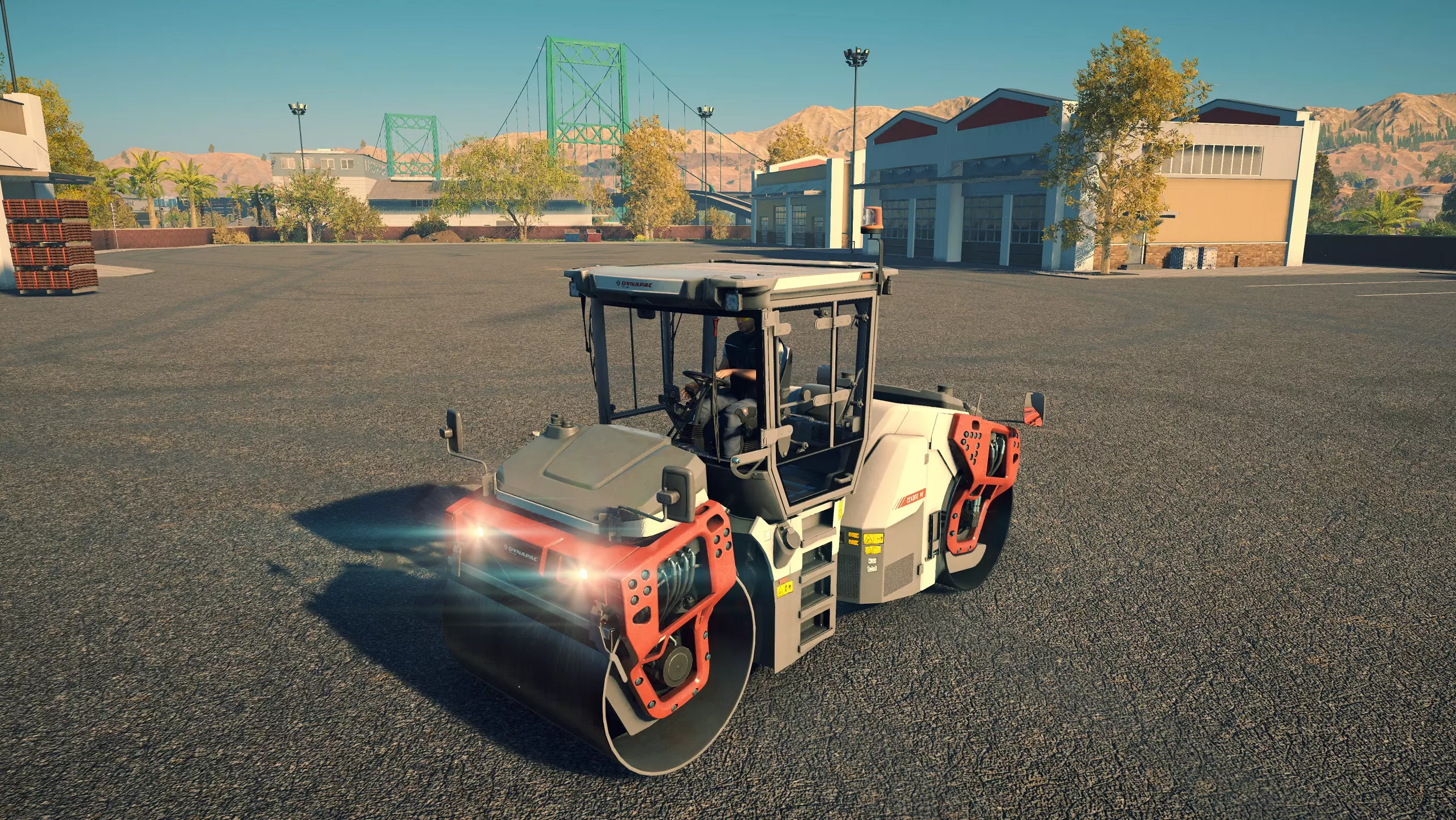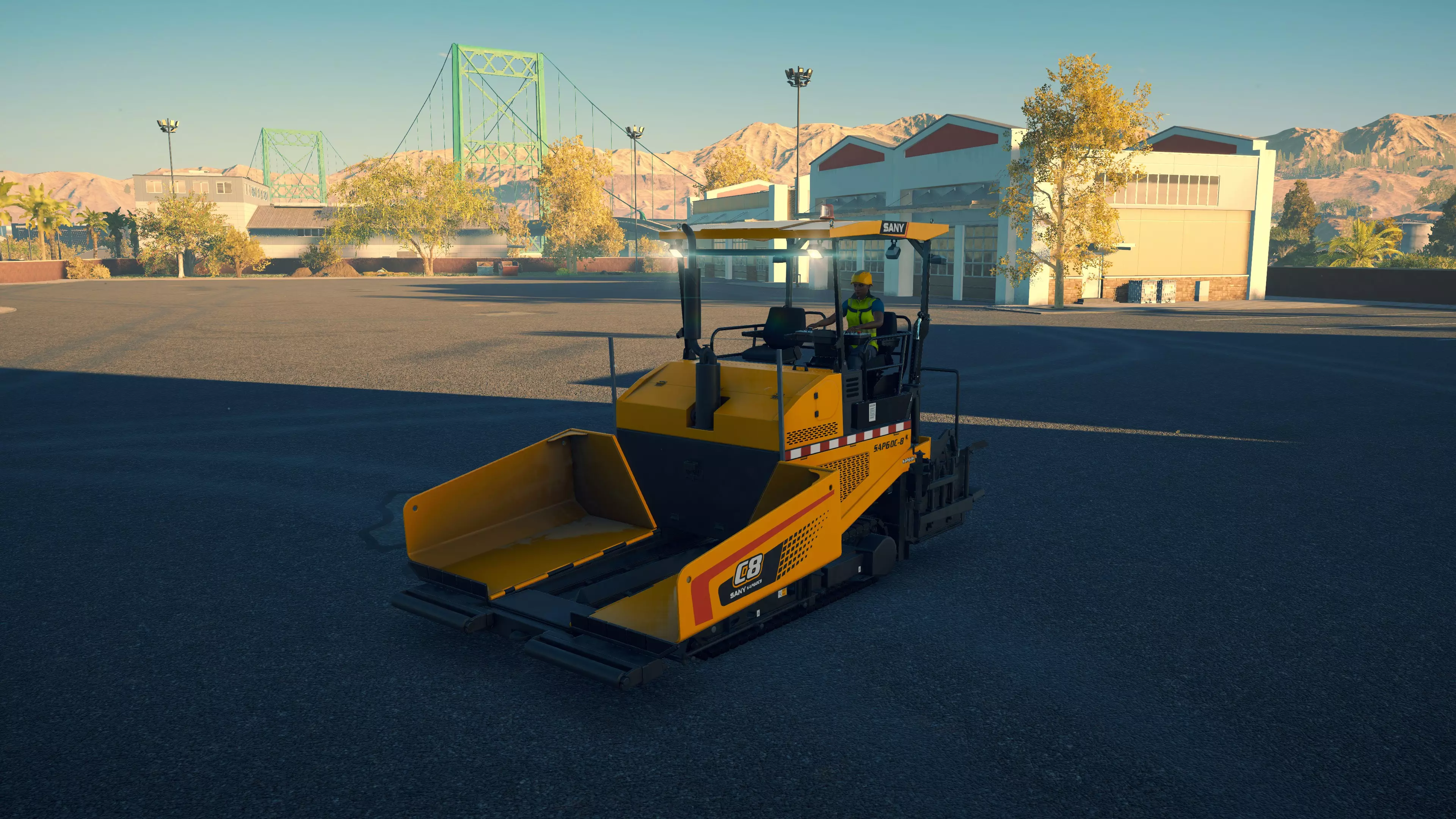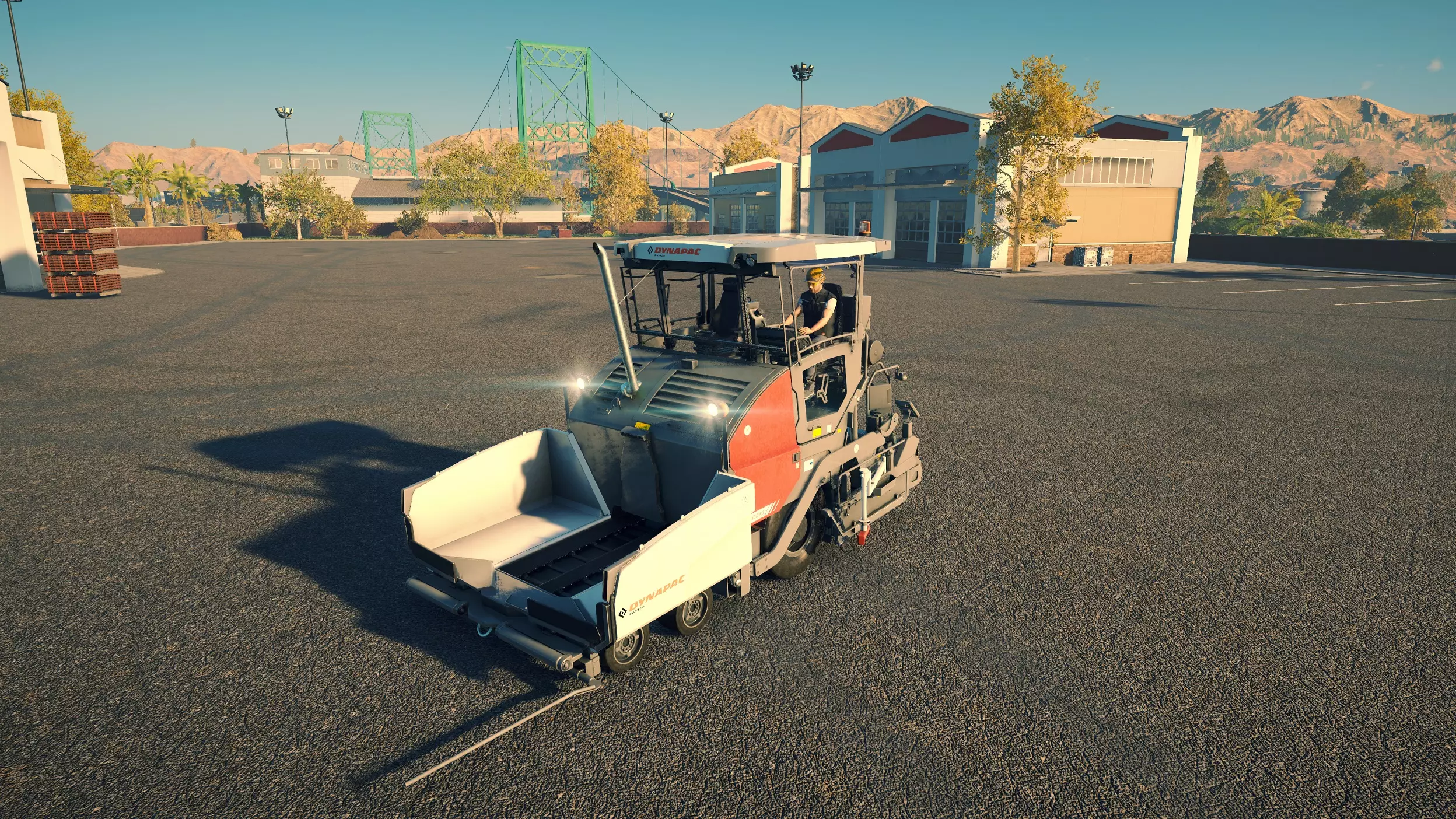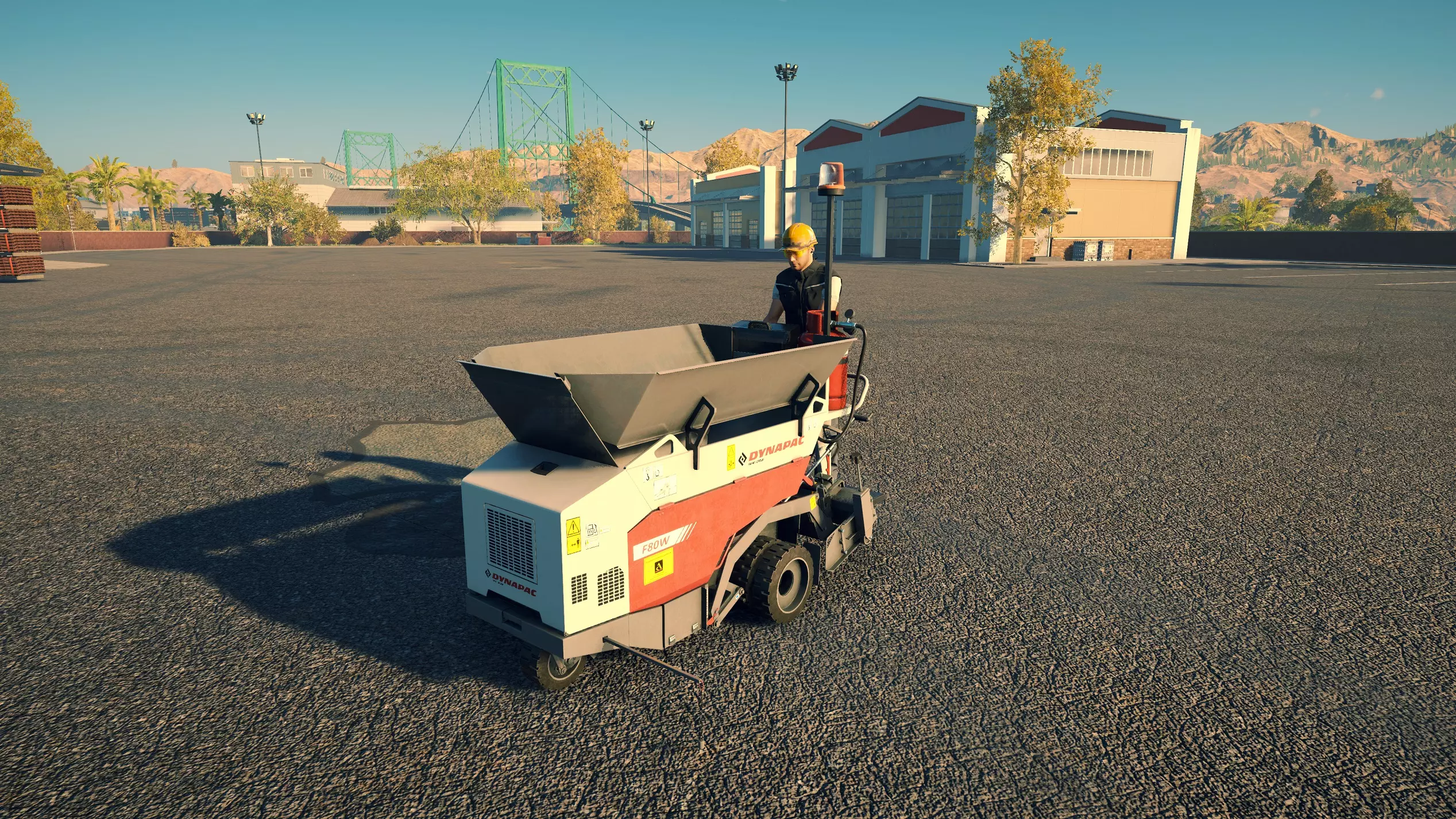 戴纳派克 CC4200VI 购买/租赁 - 105,000美元/2100美元 长度 - 5.06米 宽度 - 2.42米 高度 - 3.38米 压实面积 - 2.4米宽 转弯直径 - 11.5米 最高速度 - 12公里/小时/12公里/小时 加速度 - 9秒内达到12公里/小时 沥青摊铺机 在三一重工扩展包中现有的4台机器里,福格勒作为最便宜的机型,并未过多牺牲性能;但宝马格可以说是最差的,因为它比福格勒更贵,性能却基本相同。卡特彼勒和三一重工的机型是最佳选择,其中三一重工凭借更快的转弯速度,以及能够在所有摊铺机中选择最窄和最宽摊铺范围的多功能性,位居第一。 不过,戴纳派克的机器增加了许多额外选项。F80W速度很慢,料斗容量也极小,但其价格仅为之前机型的四分之一,是早期游戏中一个经济实惠的选择。或许是因为它体型小巧且机动性强,最适合用于为停车场和道路的边缘铺设沥青。此外,它采用轮式驱动而非履带驱动,转向也更加容易。 F1250SC是一款出色的中端选择。以大型机型约40%的价格,你就能获得一台能够胜任小型铺路工作的设备,不过其料斗容量和最高速度仅为那些大型机型的一半多一点,因此频繁的补充材料会有些繁琐。而且,即使将熨平板展开,它的摊铺量也仅相当于大型机型未展开熨平板时的水平。SD2500WS无疑是最出色的摊铺机。与F80W一样,它采用轮式而非履带式设计,因此更容易保持直线行驶。其最高速度和料斗容量也比其他任何摊铺机高出近50%。虽然它每次摊铺量几乎与福格勒(Vögele)相当,在这方面老式机器表现更优,但额外的容量使其非常值得。尽管如此,它的价格却比卡特彼勒(CAT)、宝马格(Bomag)或三一重工(SANY)便宜44,000美元。唯一的缺点是转弯困难,尤其是与可以原地旋转的履带式摊铺机相比。