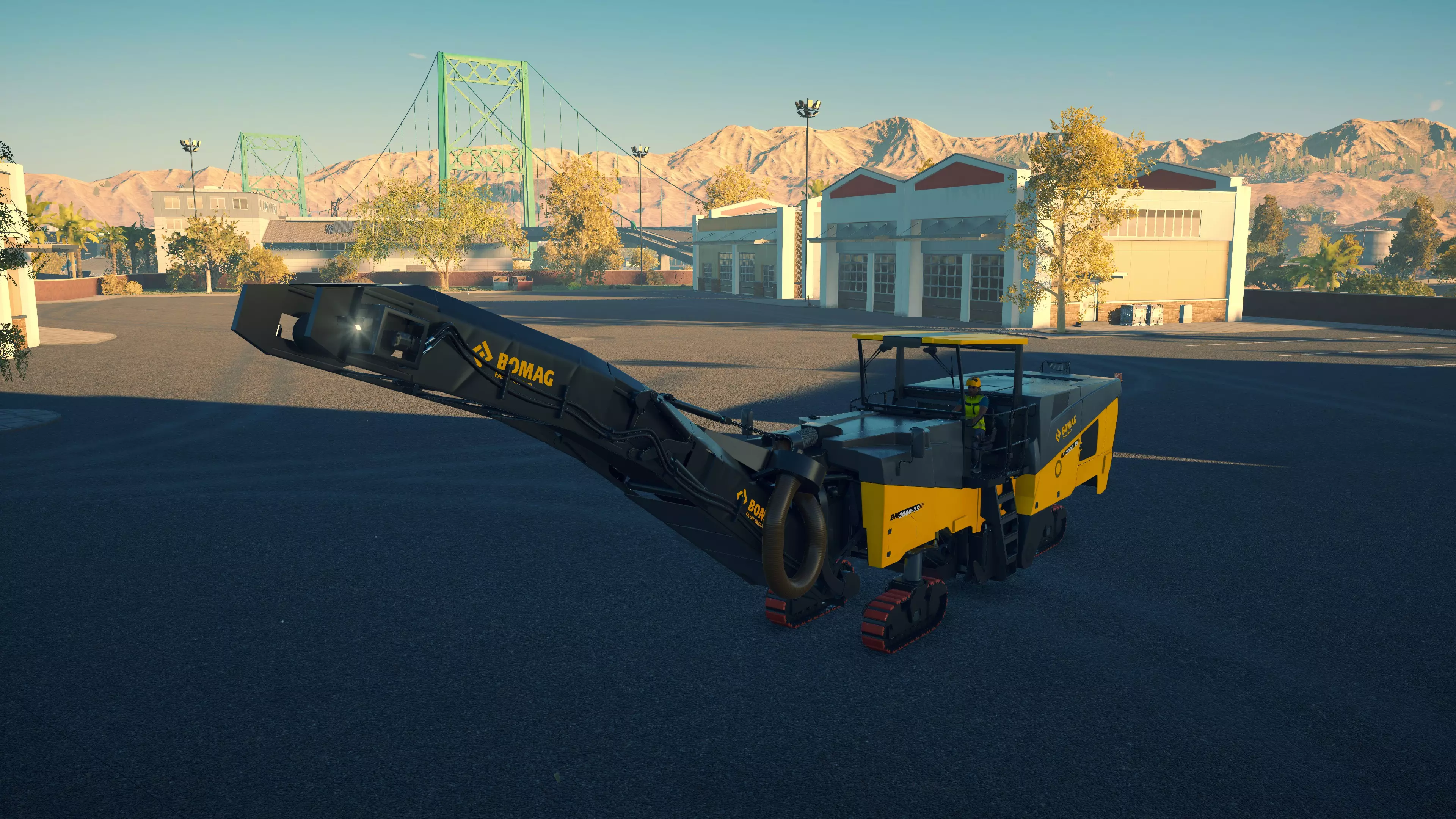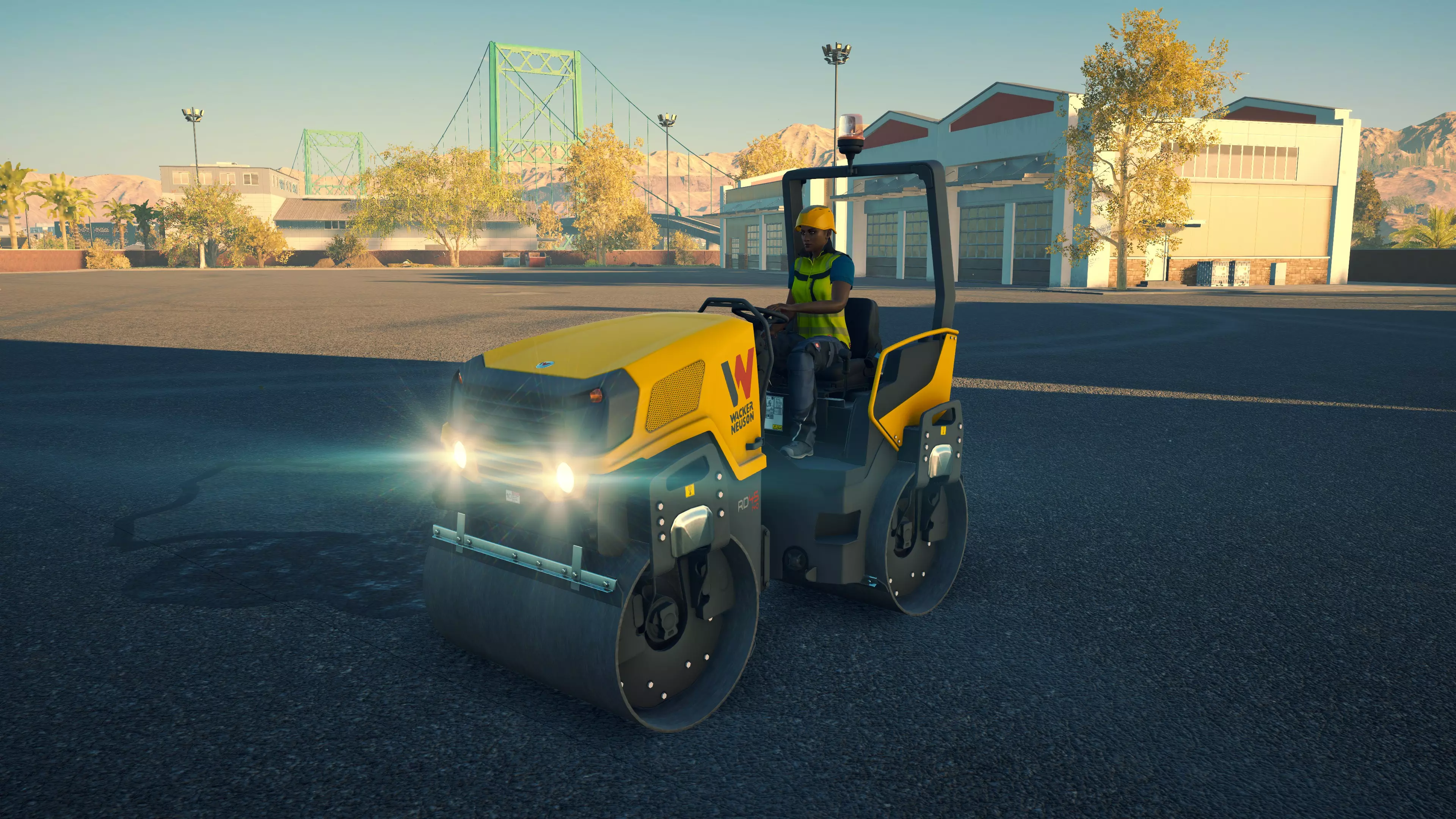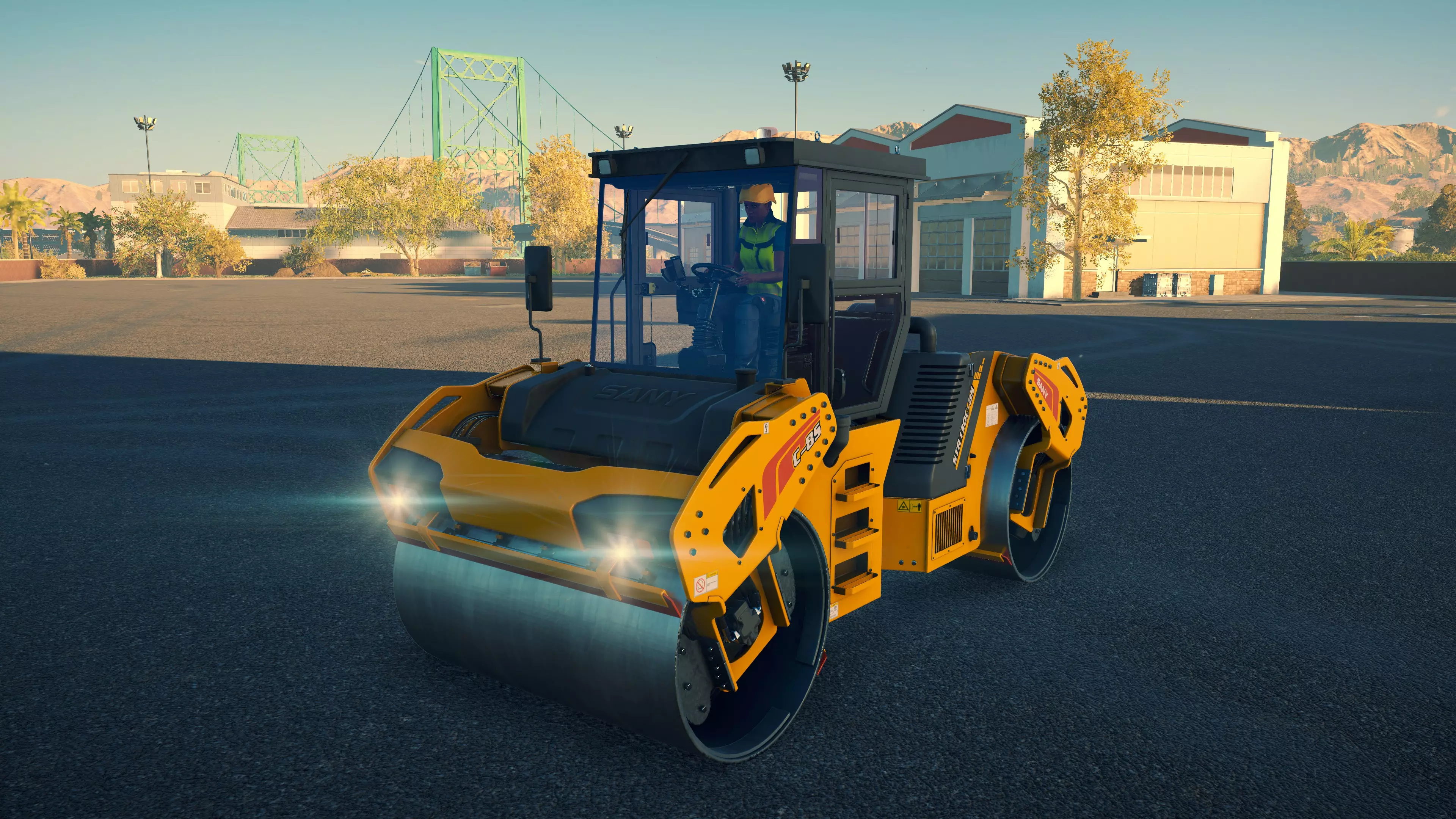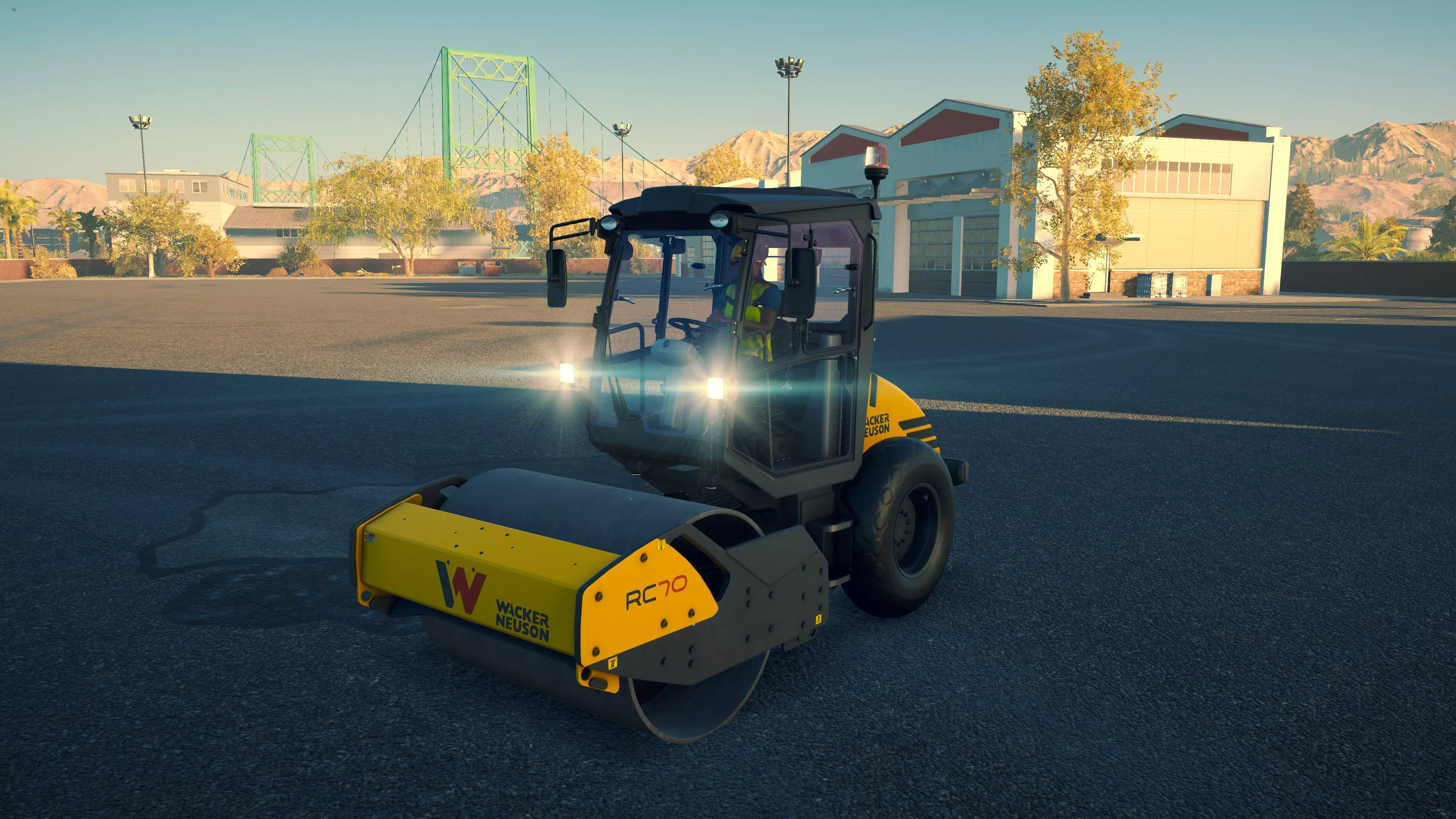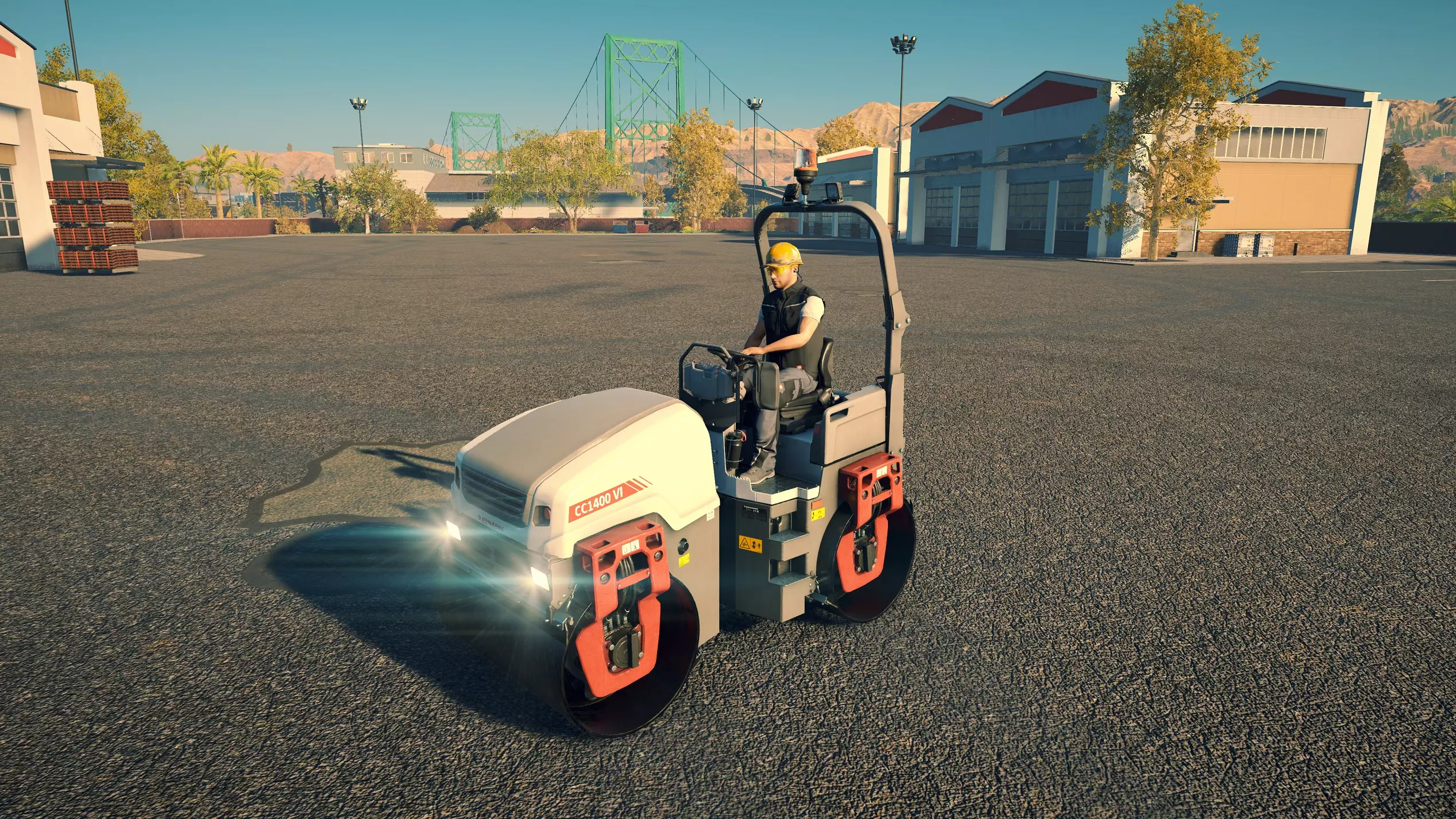 戴纳派克 CC4200VI 购买/租赁 - 105,000美元/2100美元 长度 - 5.06米 宽度 - 2.42米 高度 - 3.38米 压实面积 - 2.4米宽 转弯直径 - 11.5米 最高速度 - 12公里/小时/12公里/小时 加速度 - 9秒内达到12公里/小时 沥青摊铺机 在三一重工扩展包中现有的4台机器里,福格勒作为最便宜的机型,并未过多牺牲性能;但宝马格可以说是最差的,因为它比福格勒更贵,性能却基本相同。卡特彼勒和三一重工的机型是最佳选择,其中三一重工凭借更快的转弯速度,以及能够在所有摊铺机中选择最窄和最宽摊铺范围的多功能性,位居第一。 不过,戴纳派克的机器增加了许多额外选项。F80W速度很慢,料斗容量也极小,但其价格仅为之前机型的四分之一,是早期游戏中一个经济实惠的选择。或许是因为它体型小巧且机动性强,最适合用于为停车场和道路的边缘铺设沥青。此外,它采用轮式驱动而非履带驱动,转向也更加容易。 F1250SC是一款出色的中端选择。以大型机型约40%的价格,你就能获得一台能够胜任小型铺路工作的设备,不过其料斗容量和最高速度仅为那些大型机型的一半多一点,因此频繁的补充材料会有些繁琐。而且,即使将熨平板展开,它的摊铺量也仅相当于大型机型未展开熨平板时的水平。SD2500WS无疑是最出色的摊铺机。与F80W一样,它采用轮式而非履带式设计,因此更容易保持直线行驶。其最高速度和料斗容量也比其他任何摊铺机高出近50%。虽然它每次摊铺量几乎与福格勒(Vögele)相当,在这方面老式机器表现更优,但额外的容量使其非常值得。尽管如此,它的价格却比卡特彼勒(CAT)、宝马格(Bomag)或三一重工(SANY)便宜44,000美元。唯一的缺点是转弯困难,尤其是与可以原地旋转的履带式摊铺机相比。