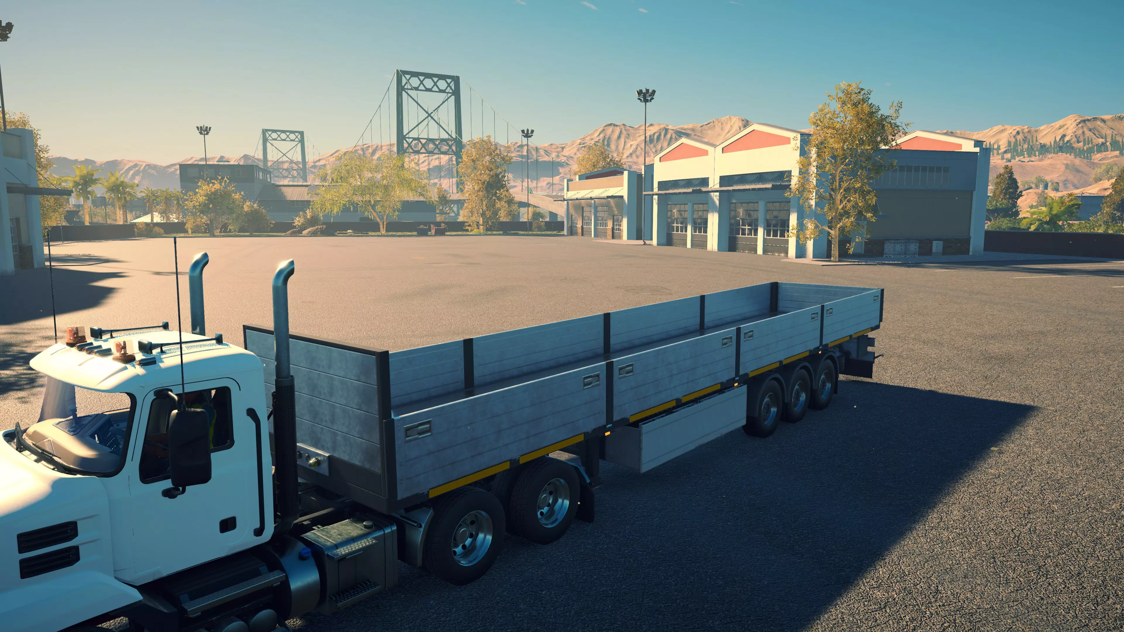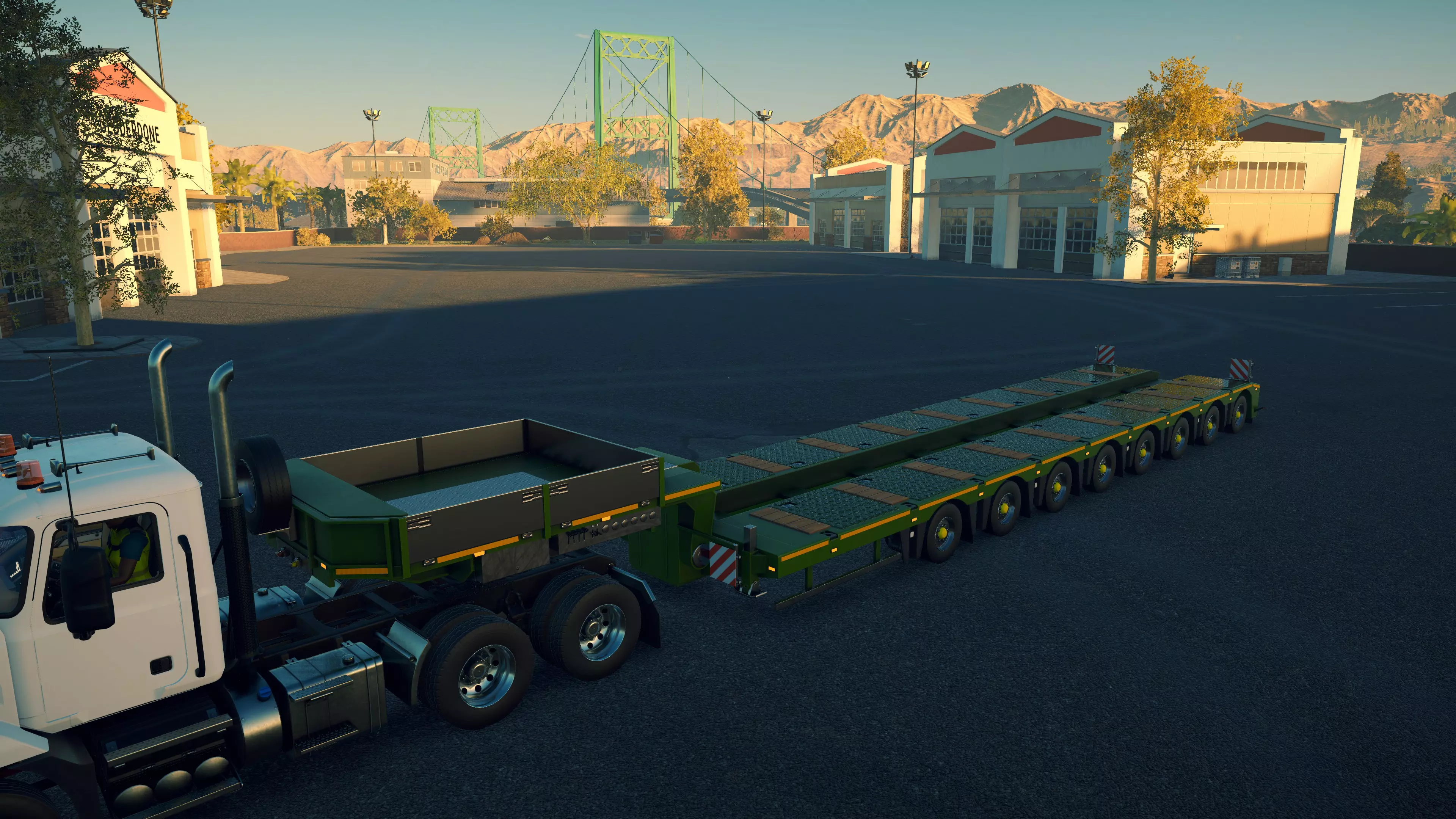 Worldbuilder HS7S 购买/租赁 - 85,000美元/1,700美元 长度/带坡道 - 20.36米/24米 宽度 - 3.92米 高度 - 2.76米 货舱(单位) - 69长/15宽/20高(13.8米/3米/4米) 这款强大的拖车在载货和运输机械的能力方面无可匹敌,85,000美元的价格绝对物有所值。对于你的公司而言,这款拖车以及配备起重机的拖拉机应该是首批购买的设备之一。在主销上方还有一个小区域,可轻松放置一件10单位宽、12单位长的货物(或尺寸总和相同的较小托盘),无需固定。除三一重工SANY SAC4500、SANY SAC1300T2、利勃海尔Liebherr LTM1300、三一重工Sany SRT45外,它几乎可以运输游戏中的所有其他机械和卡车。倾卸式半挂车 由于这些挂车的尺寸几乎完全相同,价格也一样,考虑到MHPS的载货量更为有限,实际上没有理由使用它。