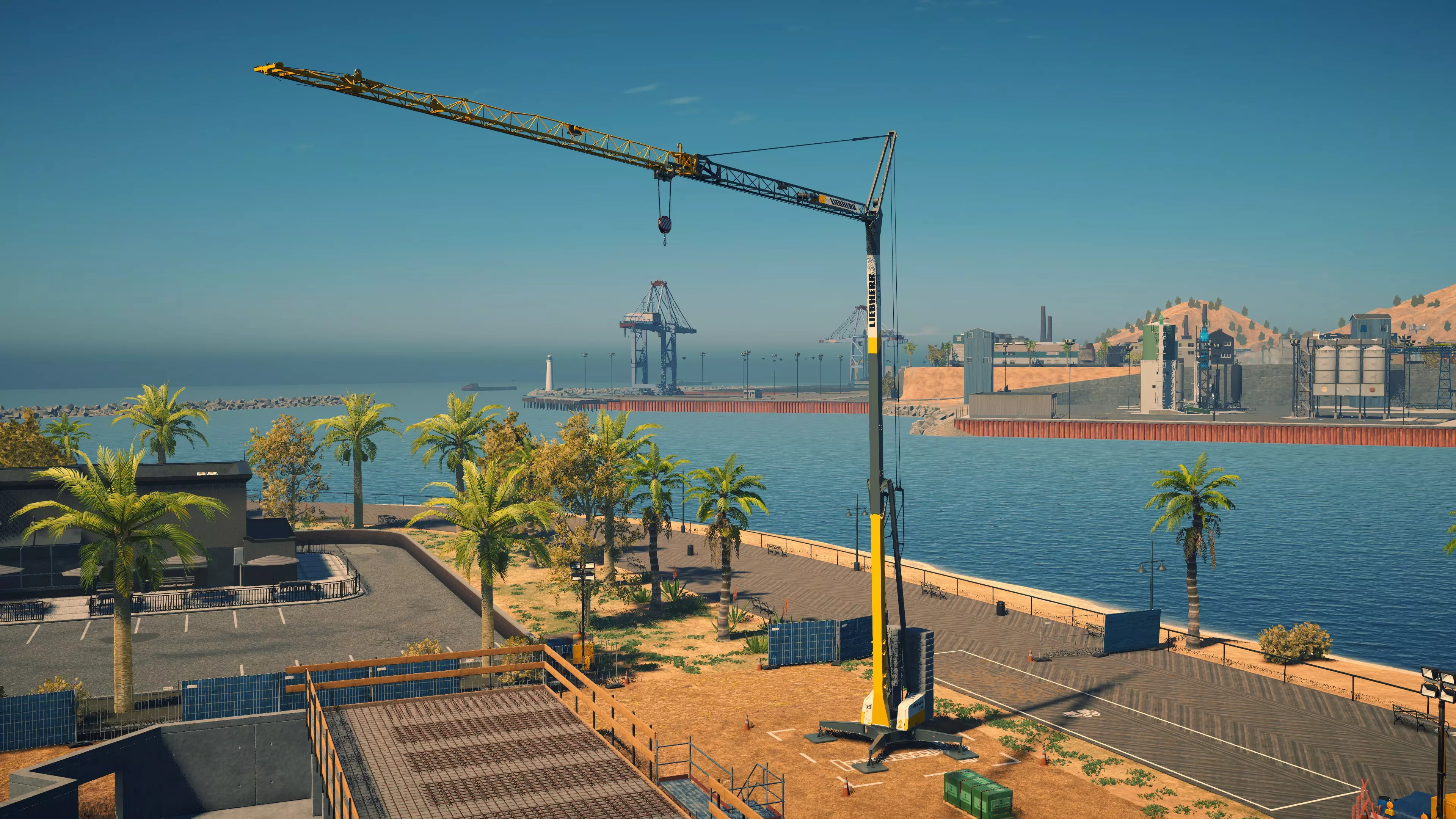 利勃海尔 L1 购买/租赁 - 97,000美元/1940美元 最大吊钩直径 - 27米 最大吊钩高度 - 19米 360度旋转时间 - 18秒 吊钩升降时间 - 8.5秒 小车移动时间 - 13.5秒 起重等级 - B级 该起重机能够完成一些小型合同(如房屋建造)的工作,是游戏中目前最便宜的起重机,适合预算有限的玩家。然而,由于其作业范围非常有限,在许多合同中很快就会显得力不从心。高度方面也有不足,但问题相对较小。