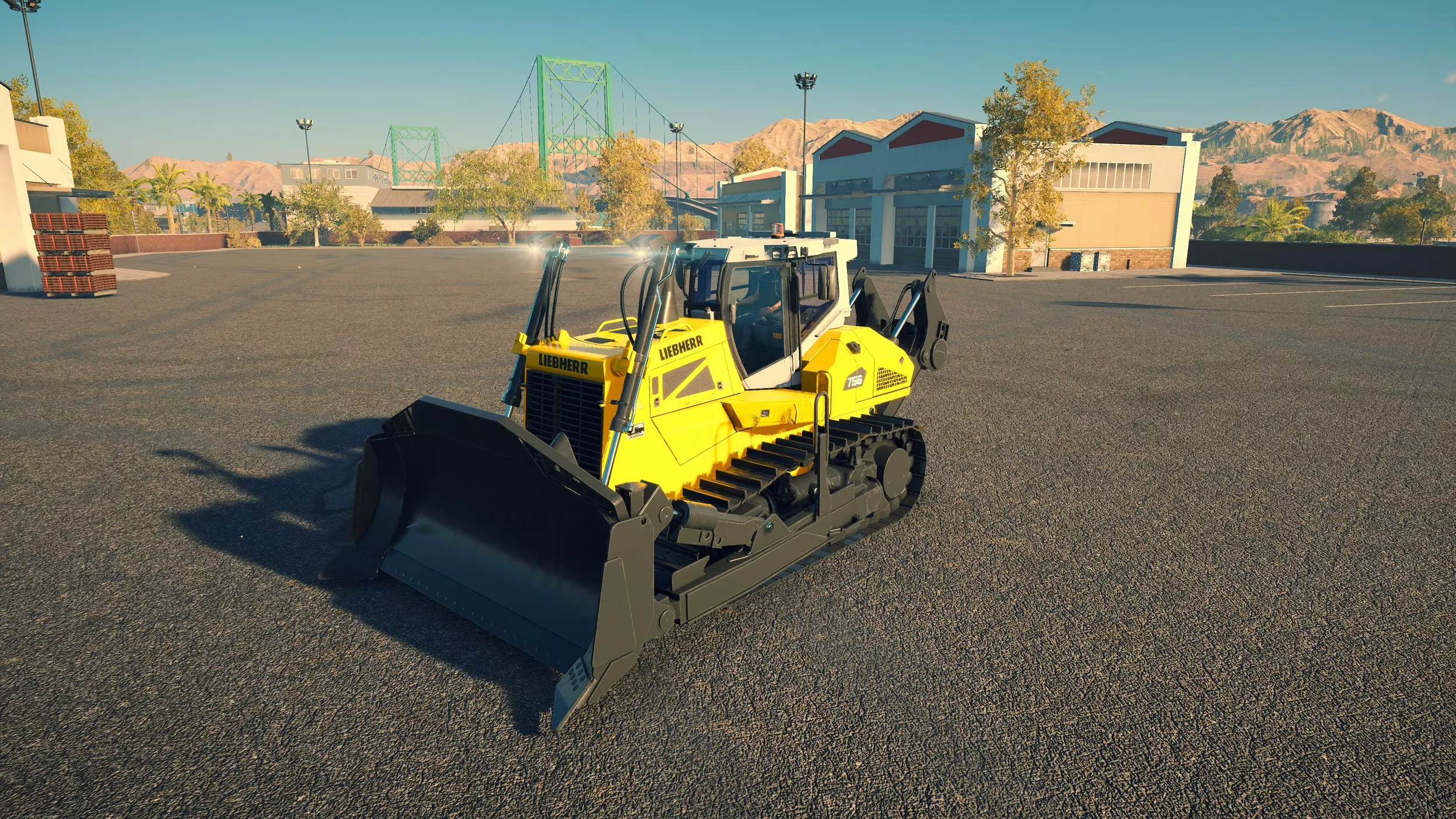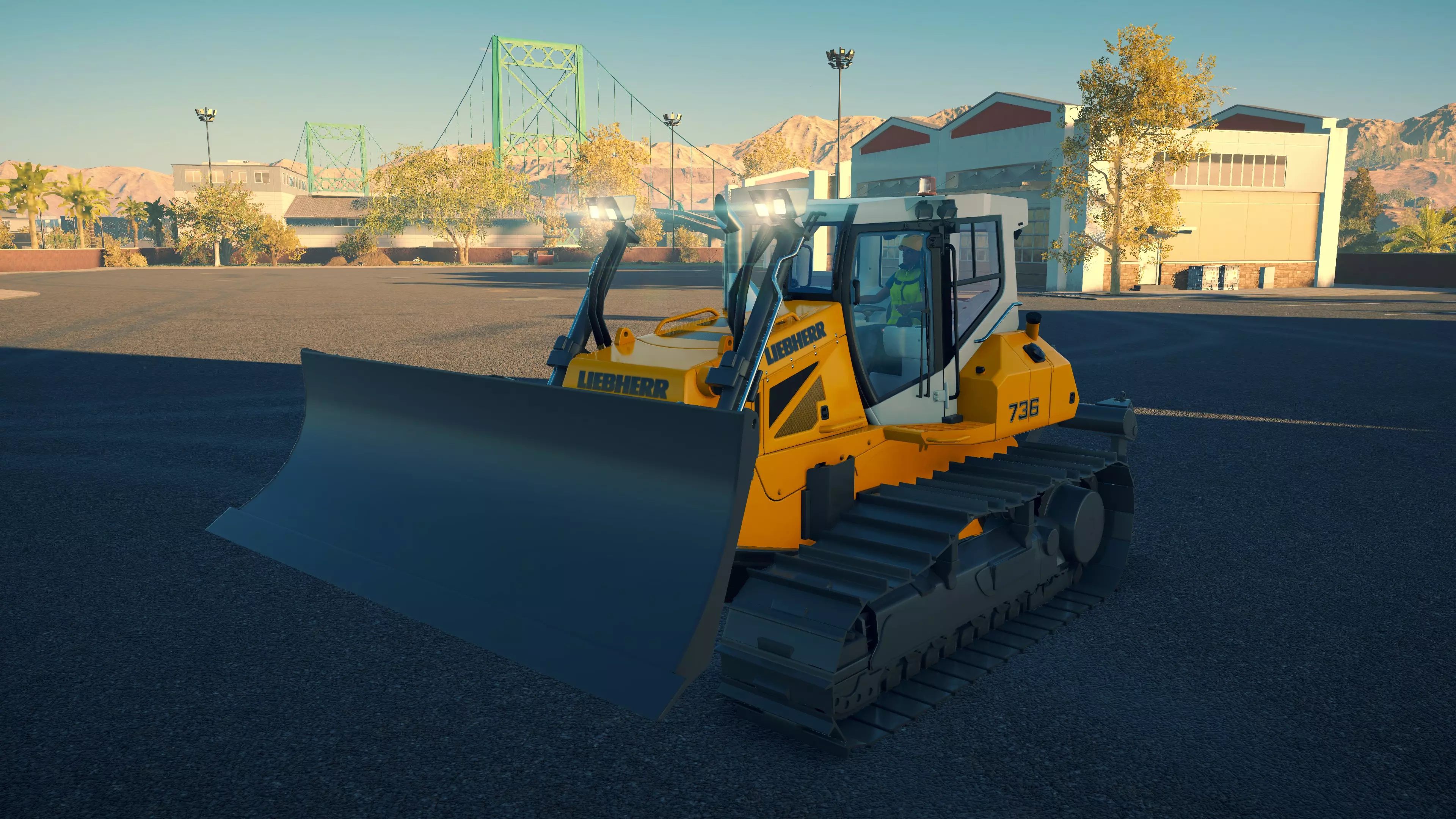 利勃海尔 PR736 购买/租赁 - 245,000美元/4,900美元 长度 - 7.26米 车身宽度/铲刀宽度 - 3.12米/4.06米 高度 - 3.38米 松土器/松土面积 - 3齿,3米宽 转向时间 - 9.4秒 最大速度 - 12公里/小时/12公里/小时 加速度 - 1秒内达到12公里/小时 这是一款用途最广泛的推土机,其铲刀宽度几乎与D8T相当,在平整地面挖掘方面表现接近D8T,同时拥有更强大的松土器,并具备与2050M相同的铲刀侧向倾斜功能。松土器覆盖路径相当宽,但松土彻底程度不及平地机。在施工视图中,它能松土15点(3米)宽的路径,但只有9点会变绿,需要再次作业。此外,它配备了360度工作灯,这是凯斯(Case)和卡特彼勒(CAT)机型所不具备的。