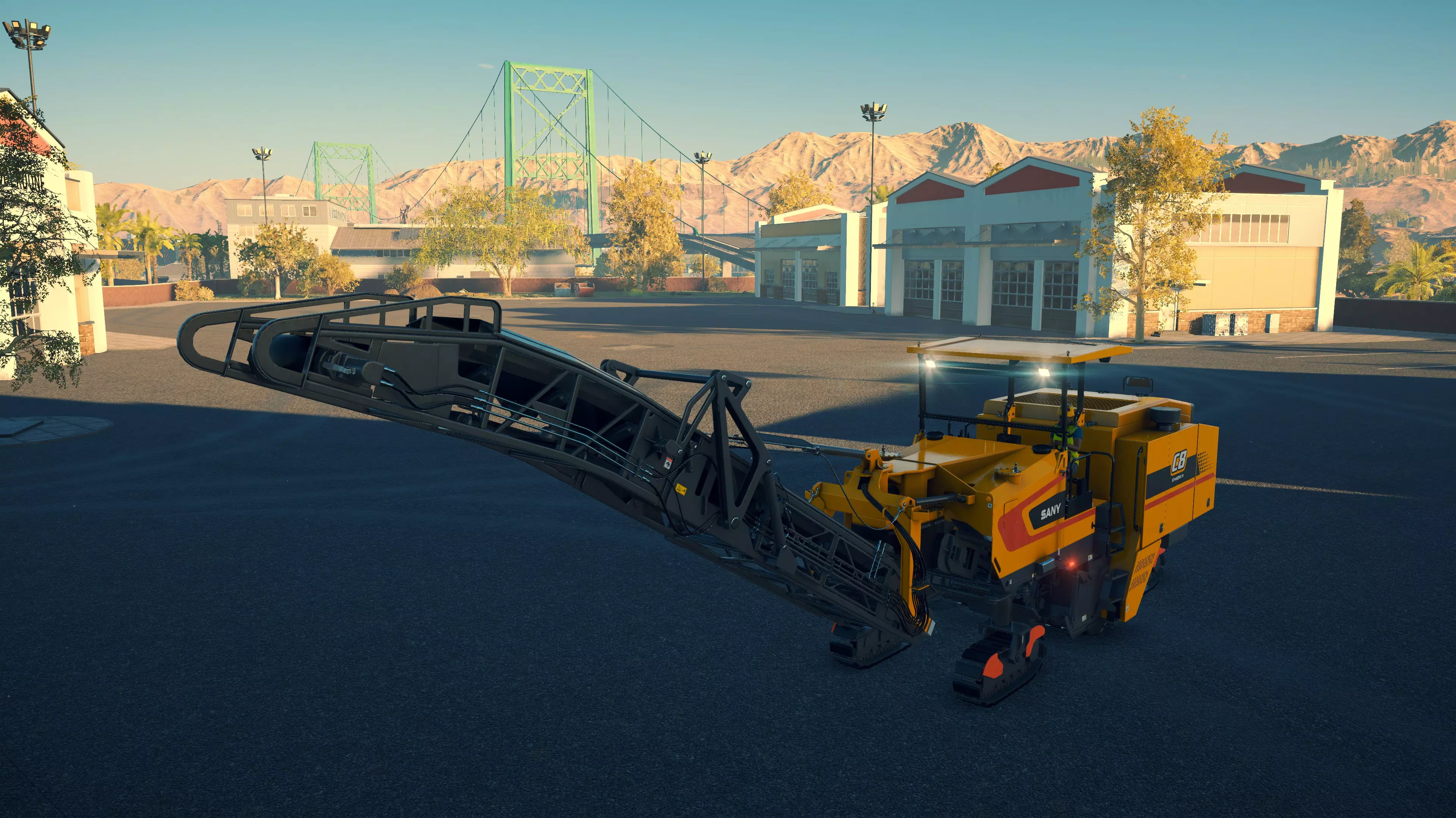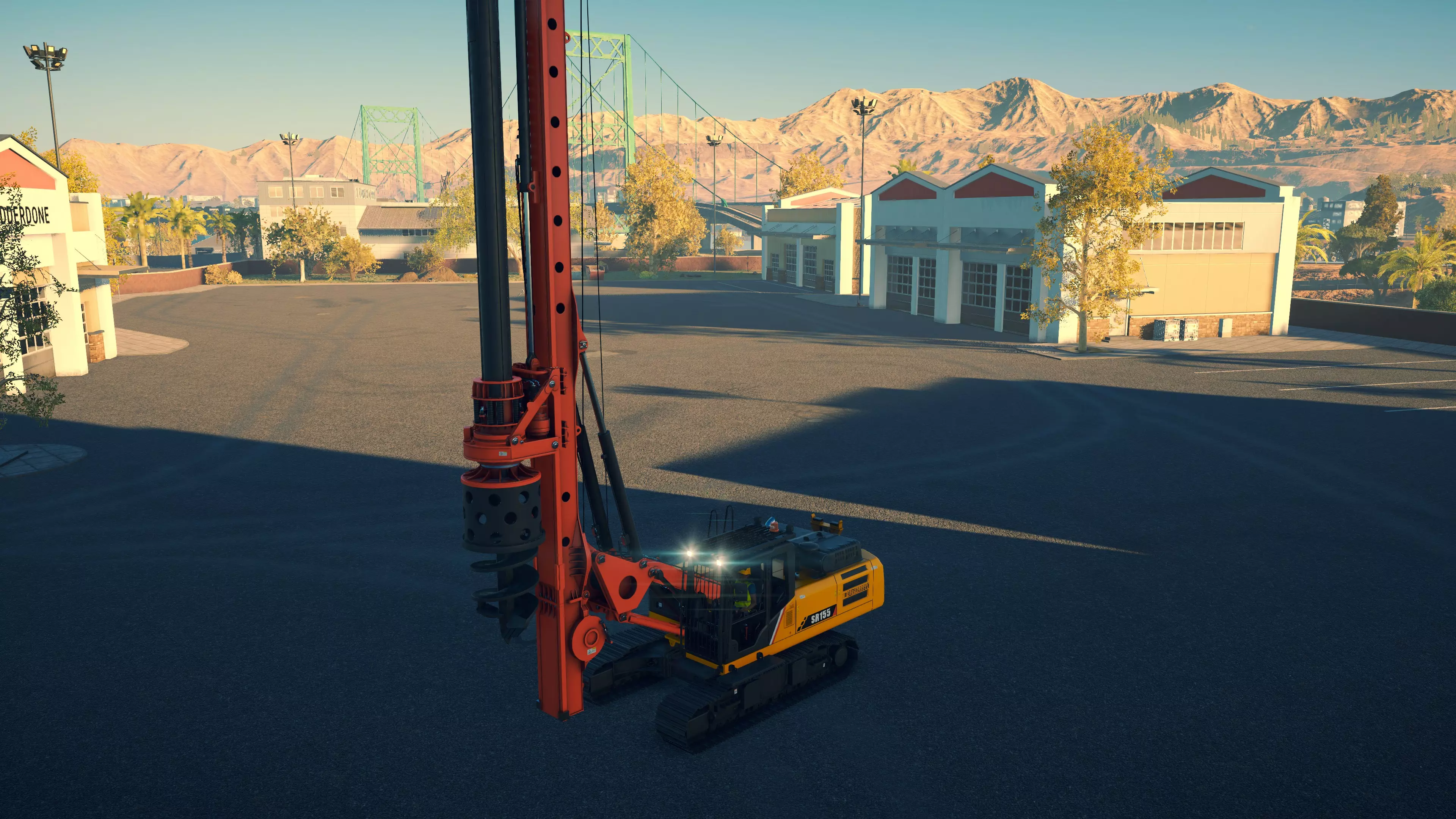 三一重工 SMG200C-8 购买/租赁 - 225,000美元/4,500美元 长度 - 10.78米 车身/刀片宽度 - 2.7米/4.28米 高度 - 3.72米 松土器/松土面积 - 13齿,3.4米宽 转弯直径 - 14米 最高速度 - 46公里/小时/6公里/小时 加速度 - 20/46公里/小时(5/23秒内) 三一重工平地机是平地机中速度最快的,但在接近最高速度时加速度相当缓慢,且松土器性能与其他平地机相同。虽然它曾经比其他平地机具有能将刀片切入表土的优势,但现在这一特性已不再是其独有。目前,它是一款比卡特彼勒(CAT)略便宜、性能略逊一筹的平地机。 随着近期更新中的游戏性改进,所有3款平地机的 gravel 摊铺效果现在都更加出色。刀片可以降至略高于地面的高度,这样就能在不刮走材料的情况下进行摊铺。这使得所有3台平地机在挖掘表土和摊铺 gravel(砾石)时都具备实用性和有效性,其效能大致与其成本相匹配。此前,它们可以说是游戏中最无用的机器,但现在似乎能按预期正常工作了。 旋转钻机 固定在拖车上时,钻机可折叠放平。只要有足够空间,你仍然可以装载其他车辆,而且无需担心钻机超出拖车末端,因为在运输过程中它会变为无形状态。在制作本指南时,我每种钻机都只使用过一次。虽然两款钻机都完全能够完成钻井作业,但我发现使用利勃海尔(Liebherr)时工作速度稍快一些。这部分原因是在使用三一(Sany)尝试作业后,我对操作更加熟悉,但另一部分原因是利勃海尔的钻机可延伸近2.7米,而三一的仅略超过1.5米。这使得在移动管段到位时,你不太需要切换到驾驶模式来重新定位。尽管体型更大,它的转向速度也更快。三一的一个优势在于,由于钻机短得多,管段在起重机上的摆动幅度不会那么大。两者还能够扩展履带宽度(默认按7和8键),推测是为了提升稳定性,不过我不确定该功能在游戏中有多大用处。