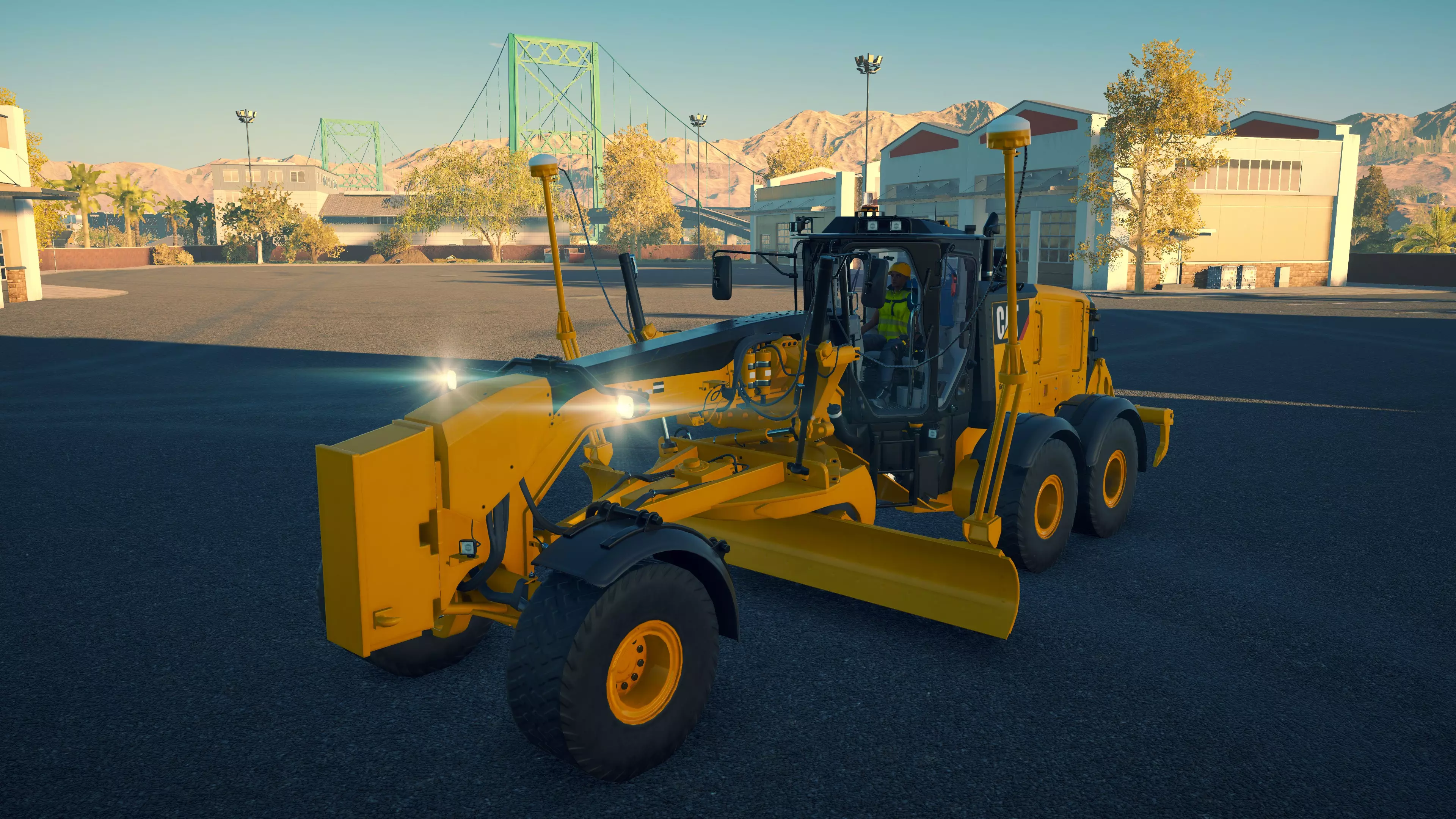 CAT 140M3 购买/租赁 - 250,000美元/5,000美元 长度 - 10.56米 车身/刀片宽度 - 3.06米/4.82米/5.1米(3D GPS引导天线) 高度 - 4.02米 松土器/松土面积 - 5齿,3.4米宽 转弯直径 - 14米 最高速度 - 43公里/小时/6公里/小时 加速度 - 13.8秒内达到43公里/小时 与856C相比,这台平地机基本上是相反的存在。它是体型最大、价格最高且驾驶起来最笨重的平地机,但也是动力最强劲的。其松土器性能与凯斯(Case)平地机相同,且速度更快。由于在最近的更新中刀片现在可以降得更低,所有平地机现在都能有效用于清除表土。由于CAT 140M3拥有最大的刀片,因此在这方面表现最佳,同时在摊铺 gravel 时也非常高效。
