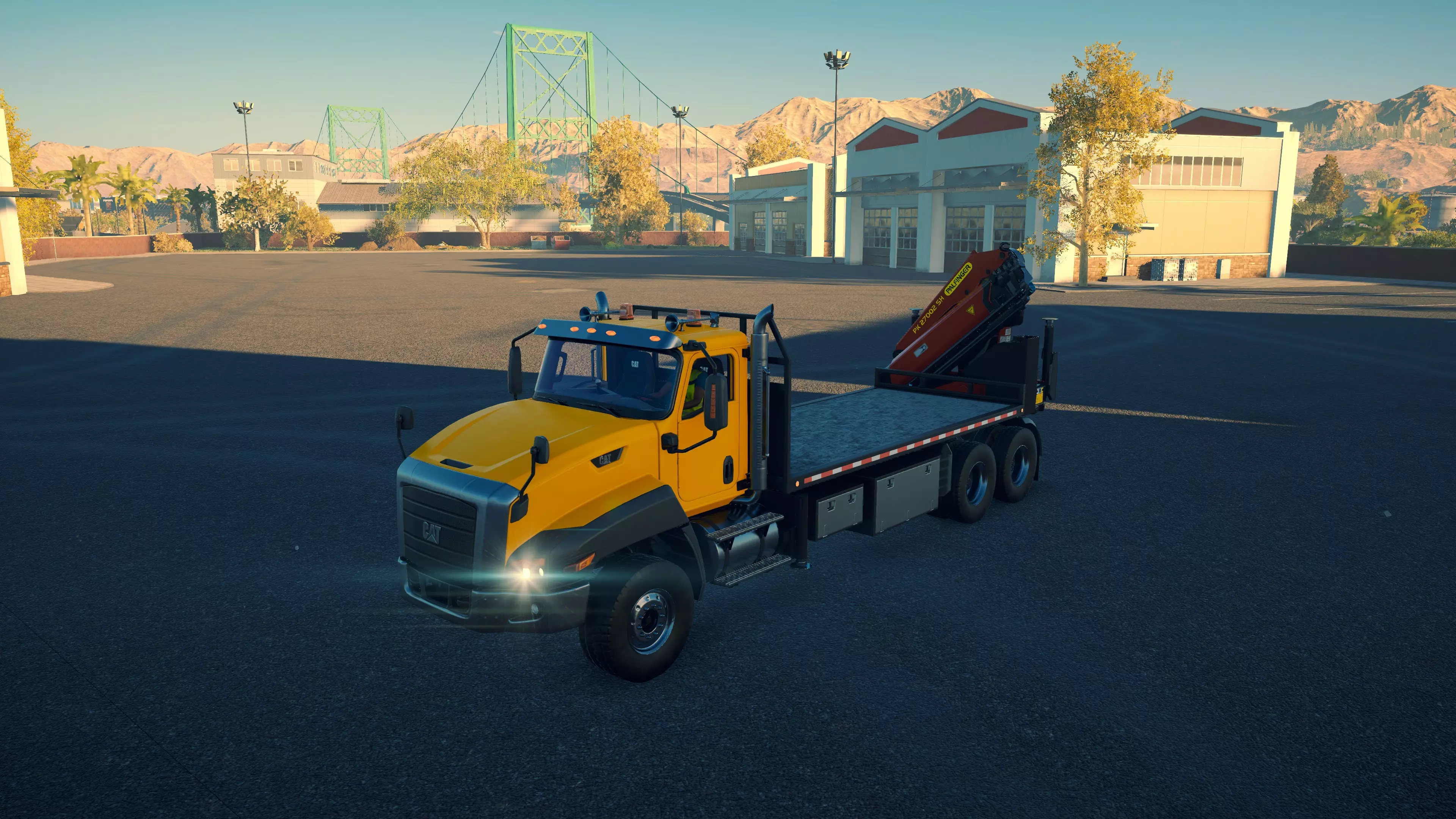 CAT CT660/帕尔芬格 PK 27002 购买/租赁 - 100,000美元/2000美元 长度 - 10.08米 宽度/带支架宽度 - 3.04米/5.36米 高度/带支架高度 - 3.68米/3.72米 转弯直径 - 22米 最高速度 - 90公里/小时/14公里/小时 加速度 - 9.5秒内加速至60公里/小时 货舱(单位) - 24长/10宽/10高(4.8米/2米/2米) 压力测试 - 2分09秒 最大起重机作业半径 - 16米 最大吊钩高度 - 19.5米 360度旋转时间 - 10.5秒 起重机展开/折叠时间 - 10.5秒 起重机伸缩时间 - 13秒 起重等级 - A 在游戏初期是不可或缺的车辆,后期对于不需要拖车的小型运输任务仍然实用。它具有出色的最高速度和加速度,制动性能优于MAN TGS。其主要优势在于更大的装载区域,并且起重机位于卡车后部,能让你充分发挥其最大作业半径;而TGS卡车上的起重机则位于驾驶室和货箱之间,这意味着它作业时总要越过卡车的一部分。不知为何,尽管型号相同,这台起重机的旋转速度也更快。