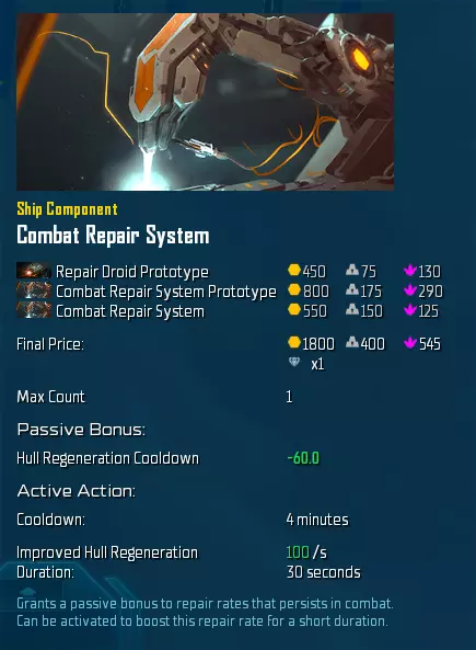 最后,战斗修复系统提供了不错的战斗中船体再生能力。你可以在该系统和额外装甲 plating 之间进行切换。一般经验法则是,如果你有两个空闲模块槽位,优先选择额外装甲 plating;否则,选择战斗修复系统。 泰坦模块(实用型)