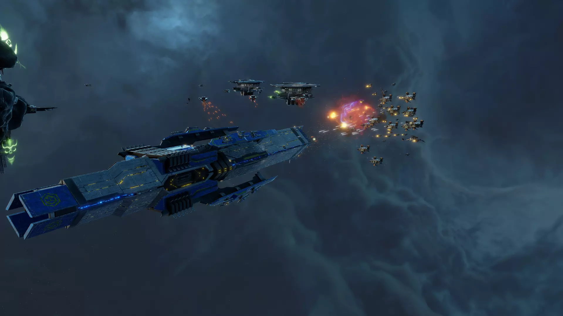 Getting a “War Reporter” on your Ragnarov titan is questionable due to the lack of item slots, but mandatory by TEC law. After all, they're tasked with capturing and chronicling the glorious extermination of Xenos across the galaxy! Strategies With all the praise of the Ragnarov titan you may be tempted to rush it, ignoring other aspects of economy and fleet. However, unless it's some niche situation, you will definitely be required to attend to other matters before you build the titan. That being said, there are two primary upgrade paths for the Ragnarov: You can either transform it into a true nemesis of high-value targets; or adopt a more versatile, jack-of-all-trades approach. Both paths have their merits, but let's be honest, there's something incredibly satisfying about destroying capital ships and titans. Sniper Style If you share this sentiment, you should tailor your titan around the Precision Shot ability. This ability is capable of killing some low-level capital ships from the moment you build the titan; with a few upgrades, it gets even scarier. With this focus, I recommend installing Antimatter Engine even before you get other weapon modules. This way the Ragnarov will be able to deal 15k full Pierce damage in less than 4 minutes at level 1! The range of the ability allows you to besiege your opponent and force him to come out from his defenses. Otherwise, he will lose several capital ships without a single retaliation shot being fired. Should you have time to install more modules before an engagement, I recommend installing the offensive modules highlighted in the section above. With the technology upgrade on rapid autoloader and combining it with the Heavy Gauss Slugs, it will almost triple your titan's damage, providing you excellent DPS against high value targets. Consider installing some defensive modules to increase survivability afterwards, but your real issue will be swarms of smaller ships. For this reason, you will rely on capital ships with AOE abilities like the Marza or Kol. This means you would benefit to start a game run with one of those two, if you are planning on a titan focused playstyle. Alternative would be to get your own swarm of ships. After all, your titan will be able to snipe enemy AOE capital ships easily, securing your fleet from the biggest threat. It is a decent strategy, however, you should be very careful with your titan as the enemy could try to focus fire it while ignoring rest of your fleet. Joker BuildAnother option would be to focus on the Explosive Shot. This makes your titan excel at killing swarms of enemies and decent at killing high-value targets. On paper, it sounds like one titan replaces the entire fleet, but obviously there are drawbacks to this playstyle. By sacrificing the Precision Shot ability, you will lack not just the option to drive the enemy out of his turtle defenses but will also lack the ability to kill high value targets fast enough to prevent enemy AOE capital ships from discharging their abilities into your fleet. As far as your fleet composition goes, given where the Marza/Kol’s AOE abilities fall, they would just duplicate your titan on a smaller scale. At the same time, the utility of a denial capital ship such as the Dunov grows. A Dunov is probably not the best starting capital ship, but since you do not necessarily require a level 6 Dunov, you can build it as your second capital ship later on. Better still, build several Dunovs. The main benefit of this approach is that your titan does not rely on other ships in your fleet against small to medium sized fleets. The main drawback is that your titan does not specialize in what it does best, and it may lead to your defeat in the late game. War Amongst RoguesAs TEC Primacy you have access to the “Truce Amongst Rogues” technology, which strikes a peace deal between you and pirates. Many players love playing TEC Primacy simply to be safe from those raids. However, it is worth sacrificing this alliance, or at least delaying it, if your game plan includes a titan. This is especially beneficial if you go with the Joker Build. Unlike Sins: Rebellion, you will not be able to solo clear the pirate base with the titan, even with the help of Explosive Shot. However, you do not need to; even without any fleet support, your titan will be able to farm level 3 at the pirate base before it needs to retreat. This will give you a head start on the Sniper Style, reducing your weakness to late game fleets.
