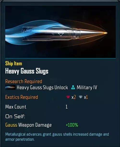 这些并非你唯一需要追求的模块。有争议的是,“重型高斯弹”搭配“快速自动装填器”甚至应该在导弹发射器之前建造。重型高斯弹能使你的高斯炮伤害翻倍,而快速自动装填器则通过减少武器冷却时间进一步提升每秒伤害(DPS)。 注意:你可以研究快速自动装填器的升级版本,这将在该物品激活期间几乎使你的每秒伤害(DPS)翻倍。