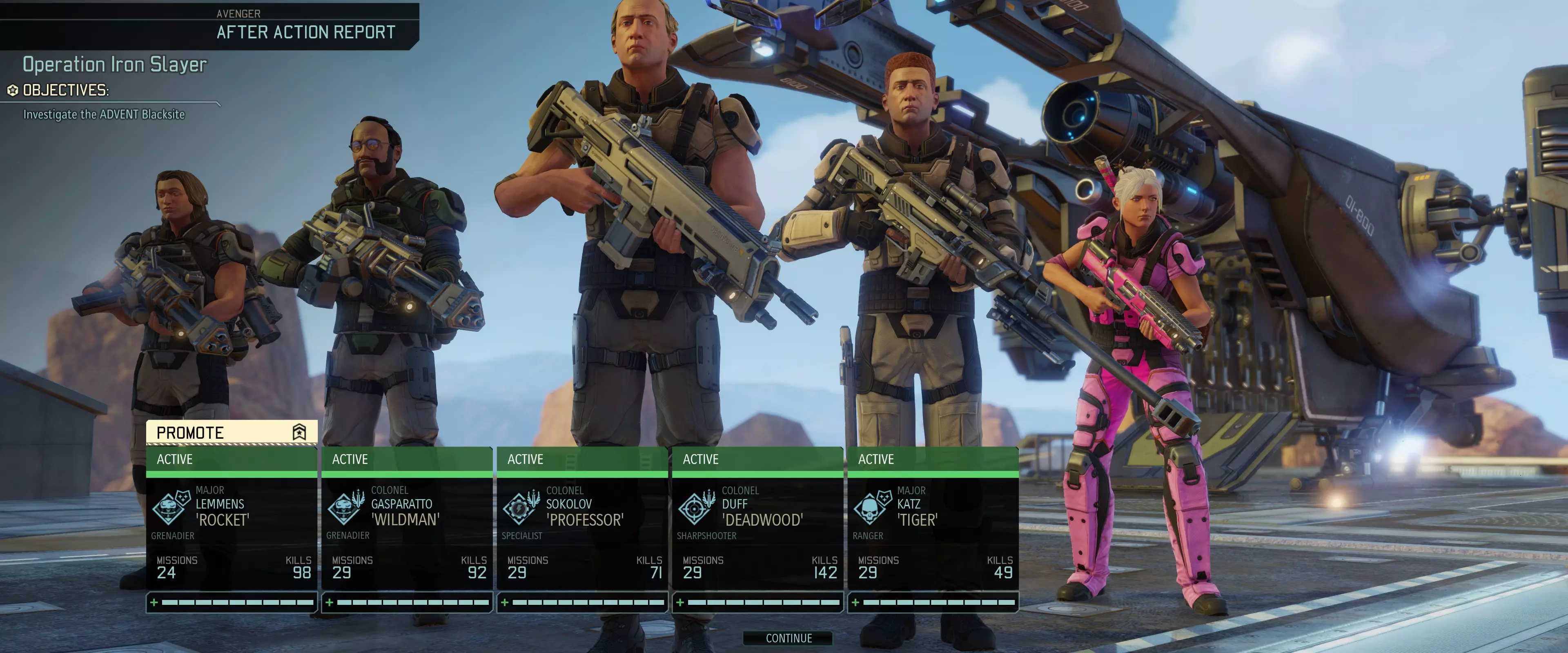 最左侧的掷弹兵在“黑站”开始了他的首次任务,并在第24次任务时晋升为上校。 注:拥有全员晋升的小队后,连续数月的任务将会轻松不少! 多少才足够? 这个问题没有确切答案,因为现在拥有的补给越多,发展速度就越快。