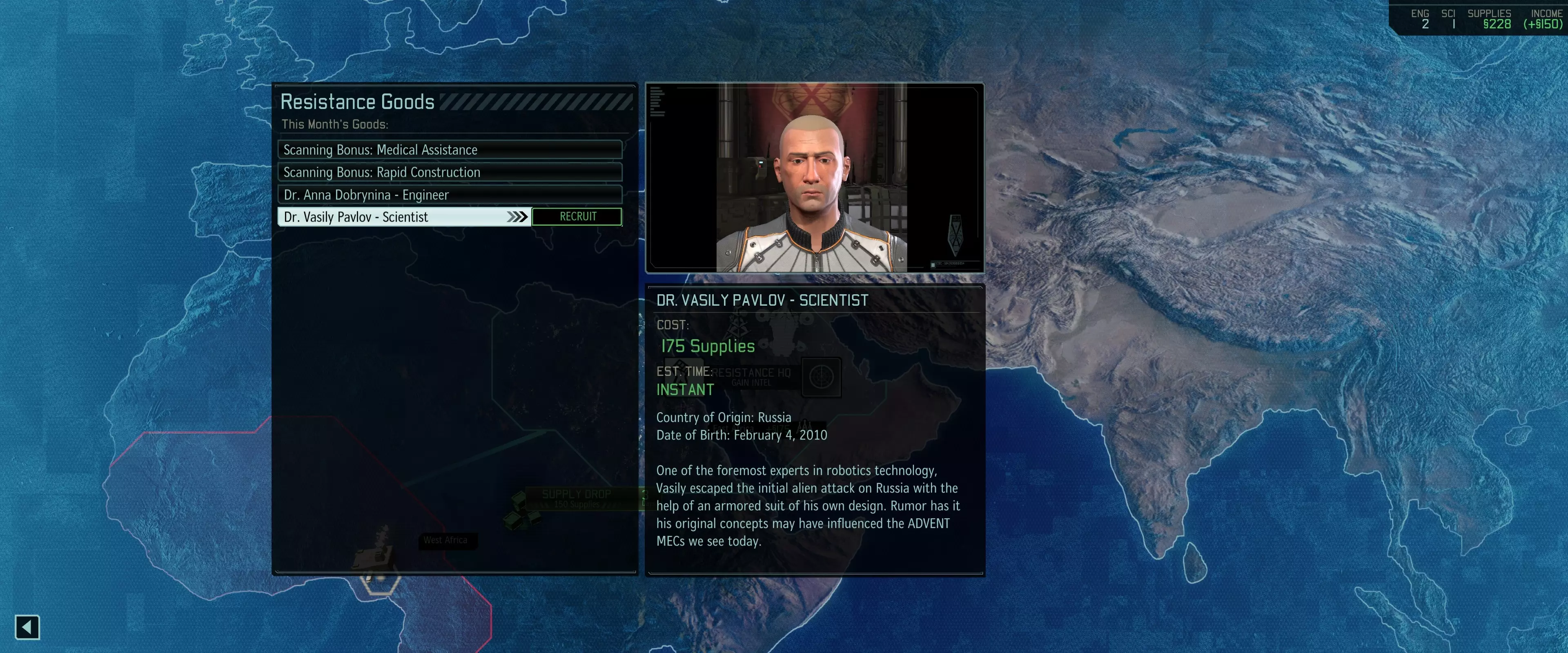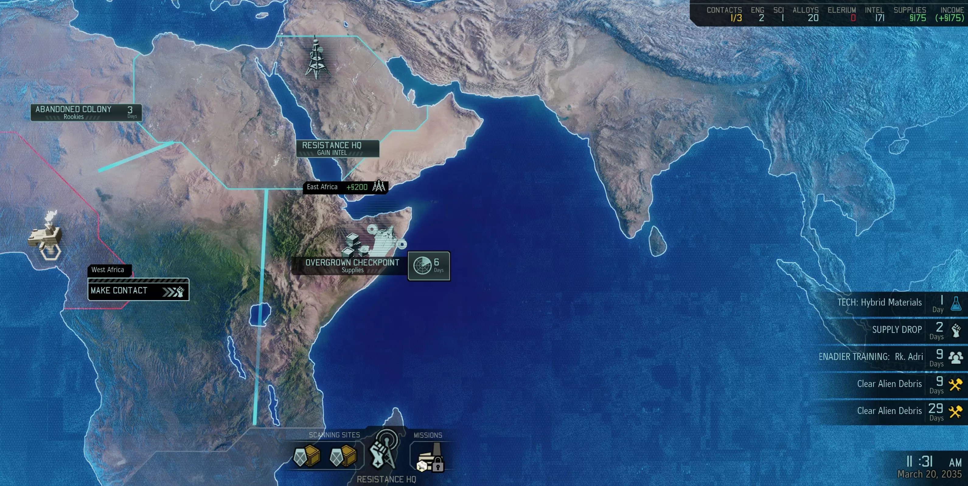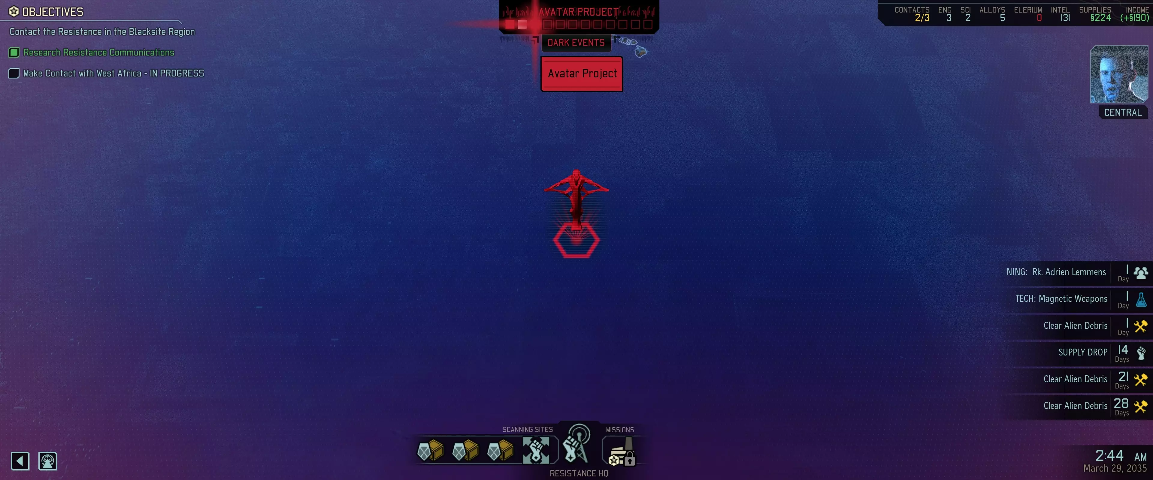 当没有值得扫描的传闻时,开始扫描带有“先锋黑站”的区域。 第一个补给投放 必须重做月度报告,直到报告显示反抗军总部可以招募2名医生。