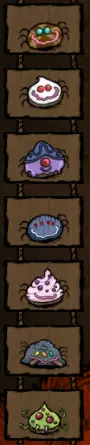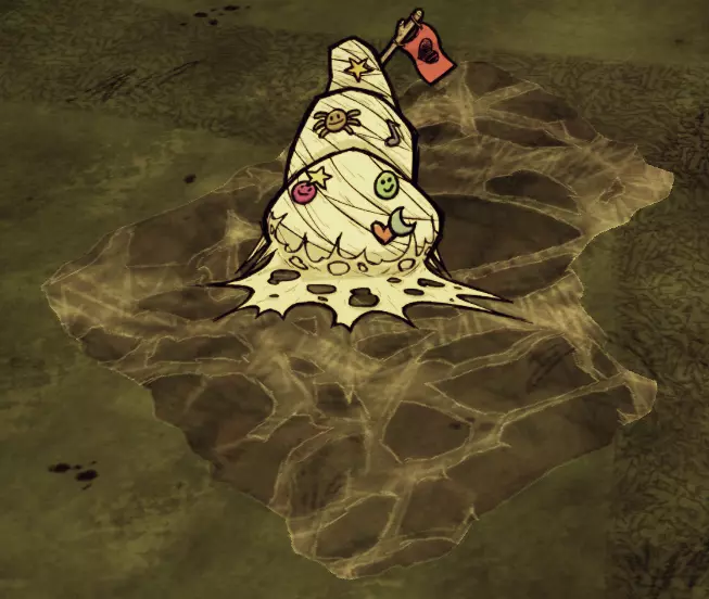 蜘蛛帽能让韦伯(或者其他任何玩家)快速强制最多10只蜘蛛服从自己。这些蜘蛛会听从佩戴者的命令,直到佩戴者摘下帽子,之后它们就会回到之前的状态,无论是吃东西、睡觉,还是因为你不是蜘蛛而攻击你。 蜘蛛帽的快速驯服功能在一些棘手的情况下非常有用。它能让你在猎犬潮来袭前迅速集结一支蜘蛛大军,能让所有角色毫发无损地穿过遗迹,还能帮助韦伯摧毁三级蜘蛛巢——他可以先用口哨召集蜘蛛,戴上蜘蛛帽,然后命令这些蜘蛛毫无反抗地摧毁它们自己的巢穴。如果你想充分发挥蜘蛛帽的作用,那么在下达攻击指令后务必将其取下。一旦选定目标,它们就会持续攻击该目标,即便之后你不佩戴蜘蛛帽也无妨。不过,如果你并非蜘蛛生物,记得之后要把帽子重新戴上。 蜘蛛巢与升级: 好吧,至少它们没在你的口袋里孵化…… 蜘蛛卵是韦伯最好的盟友,清楚了解自己拥有哪些类型的“小怪物”总是没错的。为了方便你参考,以下是相关信息列表。 每个优秀的韦伯都应该知道,你可以通过每级消耗5个丝绸来提前升级普通巢穴。每提升一级,巢穴的生命值就会重置为最大值。你也可以使用剃刀对普通巢穴进行降级,这会返还1份丝绸,并将巢穴的生命值恢复至最大值。 巢穴无法自然恢复生命值。 记住,你可以随时使用韦伯哨子召唤所有蜘蛛离开它们的巢穴,无论巢穴类型、时间或你的星座如何。 部分巢穴类型为石制。它们没有固定的生命值,只能用镐子破坏。 每个等级的成长需要5-10天,否则全额退款: 等级1: 250点生命值 包含: -3只普通蜘蛛 破坏时将获得2份丝绸(若使用剃刀破坏,则可获得3份)。