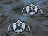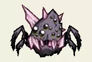 破碎蜘蛛: 越过海岸,踏上月之大地…… 水晶之牙将造就水晶之尸。 250点生命值 撕咬伤害:25点 可猛击地面,在范围内爆发3-7根水晶尖刺,每根造成10点伤害。 战斗用途: 破碎蜘蛛是任何军队的得力干将,尤其当你面对的敌人能够召唤小型敌人时。若有足够目标,它们的猛击攻击可一次性造成高达70点伤害,且基础撕咬伤害略有提升。请注意,与战士或穴居者相比,它们的生命值相当低。 其他要点: 破碎蜘蛛的仇恨范围比其他变种大得多,这与其猛击攻击相得益彰。如果你不是韦伯,请务必避开它们,除非你想与之为敌。另外,破碎蜘蛛不适合用来刷蜘蛛。所以,别费劲去刷它们了。 推荐帽子: 根据你的情况,几乎任何帽子都可以。盔甲是个不错的选择,但由于它们经常远程攻击,所以在对付较弱的敌人时,你可以给它们戴上矿工帽。