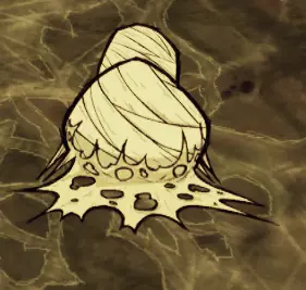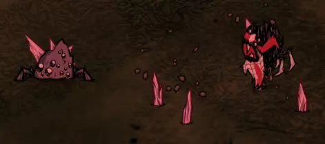 破碎蜘蛛巢穴: 石质形态(8次攻击) 包含: -4只破碎蜘蛛 破坏后将获得1块岩石、1个月之碎片、1-2份丝绸、1-2块月岩,并有1/4概率掉落蜘蛛腺体。 该巢穴只能用镐子破坏,需要8次攻击才能摧毁。 巢穴周围还有大量的蠕行菌,与破碎蜘蛛的猛击攻击配合默契。小心脚下!