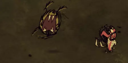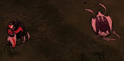 悬荡深渊居民: 它们在天花板上游荡…… 生命值:400 是否能击晕锁定:否 可以从远距离快速向目标跳跃。 战争用途: 如前所述,深渊居民只是战士的替代品。它们同样强大,你的军队中拥有相当数量的两者都能正常运作,但要记住,制作它们的配方需要兔子绒毛,这在游戏初期可能成本相当高。 其他要点: 记住,尽管它们的巢穴在天花板上,韦伯仍可以用蛛丝口哨召唤深渊居民。它们的巢穴通常无法移动(除了在普通《饥荒》中,你可以通过在蛛网中央燃烧物体来移除它),因此这些区域对队友来说往往始终是危险的。推荐帽子: 护甲对居民很有用,原因与战士相同。