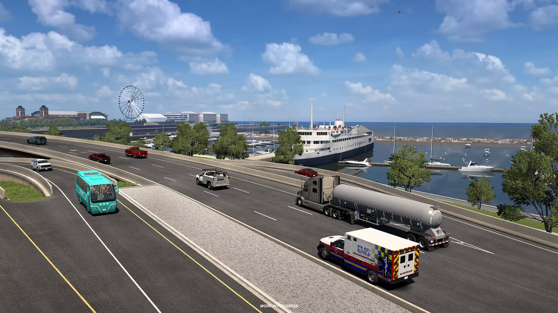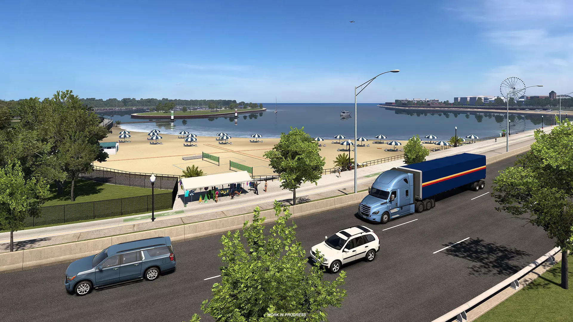 今天,我们想与大家分享一些你将在即将推出的《美国卡车模拟》伊利诺伊州DLC中能够探索到的湖泊、河流及其他水体。从芝加哥充满都市气息的湖畔风光,到更南端宁静的湿地与水库,伊利诺伊州拥有着令人惊喜的多样化水道,我们的地图设计师们已对其进行了重现。让我们一起来看看其中的一部分吧!