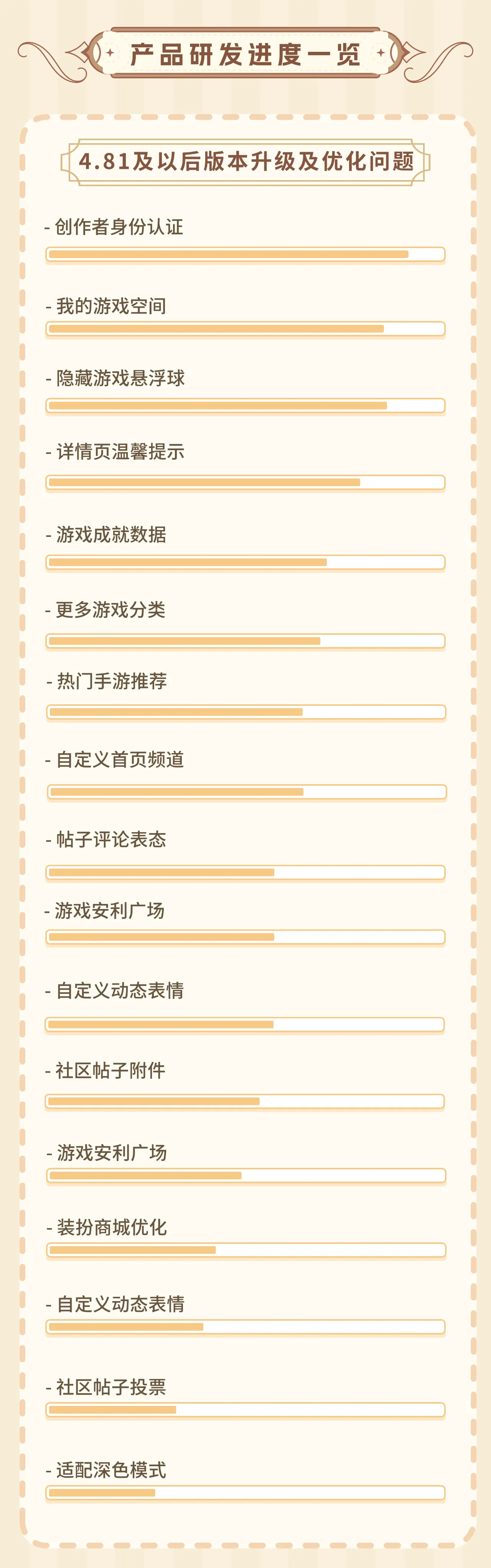 产品研发进度一览