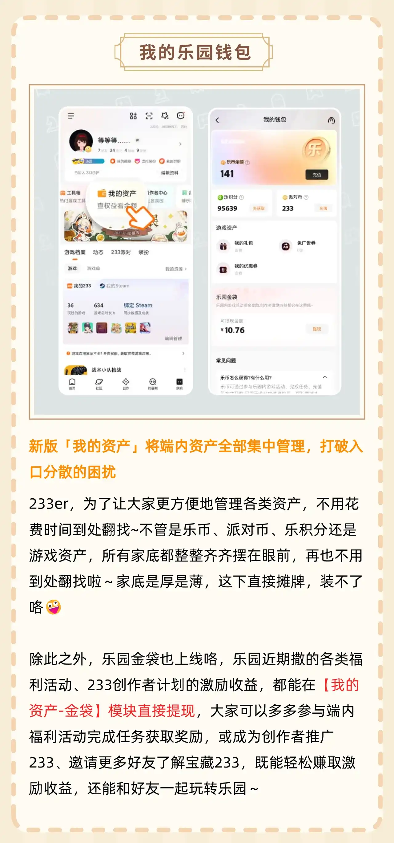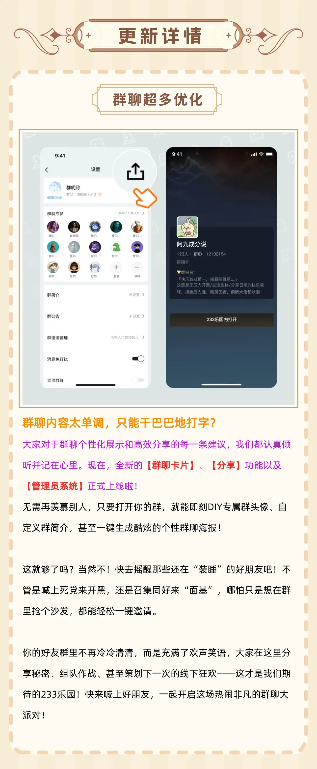 233乐园推出4.80版本更新,仅支持4.69及以上版本升级,升级路径为【我的】-【检查更新】。本次更新涵盖群聊优化、创作者粉丝团、我的乐园钱包、游戏工具小组件、搜索中间页优化等内容,还同步开启新年福利活动,用户可在评论区反馈建议参与抽奖。