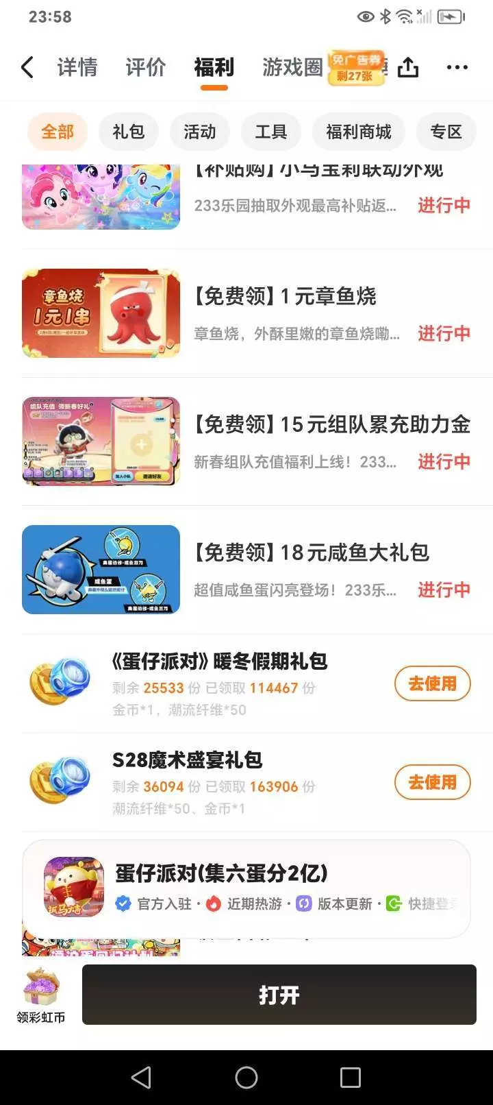 233乐园里有好多福利已经领到了咸鱼蛋礼包和免费改名卡