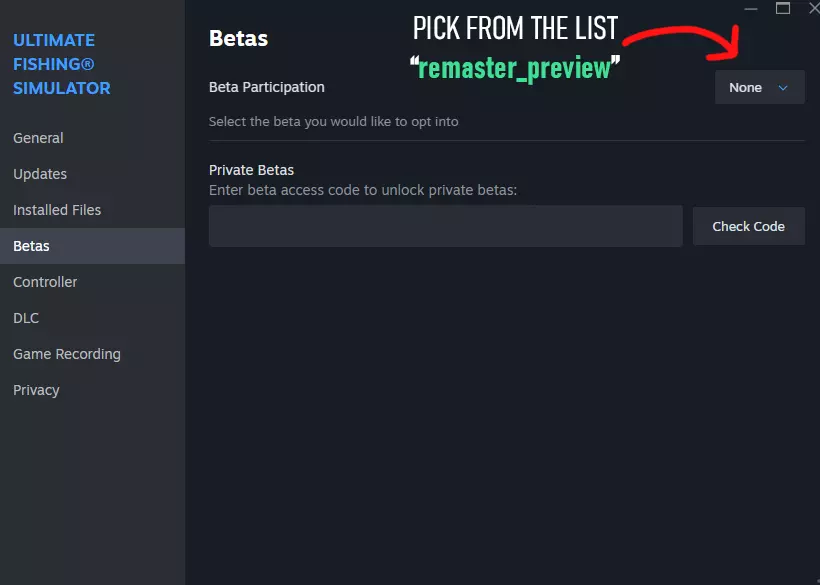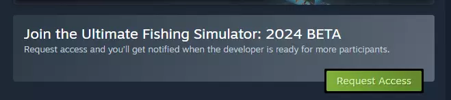 新水下体验 说到水下内容,我们新增了相机控制功能。按住左Ctrl键,现在可以自由旋转水下相机,使用滚轮还能放大或缩小。试试看,告诉我们你的感受。 未来规划 第一阶段仅仅是个开始。在大家的帮助和反馈下,我们将逐步致力于改进游戏的各个部分。感谢你参与这段旅程! 此致 Ultimate Fishing团队 游戏方式 测试版有两种获取途径。测试将持续两周! 如果你不确定测试版代码,建议通过PlayTest应用进行游戏。 途径一:通过Steam Playtests