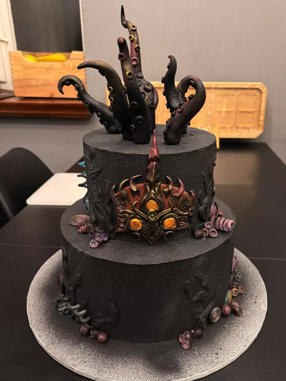现在是时候享用我们的主题发布蛋糕了。触手是100%可食用的!