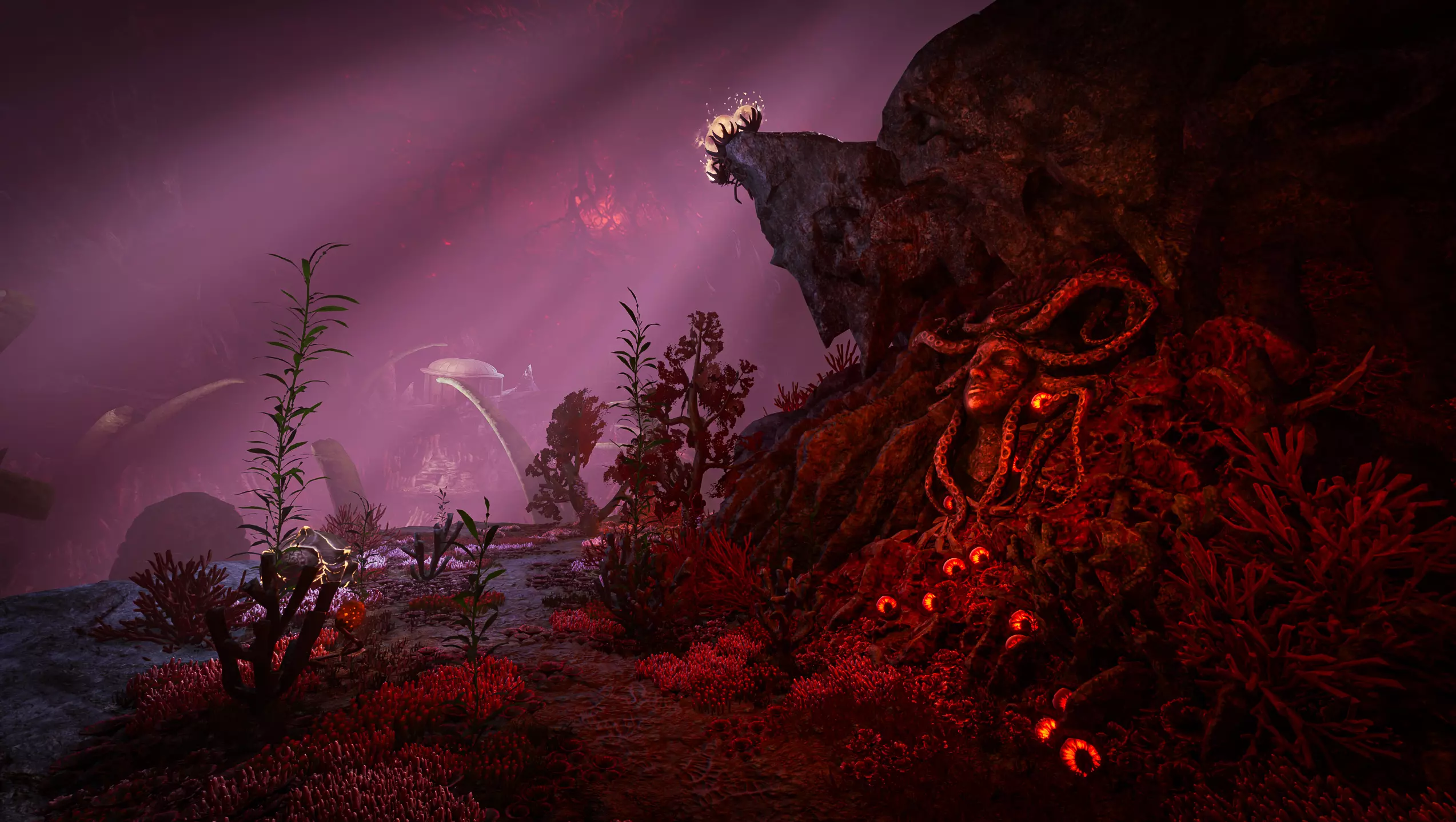 如果你从未听说过萨拉斯圣所,它是《染血圣杯:阿瓦隆的陨落》的首个大型扩展包,包含全新剧情、可探索的新区域以及10-15小时的全新内容! 你将进入这个以深海为背景的同名圣所,这里遍布古老建筑与海洋生物。追寻妮妙和那些反抗亚瑟王的逃兵的踪迹,揭开他们失踪以及梅林可怕报复背后的真相。 该扩展包带来了诸多新内容,包括4场首领战、12种普通敌人、超过20个地下城与室内场景,以及100多件物品,涵盖 armor(盔甲)、melee weapons(近战武器)、bows(弓)、rings(戒指)、amulets(护身符)、spells(法术)、relics(遗物)等。仔细探索,将它们全部收集吧!为了践行我们最神圣的传统,一起来欣赏一批全新的《萨拉斯圣所》截图吧!