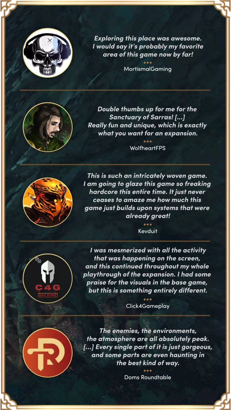 还有什么好说的呢! 我们祝愿你在神秘的萨拉斯圣所之旅愉快,一帆风顺!装备上你最喜欢的 gear(但要准备好获取大量新装备),今天就开始冒险吧!有很多东西等着你去发现! 同时,我们仍会高度警惕任何可能出现的漏洞,并尽快修复,同时对游戏进行必要的改进。请继续提供反馈。 给主机玩家的重要消息! 最后,我们有个好消息要告诉 Xbox 和 PlayStation 玩家:通过今天的更新,我们成功显著降低了两款主机上的崩溃频率。我们还在致力于另一项修复,该修复将略微提升主机平台的帧率,有望在1月份准备就绪! 祝好,感谢大家的陪伴! Awaken Realms / Questline