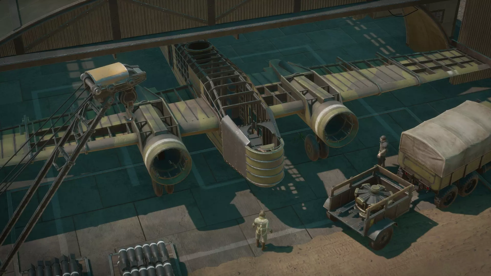 地勤人员操作 地勤人员必须在飞行架次间隙为受损飞机重新装弹和维修。地勤与空中玩家之间的协作对于保持空军持续作战至关重要。
