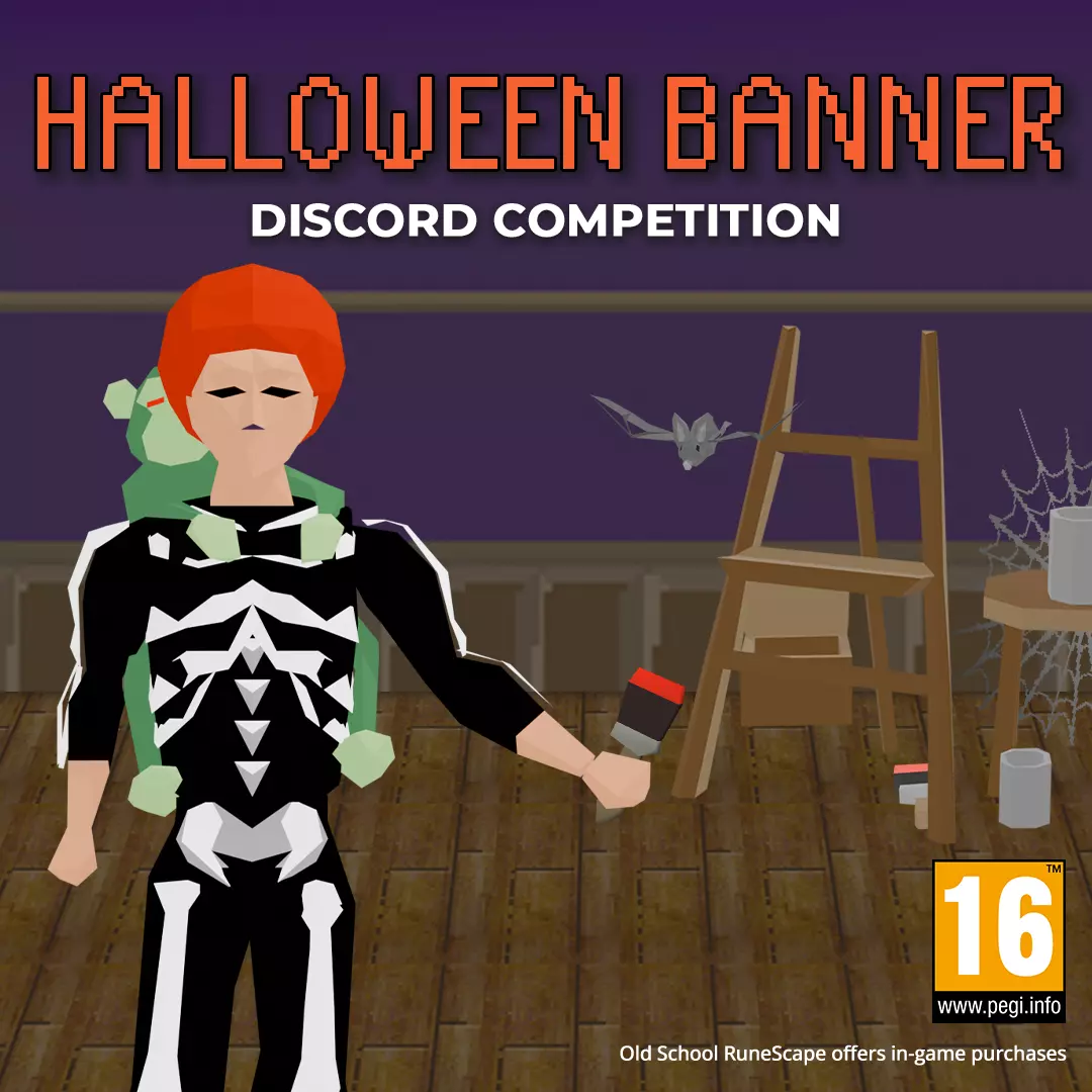 如果你看不到上面的图片,请点击这里! 各位有艺术细胞的《旧 School RuneScape》玩家,这次来磨练一下现实生活中的技能吧:绘制一幅以万圣节为主题、带有《旧 School RuneScape》风格的 Discord 横幅,并将其发布到我们 Discord 的#halloween-banner 频道。如果你成功入选,你将: - 你的横幅将在我们的官方 Discord 上展示至 11 月 1 日! - 获得 3 个月的《旧 School RuneScape》会员资格。