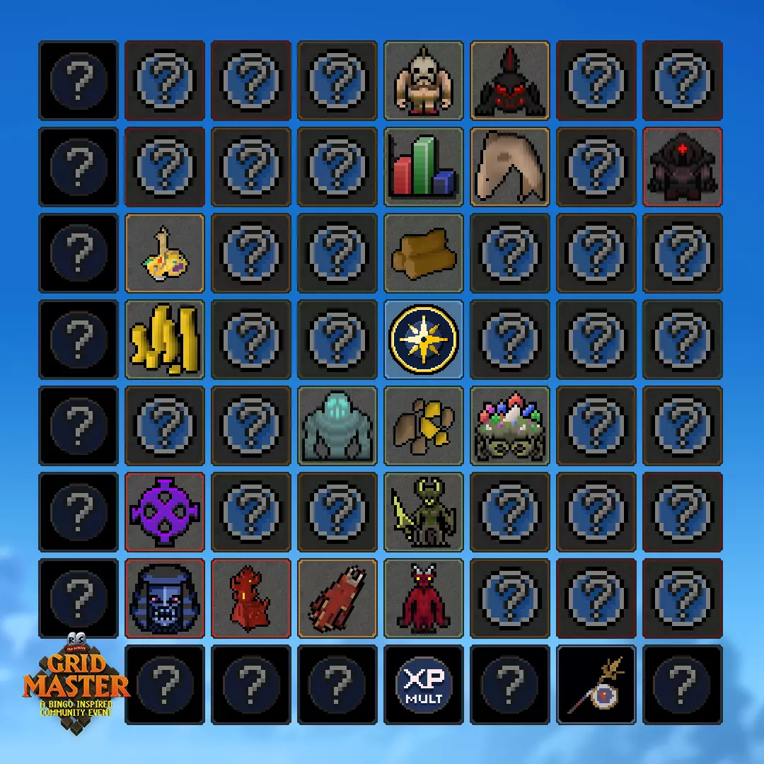 Old School’s first community event is here: Grid Master awaits! Dive in, climb the ranks, but don't forget to stop by Lumbridge for some Halloween antics with Fred the Farmer! [expand type=show more] Changelog Grid Master Grid Master is here! Start your journey off by selecting one of the worlds marked in green on the World Select page! Halloween The Halloween event has arrived. Speak to Fred the Farmer by visiting his farmhouse, located northwest of Lumbridge, to get started! Client & Mobile We’ve smoothed out visual flickering and layering issues on the new renderer beta across several areas and NPCs, including Darkmeyer, Slepe, the Desert, and more. Other Changes Fixed an issue where Bloodveld and Nechryael tasks could be assigned without completing Priest in Peril. Fixed an issue where Partner slayer didn’t properly respect quest requirements - it should now work as intended. Fixed an issue where Dragon tasks incorrectly required full completion of Dragon slayer - they now only require it to be started. Players can once again pick up food from the floor in free to play worlds and the Bounty hunter crater - these areas were unintentionally affected by recent wilderness changes. Using the new hat retrieval menu on Rantz will now add the hats to the collection log. Any hats collected through this menu over the past few weeks will be added to the collection log and trigger any achievement diary task completion on login. Order has been restored to the spelling of 'Chaos fanatic' in the rune pouch load-out menu. The world map hotkey tooltip has been mildly shortened and will no longer show if you've toggled it off. Looting the Moon chest from now on will no longer attribute the loot to Tormented demons. Grammar corrections have been made to Ava's and Azzanadra's dialogue. PvP Rota The PvP rota has moved to Period B 560 - (UK) - PvP World 319 - (US) - Bounty Hunter World 579 - (US) - High-Risk PvP World 561 - (UK) - Free-to-Play PvP World 580 - (US) - LMS Competitive World 390 (AUS) for LMS Competitive has been de-activated with this rota. World 569 (AUS) for Bounty Hunter has been de-activated with this rota. The PvP Arena is using 'Max/Med' loadouts in Ranked Duels and Tournaments this week. [/expand] Grid Master Today's the day for Grid Master's launch, Old School RuneScape's very first community event! Keep an eye on the Get Ready For Grid Master! newspost, as there might be some more small teasers coming before launch! If you're looking for our launch plan times, we've got them right here: [table] [tr] [th][/th] [th]Timer Begins[/th] [th]Worlds Down[/th] [th]Worlds Up[/th] [th]Grid Master Live[/th] [/tr] [tr] [td]Universal (UTC)[/td] [td]8:45am[/td] [td]9:30am[/td] [td]10am[/td] [td]11am[/td] [/tr] [tr] [td]UK (BST)[/td] [td]9:45am[/td] [td]10:30am[/td] [td]11am[/td] [td]12pm[/td] [/tr] [tr] [td]US East (ET)[/td] [td]4:45am[/td] [td]5:30am[/td] [td]6am[/td] [td]7am[/td] [/tr] [tr] [td]US West (PT)[/td] [td]1:45am[/td] [td]2:30am[/td] [td]3am[/td] [td]4am[/td] [/tr] [tr] [td]Australia (AET)[/td] [td]7:45pm[/td] [td]8:30pm[/td] [td]9pm[/td] [td]10pm[/td] [/tr] [/table] To start your journey off both members and free-to-play players will have access to begin Grid Master by selecting one of the worlds marked in green on the World Select page. There will be 121 worlds total which will include: [table] [tr] [th][/th] [th]EU[/th] [th]UK[/th] [th]US East[/th] [th]US West[/th] [th]Australia[/th] [/tr] [tr] [th]F2P[/th] [td]456, 455[/td] [td]498, 499[/td] [td]417, 648[/td] [td]436, 437[/td] [td]537, 691[/td] [/tr] [tr] [th]Members[/th] [td]335, 384, 397, 399, 451, 452, 453, 454, 677, 678[/td] [td]380, 382, 661, 662, 663, 664, 665, 666, 667, 623[/td] [td]629, 630, 631, 632, 633, 634, 635, 636, 637, 638, 618, 617, 616, 615, 614, 613, 612, 611, 610, 609, 575, 574, 490, 489, 488[/td] [td]418, 430, 431, 433, 435, 650, 651, 608, 607, 606, 605, 604, 603, 602, 601, 600, 599, 547, 546, 545, 544, 543, 542, 541, 538[/td] [td]591[/td] [/tr] [tr] [th]Gemstone Crab[/th] [td]686[/td] [td]675[/td] [td]647[/td] [td]659[/td] [td]690[/td] [/tr] [tr] [th]Yama[/th] [td]685[/td] [td]674[/td] [td]645[/td] [td]658[/td] [td]689[/td] [/tr] [tr] [th]Hueycoatl[/th] [td]684[/td] [td]673[/td] [td]644[/td] [td]657[/td] [td]688[/td] [/tr] [tr] [th]Ent Totems[/th] [td]683[/td] [td]672[/td] [td]643[/td] [td]656[/td] [td]687[/td] [/tr] [tr] [th]Raids[/th] [td]682[/td] [td]671[/td] [td]642[/td] [td]655[/td] [td]595[/td] [/tr] [tr] [th]Blast Furnace[/th] [td]681[/td] [td]670[/td] [td]641[/td] [td]654[/td] [td]594[/td] [/tr] [tr] [th]Skilling Bosses[/th] [td]680[/td] [td]669[/td] [td]640[/td] [td]653[/td] [td]593[/td] [/tr] [tr] [th]Forestry[/th] [td]679[/td] [td]668[/td] [td]639[/td] [td]652[/td] [td]592[/td] [/tr] [/table] If you need a quick refresher on what Grid Master is and how to play, then check out the fantastic video from JoshIsntGaming below: https://youtu.be/-0e4IyRtPwY?si=rol3qHXsprJUcEDi If you can't see the video above, click here! The Grid We'll be releasing the full Grid just before the event starts, so keep an eye on the Wiki page to get the full breakdown! But, just incase you've missed it, here are the current roster of tiles revealed: