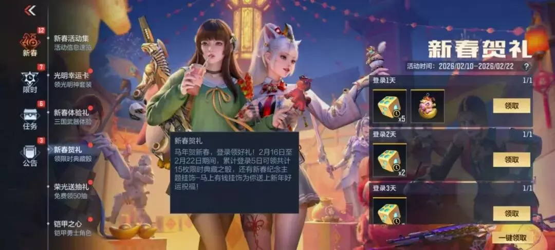 限时典藏之骰登录送,还有马上有钱挂饰带来马年祝福!活动将于2月16日开启,累计登录五天一共可获得限时典藏之骰x15,助力你获取典藏飞行棋大奖~