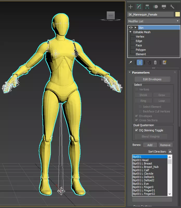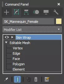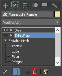 现在,皮肤应该已添加到修饰符列表的顶部。在此处,选择【皮肤包裹】并将其删除。我们不会再使用它了。