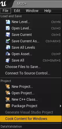 (如果你正在制作武器模型模组,请同时为你的弹匣模型创建一个物理资源文件(PhysicsAsset),否则在第三人称模式下重新装弹时,弹匣将不会有任何物理效果,导致其悬浮在空中。) 点击内容浏览器中的【全部保存】以保存你的文件。 在菜单中,选择【为Windows烘焙内容】来烘焙你的Uasset文件。