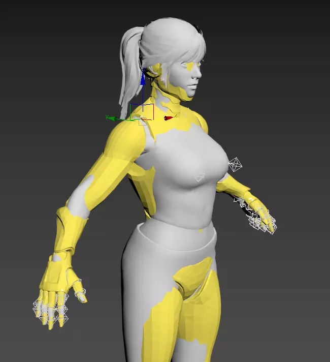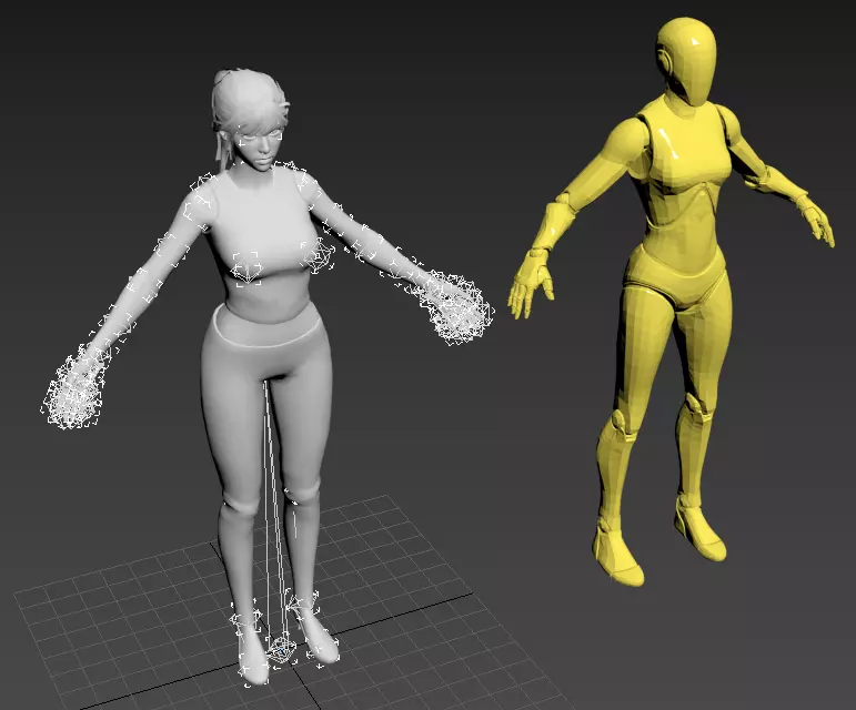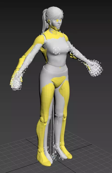 按下H键,在“从场景选择”中选择希拉的骨骼,然后调整它们以使其与新模型对齐。(如图所示,请尽量使四肢、头部和手指关节尽可能对齐。)