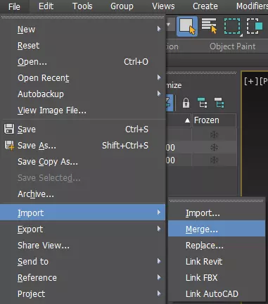 从工具栏中选择“文件>导入>合并”。 选择你想要使用的模型并进行合并。 (模型不需要包含骨骼,但与原始希拉模型的尺寸不应差异过大。如果游戏角色模型的尺寸差异较大,需要先编辑模型的顶点进行调整。)