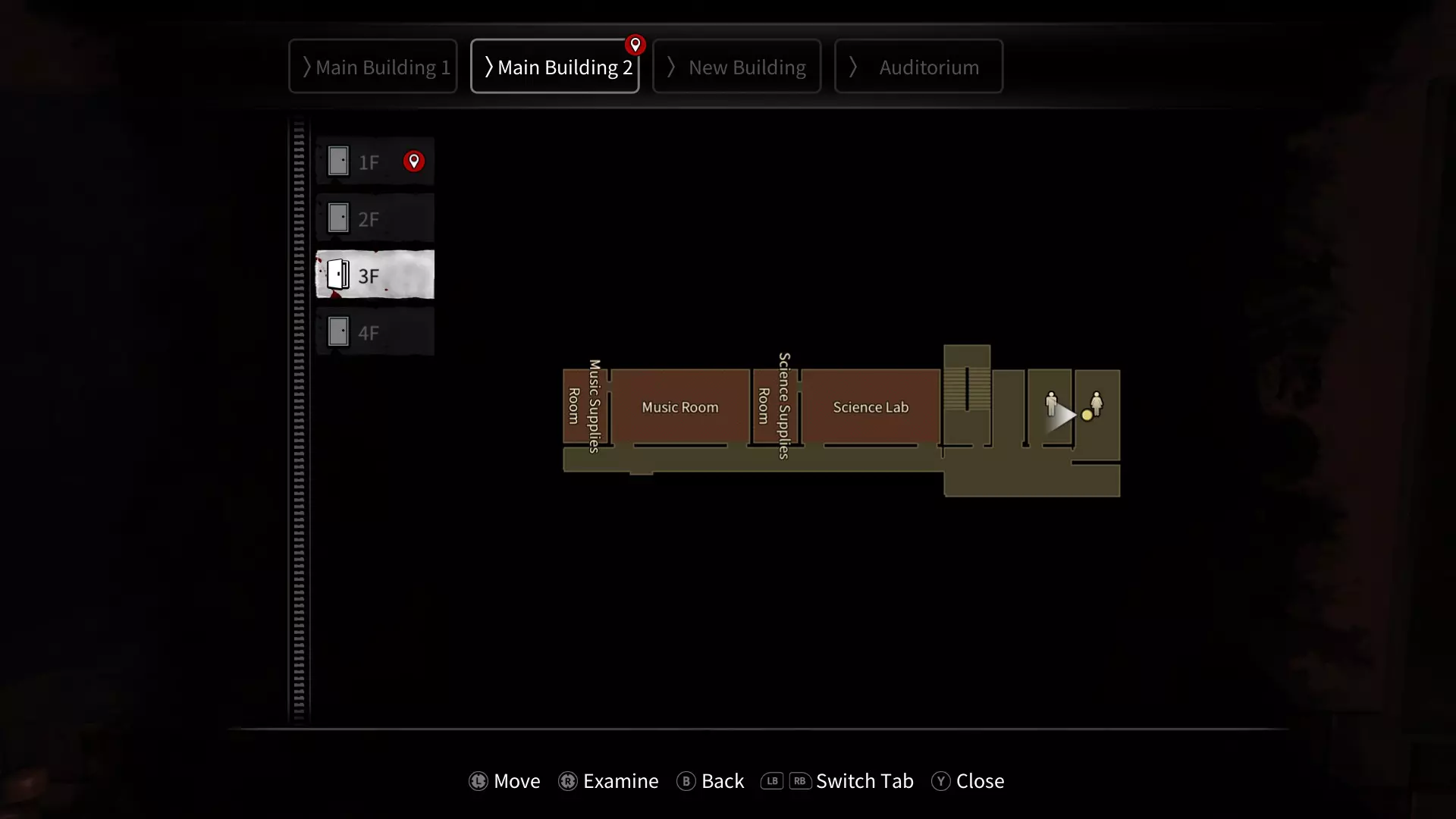 14) 镜中的我 与剧情相关。你将在NB中与这个幽灵战斗。 15) 化为蜘蛛的女孩 在接到开灯的任务目标之前,进入NB中电力谜题所需的任意房间,会触发一个与幽灵相关的小型过场动画。这些房间包括3-1、3-5、3-8、3-10和3-12。 16) 充满仇恨的脸(困难及以上难度) 在灯熄灭的情况下进入任意浴室,并进入最后一个隔间。最终你会听到一个女孩检查每个隔间,说着“不是这个”。最后,她会来到你的隔间,并将头放在地板上。 17) 上吊的女人 与剧情相关。这是你在游戏中遇到的第一个幽灵。 活人体模型(困难及以上难度) 如果你担心可能会搞砸,确保在尝试遭遇这个幽灵前存档。如果它攻击你,那么在该周目中它将不会重生。前往MB2的4F生物室,你会看到一个人体模型,其前方有一盏灯。先关闭灯光,然后点亮那盏灯,接着持续进行蹲下/站起的操作,直到角色力竭。如果操作正确,人体模型就会开始向你移动,你需要躲避它大约一分钟。你可以轻松地绕着房间前方的桌子来牵制它。