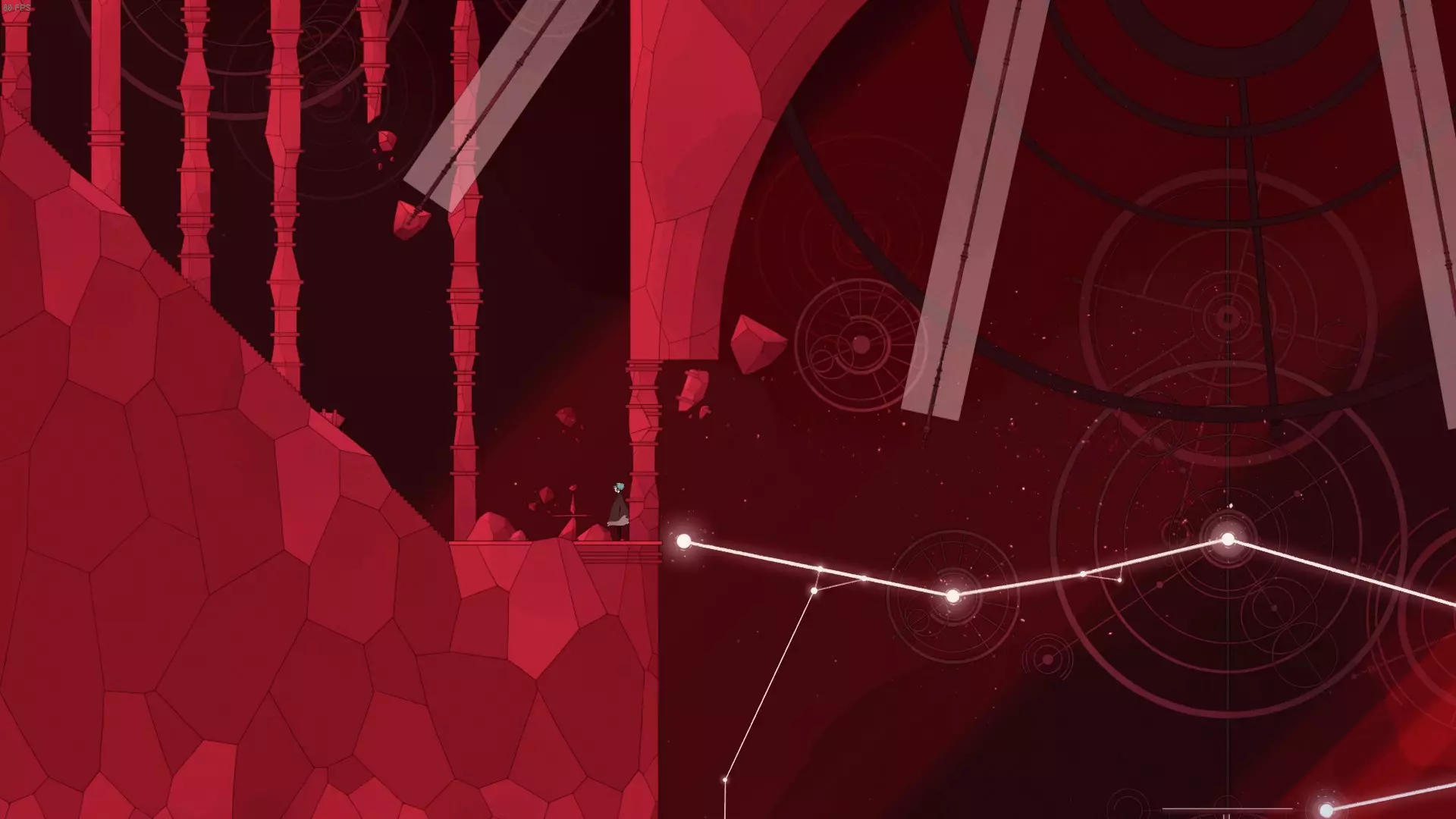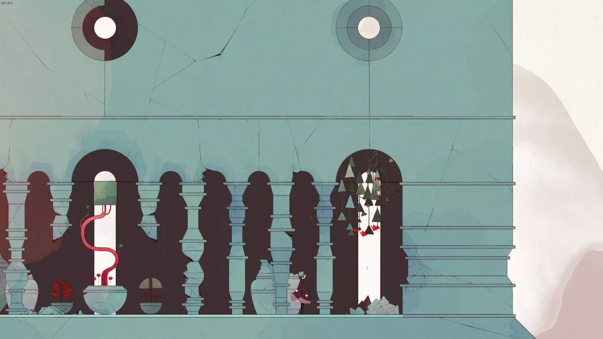 纪念碑 5 在此处向右跳下后,向左移动,乘坐出现的红色飞鸟向上,途中使用方块能力取消跳跃。之后再次向右移动即可获得纪念碑。