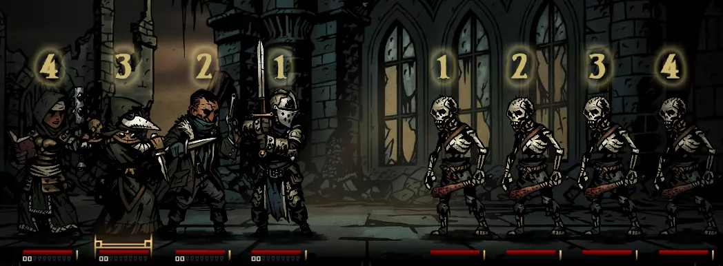 如你所见,敌人的排列顺序是从左到右,而英雄的排列顺序是从右到左。对于组合配置,我们只需关注敌人的排列顺序。在组合配置文件中,4个普通骷髅兵的组合如下: room: .chance 1 .types skeleton_common_A skeleton_common_A skeleton_common_A skeleton_common_A 记住:从左到右读取敌人的排列顺序;将最后一个骷髅兵改为“skeleton_arbalist_A”,就会把第4位的骷髅兵变成一名学徒弩手。 制作与编辑组合配置 首先,你需要指定组合配置的出现场景,通常使用“hall:”或“room:”。其他场景还包括“stall”(只能作为增援出现的遭遇战)、“boss”(仅用于 boss 任务)以及“named”(用于奇物召唤或自定义地图)。接下来,你需要为该遭遇设置生成概率。游戏内的概率计算方式为(特定概率/所有概率之和),因此任何过高的数值都会大幅提高遭遇该特定事件的可能性。 最后,你必须定义想要出现的怪物ID。你还可以选择在遭遇定义的末尾添加布尔值“.can_be_ambush false”,以指定该遭遇在营地伏击期间不可发生。 怪物AI AI参考 - 技能选择倾向 本节涵盖了敌人AI的基本技能选择倾向。实际存在的倾向不止以下列出的这些,但这应能为你提供一个良好的起点。如果你希望模仿特定效果,不妨查看某个特定敌人的AI设置。以下是示例和说明! 类型 描述 示例 random_skill 怪物会随机选择一个技能使用。