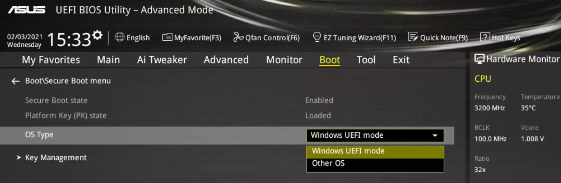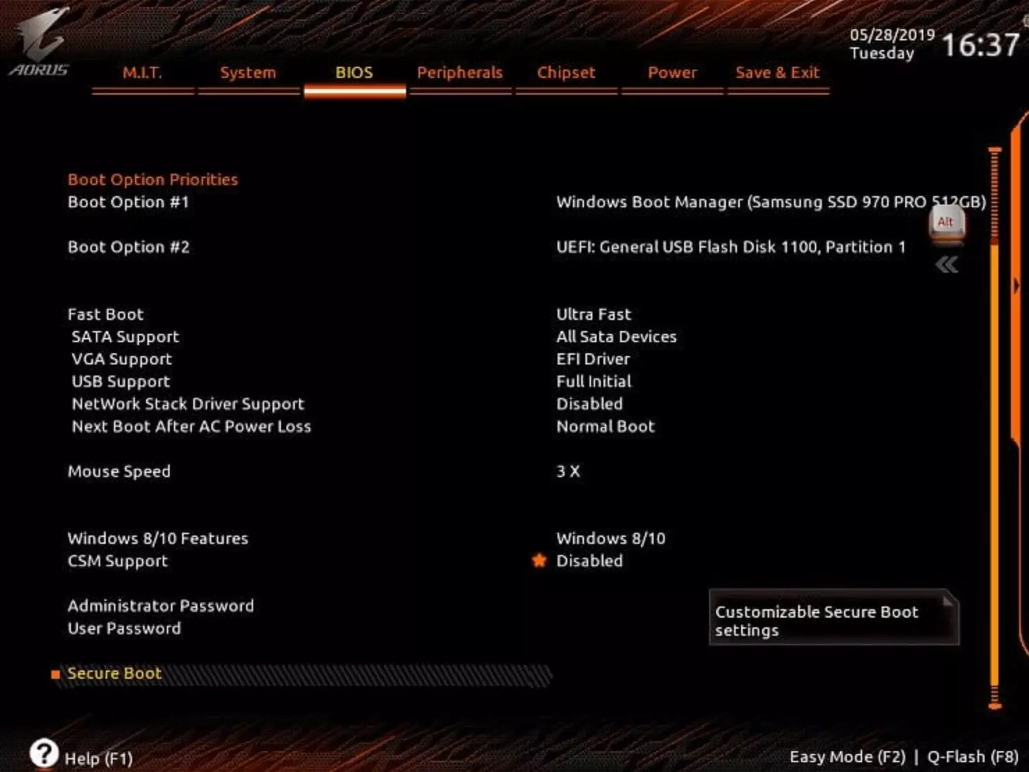 如果此参数为【关闭】,则继续操作... 主要主板制造商的Secure Boot激活方法 UEFI Bios:重启电脑 -> 在Windows启动前按下F2或Delete键。(如果此方法无效,您的主板制造商可能设置了其他按键组合。) 确保已将启动模式从Legacy/CSM(在技嘉主板上显示为off)更改为UEFI模式。此选项可在“Boot”或“BIOS”选项卡中找到。请注意,操作系统类型必须设置为Windows 8/10 Features,而非Other Operating System。 注意:如果启用安全启动(Secure Boot)后操作系统无法启动,而是出现UEFI界面,您需要撤销所做的更改。问题很可能在于您需要将磁盘从MBR转换为GPT,以便在禁用兼容性支持模块(CSM)的情况下启动操作系统。这可以通过第三方软件完成。然后返回到步骤1。 以下是不同主板的示例。