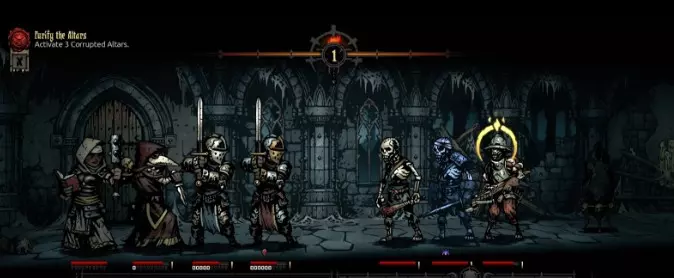 专业的在前,其余的在后! 1. 十字军 2. 十字军 3. 修女 4. 瘟疫医生 为什么是这个组合? 修女能够在长时间的地牢探索中进行治疗 两名十字军能够很好地吸收并反弹伤害 对前排敌人造成双重眩晕效果 这个组合基本上是用极高的伤害换取了更高的稳定性和安全性 迷宫最佳队伍 敌人很容易受到流血效果的影响,因此优先选择拥有这些技能的英雄。用于降低敌人防御和/或闪避的标记技能也非常有用。