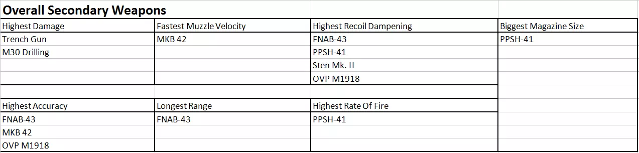 副武器数据表 整体副武器