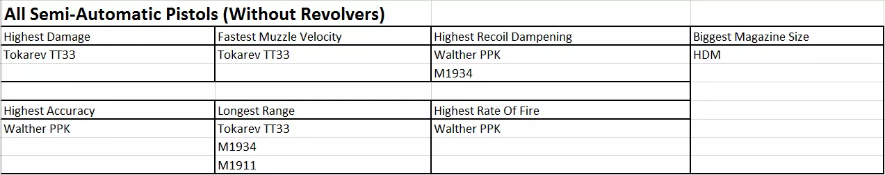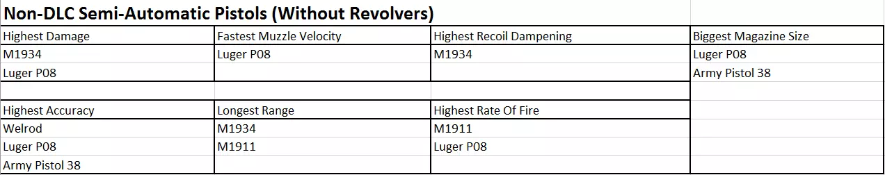 所有非DLC手枪(不含左轮手枪)
