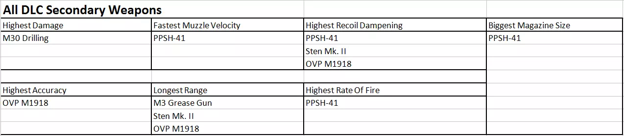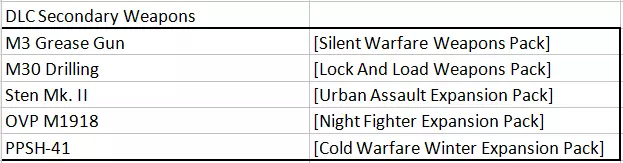 所有非DLC次要武器