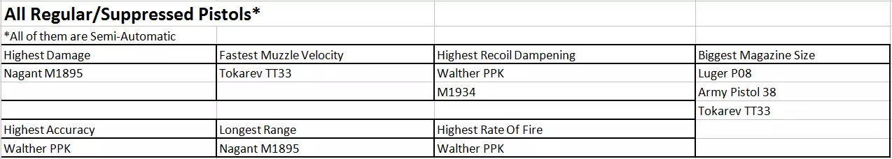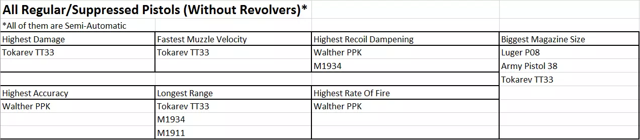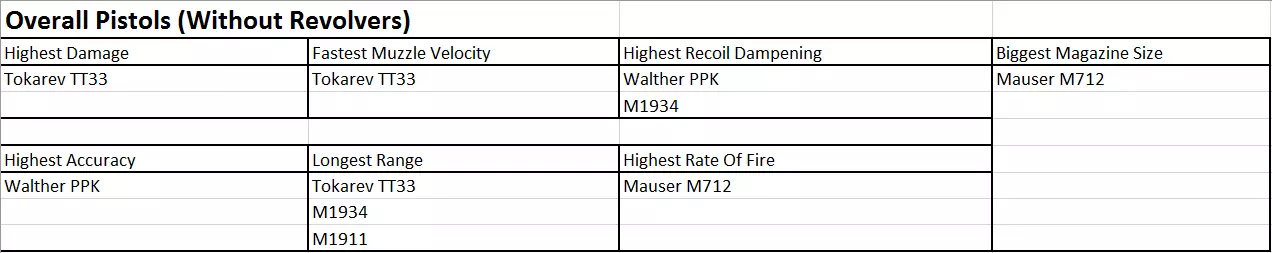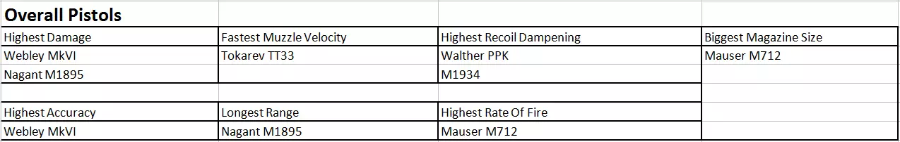 手枪数据表 手枪总览